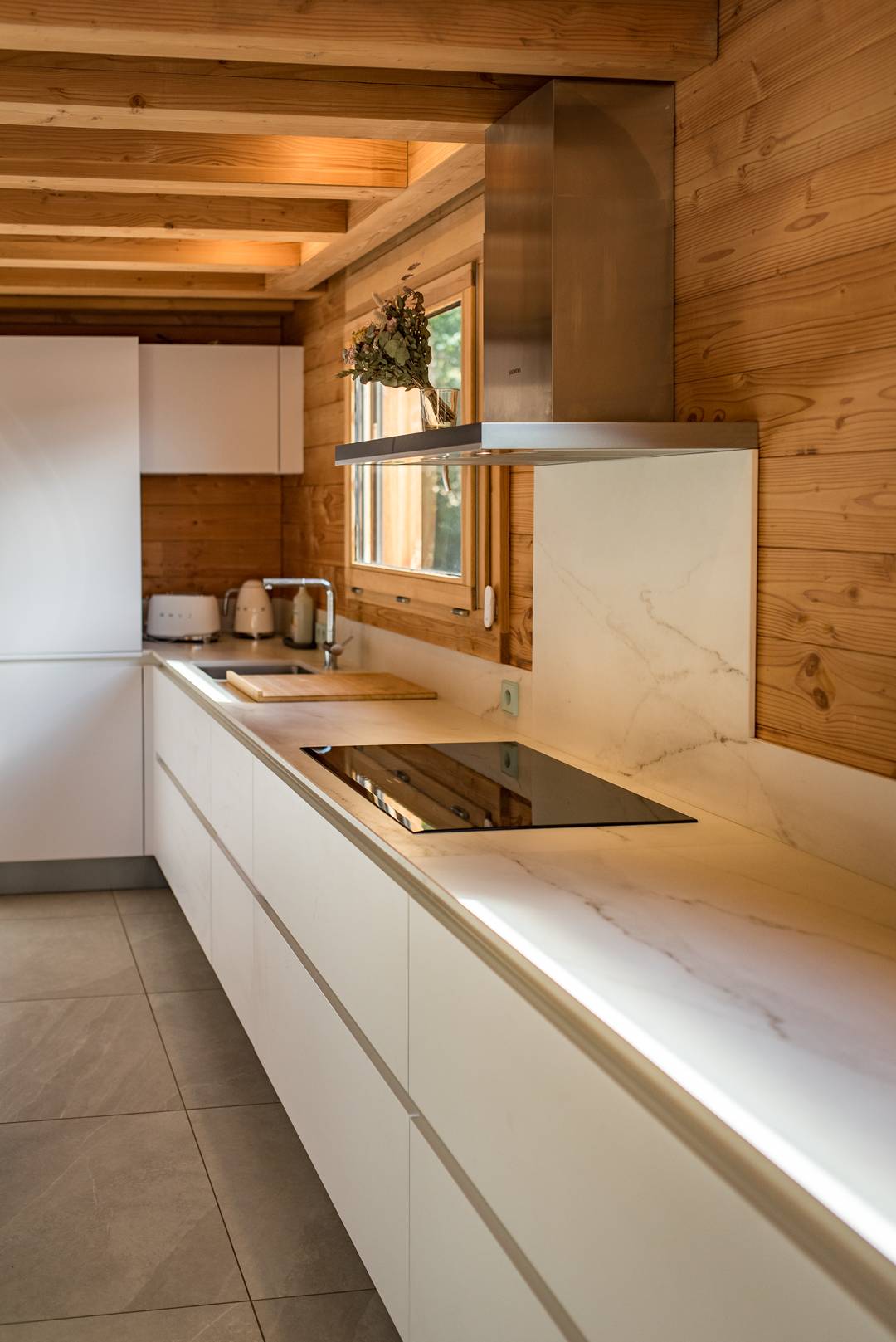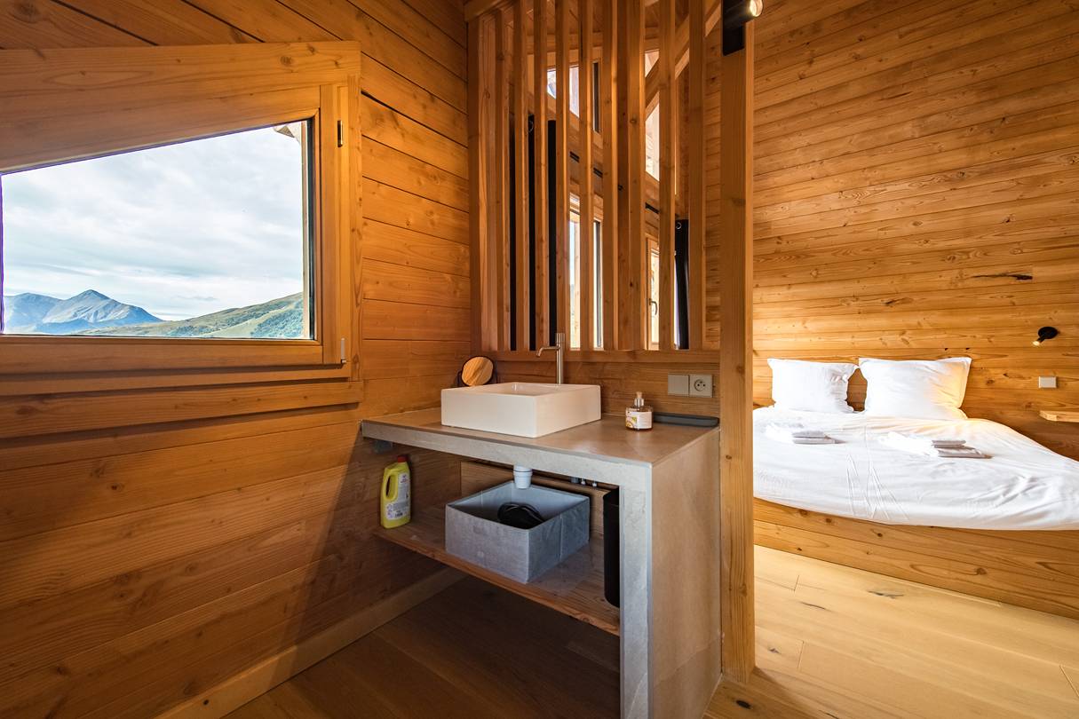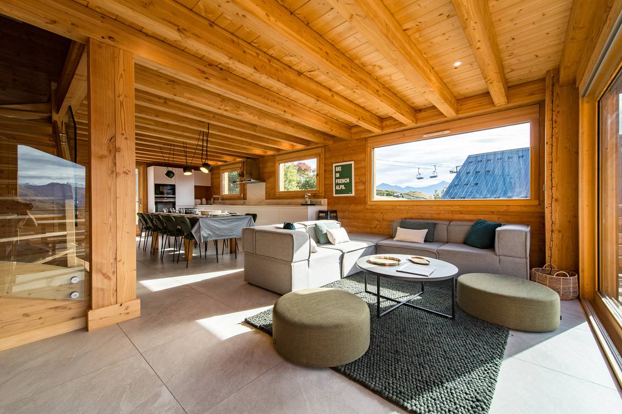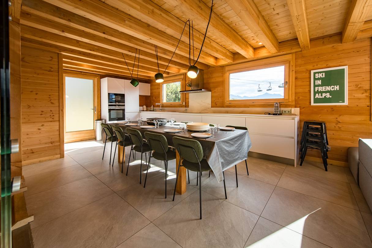 You will find a large living room opening onto a terrace and the breathtaking view of the Aiguilles d'Arves. The living room offers a lounge area, a dining room and an equipped kitchen. The kitchen is equipped with all the necessary comforts (dishwasher, induction hob, oven, microwave, ...) while the living room offers a TV area.