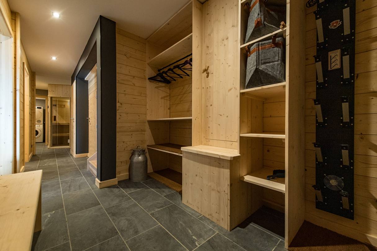The entrance to the chalet is via the garden level where an outside cupboard allows you to store your skis safely. The entrance is equipped with wardrobes and shoe dryers (12 pairs).