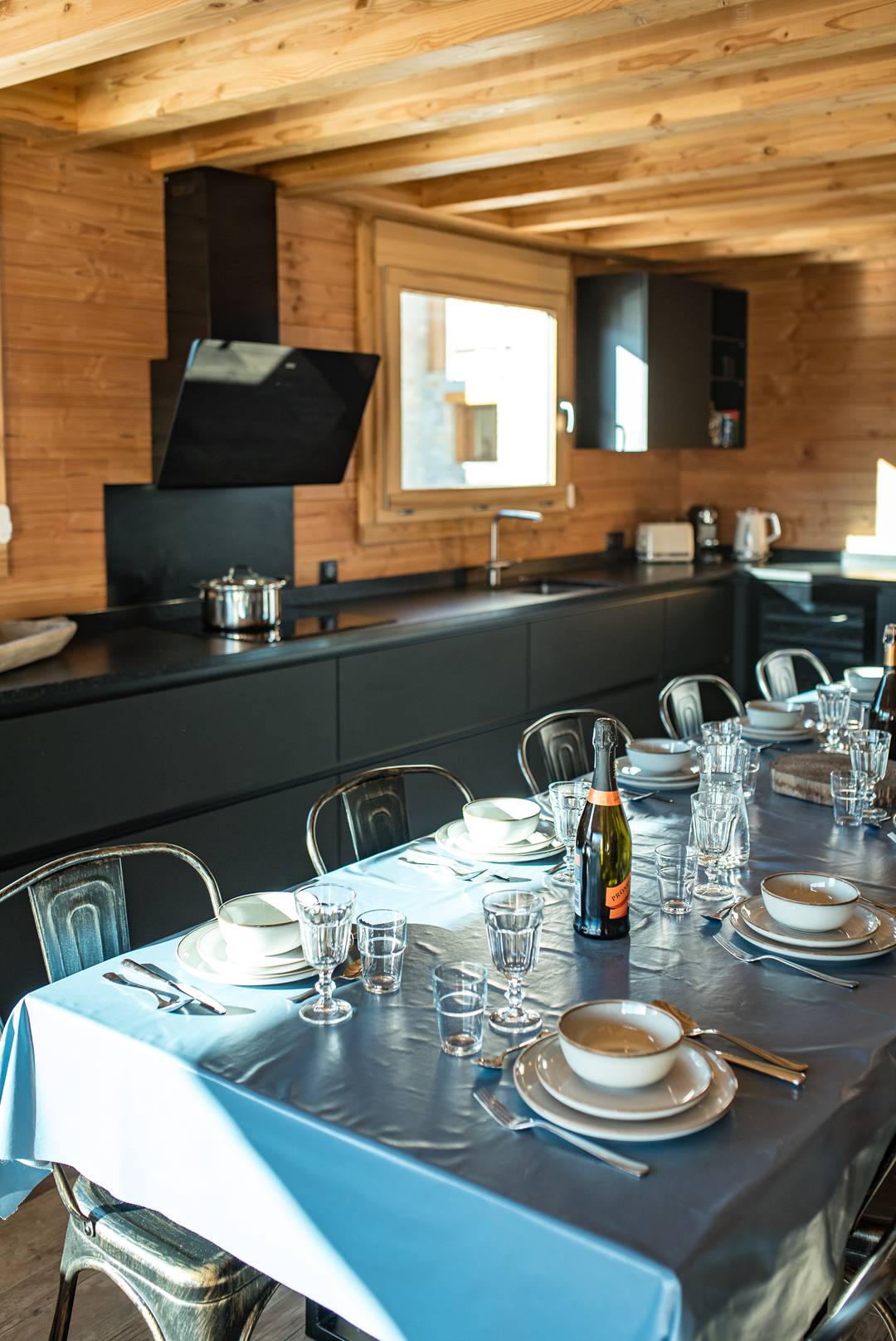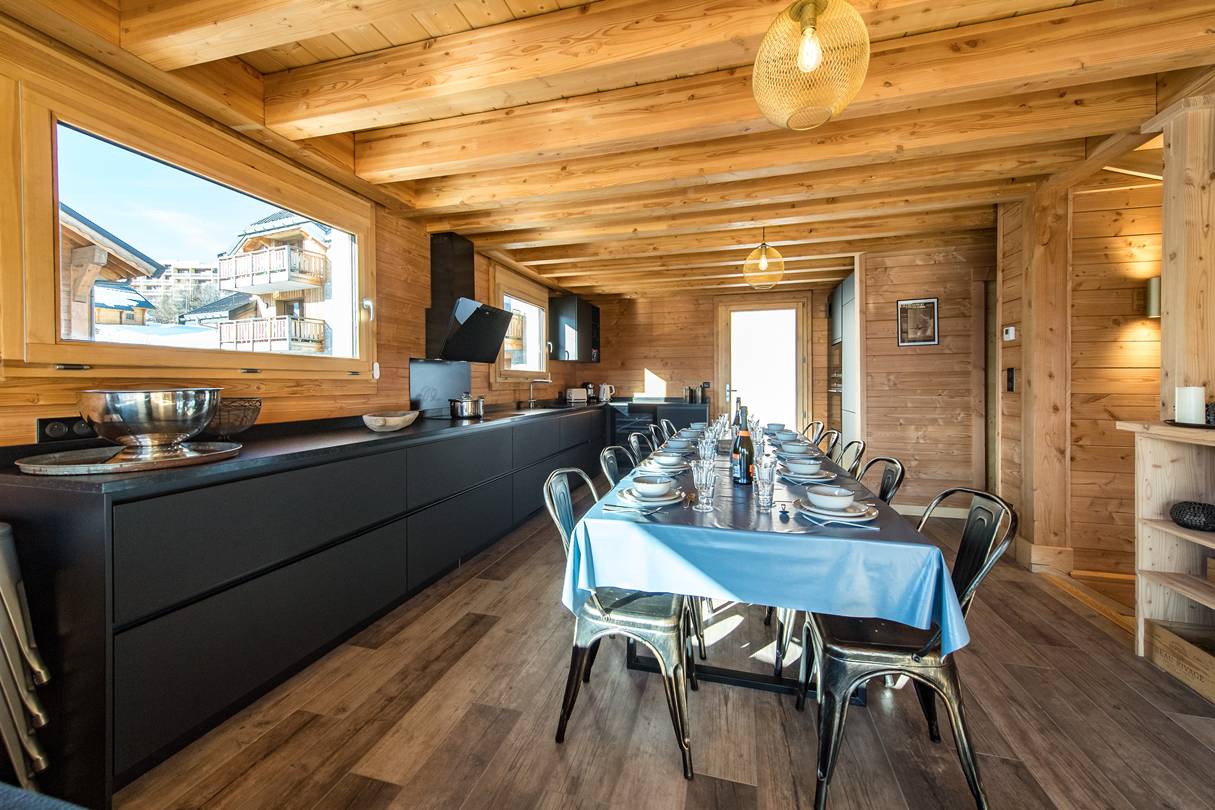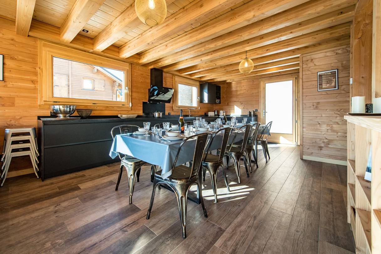 You will find a large living room opening onto a terrace and the breathtaking view of the Aiguilles d'Arves. The living room offers a lounge area, a dining room and an equipped kitchen. The kitchen is equipped with all the necessary comforts (dishwasher, induction hob, oven, microwave, ...) while the living room offers a TV area.