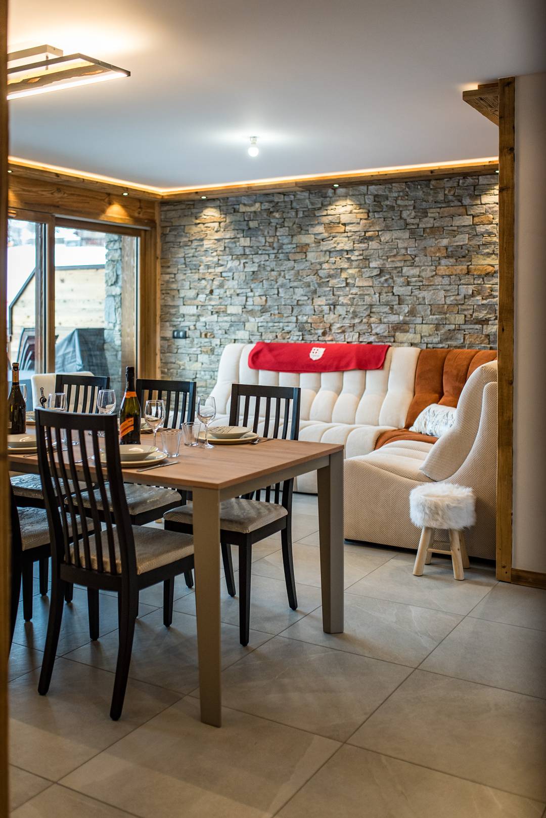 A ski locker with boot dryer opens directly onto the Bellard chairlift.