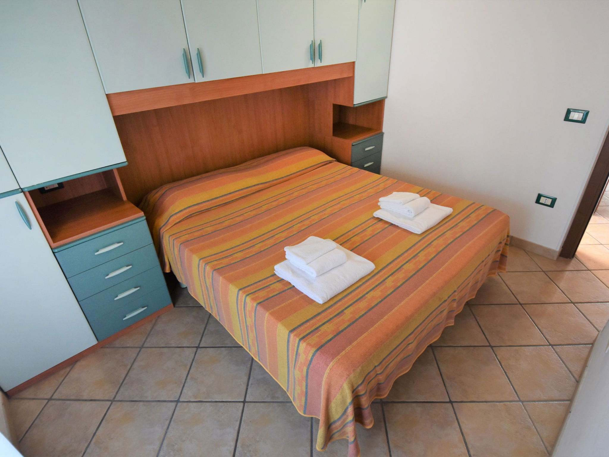"Bahia", 3-room apartment 45 m2 on 1st floor, north-east facing position. Comfortable furnishings: living/sleeping room with 2 sofabeds, dining table and satellite TV. Exit to the loggia. 1 room with 1 double bed. 1 room with 2 beds. Open kitchen (dishwasher, 4 induction hot plates, microwave, electric coffee machine). Shower/bidet/WC. Air-conditioning (extra). Terrace furniture, covered balcony. No view. Facilities: safe, hair dryer. Internet (WiFi, free). Parking (fenced 1 car) at the house. Please note: apartment street side. Parking space for small car only. Maximum 1 pet/ dog allowed. Private entrance. IT038006A1GTAUGIIJ