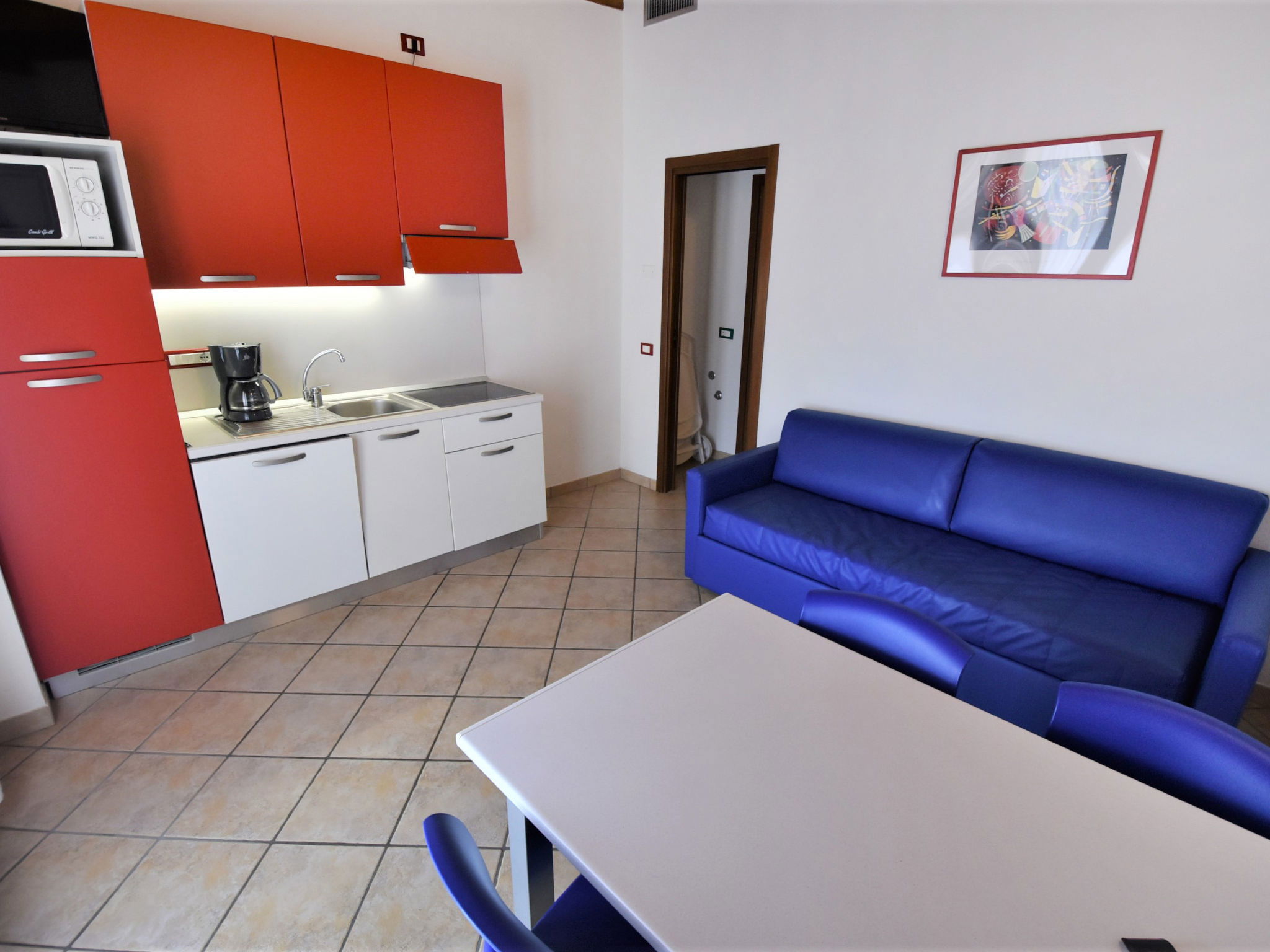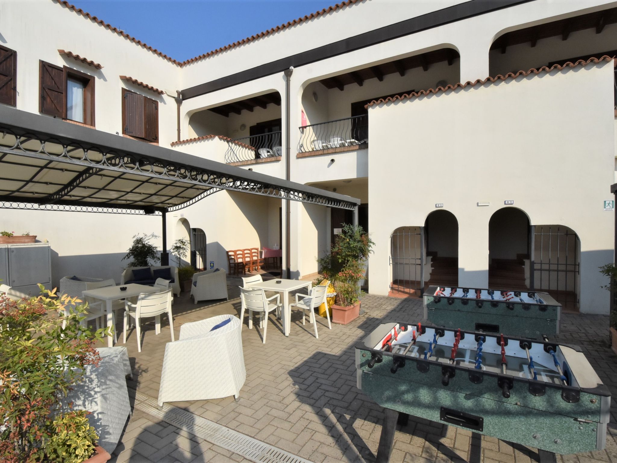 Lidi Ferraresi: Comfortable resort "Michelangelo", 3 storeys. 68 apartments in the residence. 350 m from the centre of Lido di Spina, 2.2 km from the centre of Lido degli Estensi, in the residential district, 600 m from the sea, 600 m from the beach. For shared use: swimming pool (300 m2, depth 140 cm, seasonal availability: 01.May. - 30.Sep.). Children's pool, hot tub, children's playground (sandbox). In the complex: reception, restaurant, bar, WiFi, washing machine, tumble dryer (for shared use, extra). Parking. Shop 350 m, bus stop 500 m, railway station "Ravenna" 29 km, sandy beach 600 m. Nearby attractions: Comacchio 10 km, Ravenna 30 km, Mirabilandia 45 km, Ferrara 62 km. Please note: entertainment in the season. Suitable for families, baby equipment on request (extra). Additional accommodations can be booked.