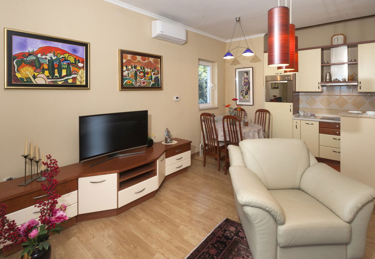 Apartment Rocco is located in Porec, about 400 m from Porec center and 500 m from the beach, The apartment consists of a living area and open kitchen, a bedroom with a double bed, a bathroom with shower and a balcony. There is a private parking in front of the house.WiFi is available. The kitchen is fully equipped. This is an apartment for 2 people but a family with a smaller child who can share the bed with the parents is allowed.