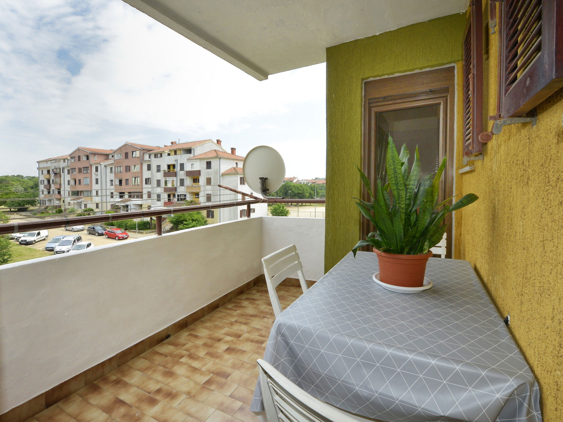 The apartment has a balcony, providing a peaceful outdoor space to enjoy the Mediterranean climate and soak up the sun. With a parking space available nearby, you can easily explore the surrounding area, including the nearby beaches, the charming town of Porec, and the nearby supermarket.