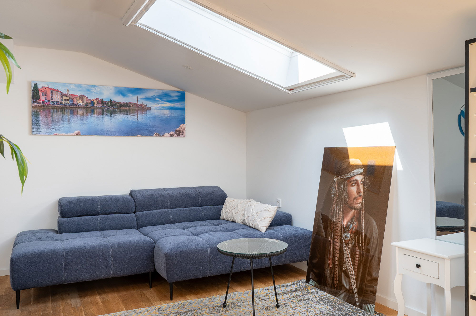 It consists of a living room, dining room, a kitchen and a bathroom with a shower o the ground floor; on the floor there are 2 bedrooms, one with a double bed 140 x200 and the other with a queen size bed 160 x200. On the second floor, there is a large space with 2 queensize beds and a sofa bed for one person.