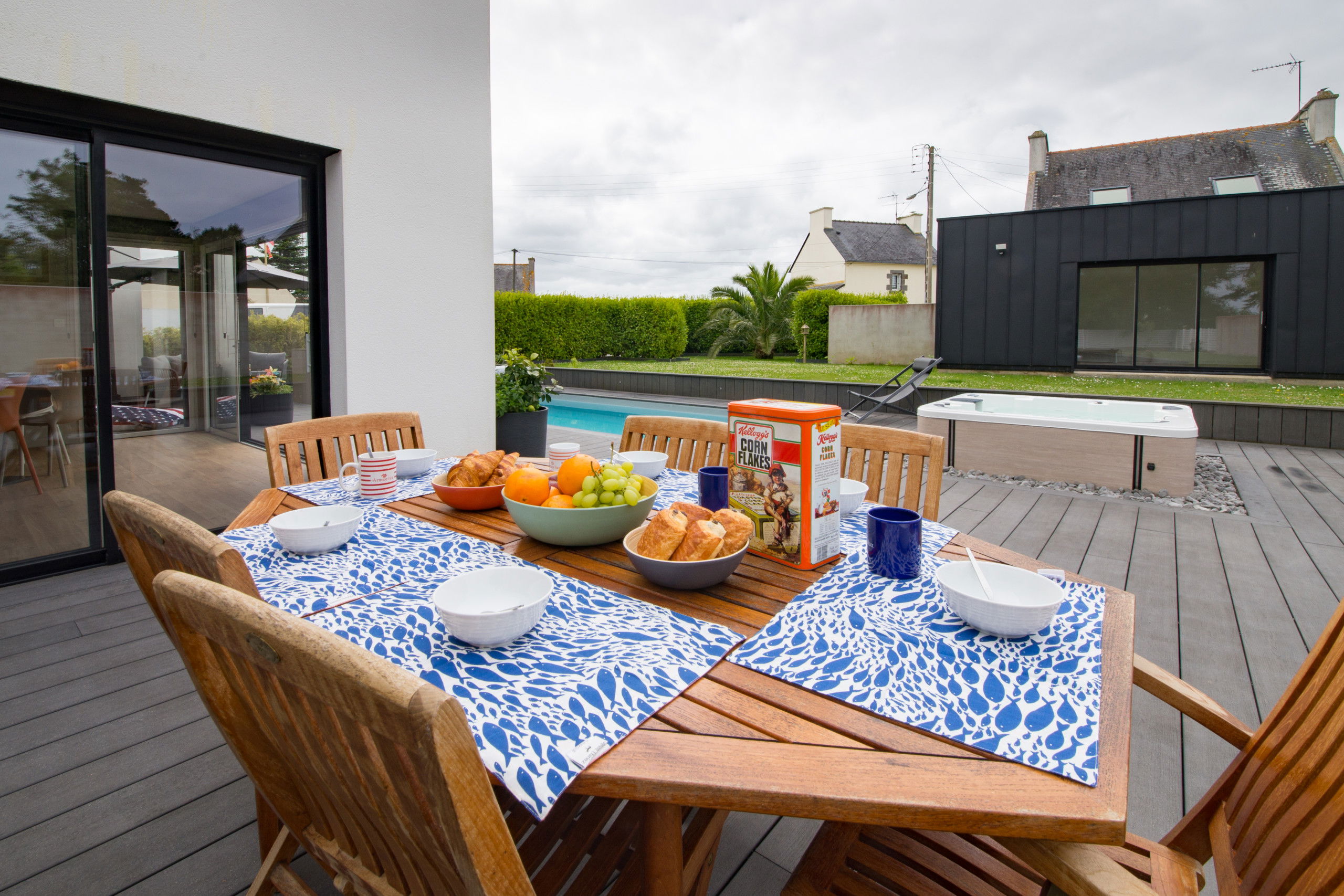 Discover this recent high-end house located just a few steps from the port of Portsall, in a quiet little street. Ideal for luxurious stays with family or friends, this property combines modernity and top-of-the-range amenities.