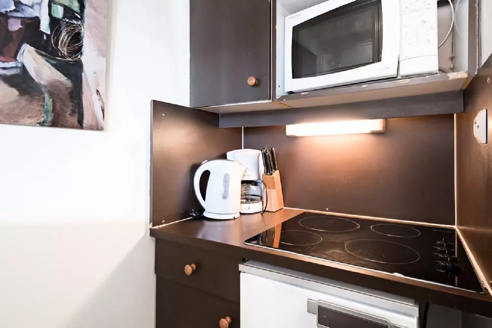 The advantages of this accommodation: ski-in ski-out, resort center, next to shops/restaurants, slope front, close to Aquariaz, balcony, south facing, mountain view, iron, storage, DVD player, board games, TV...