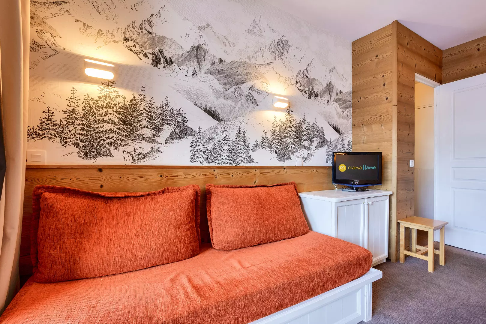 Composition of the living room: 2 single sofa beds, one with a pull-out bed (sleeps 3).