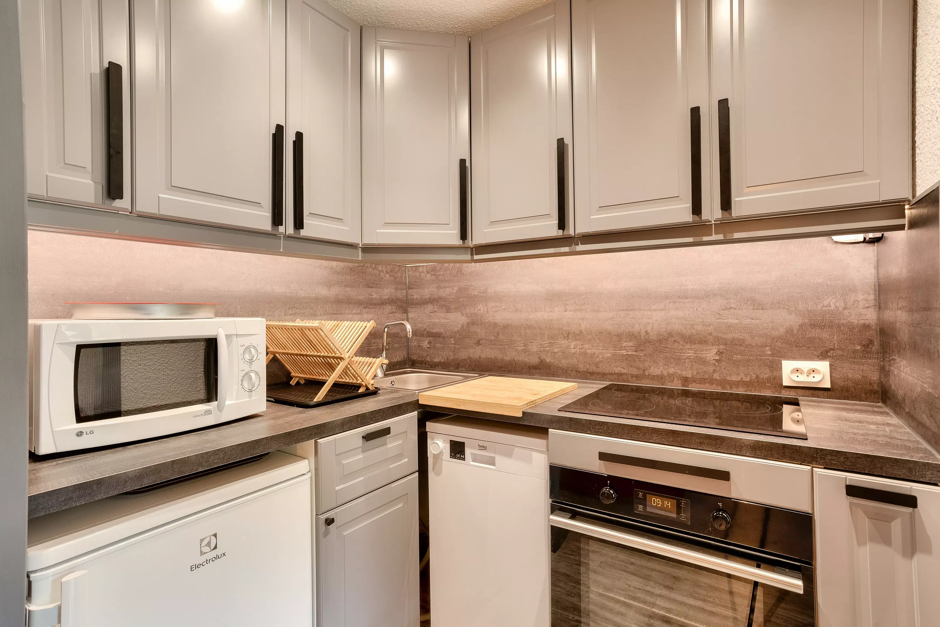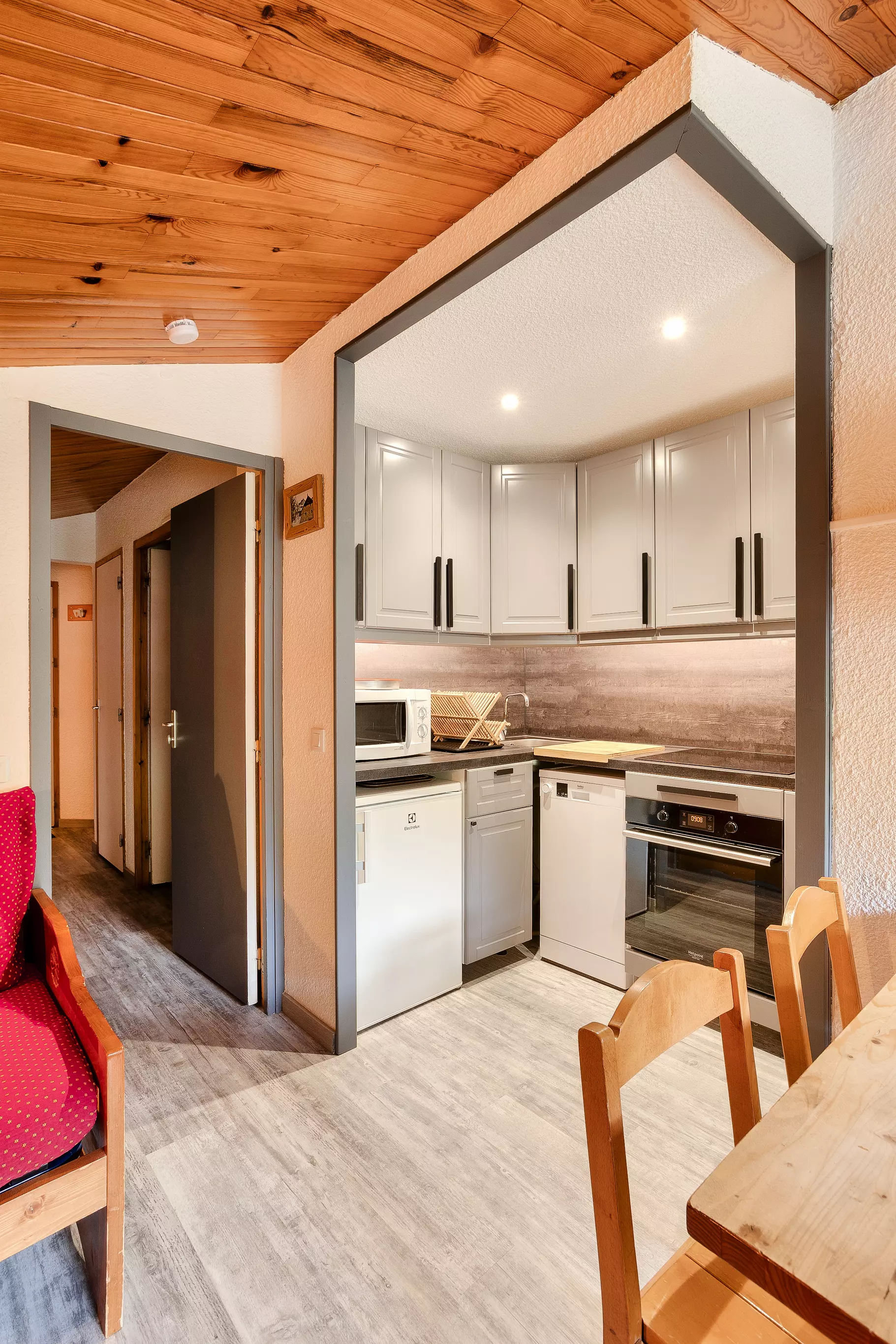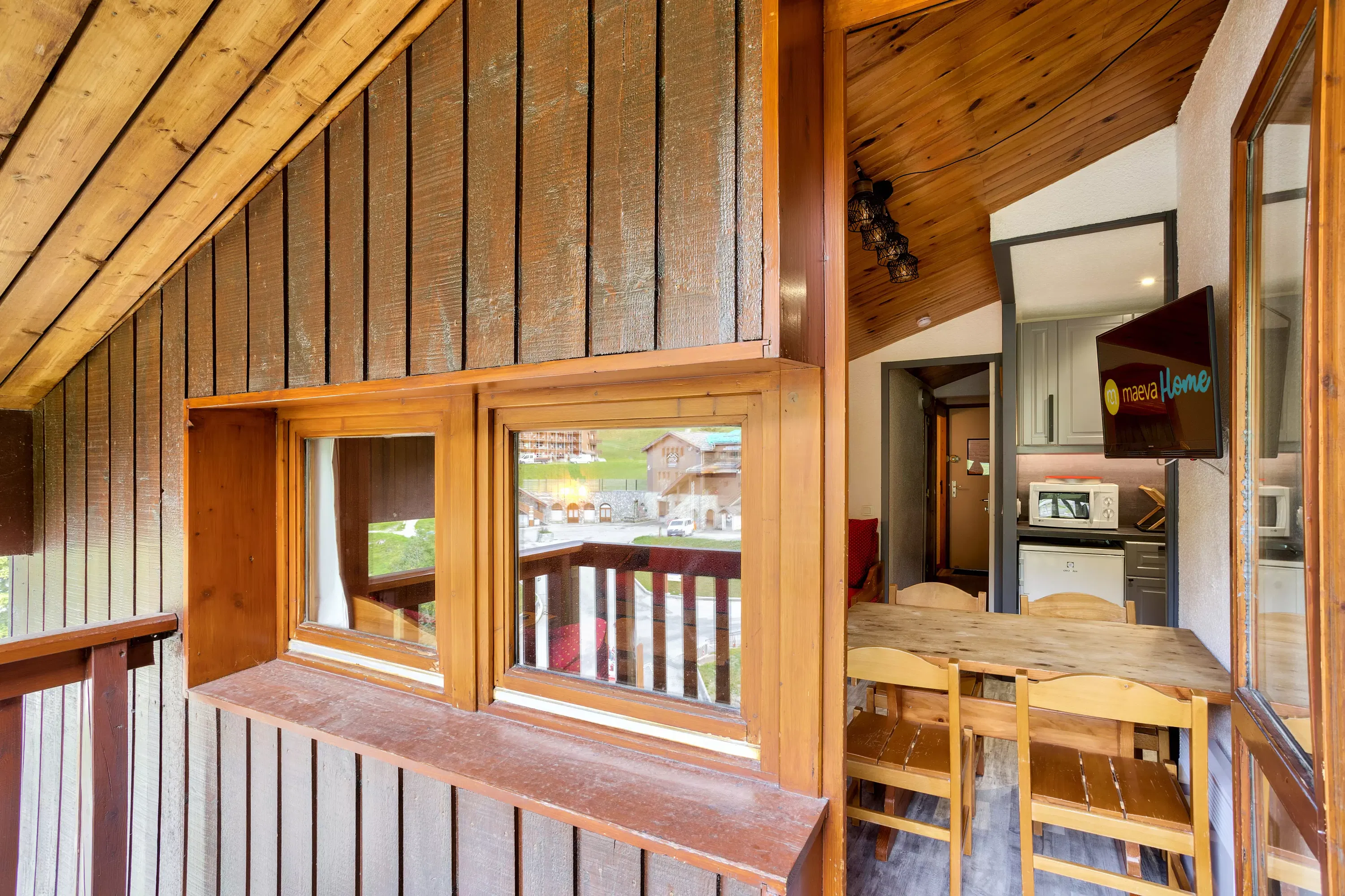The advantages of this accommodation: close to shops, balcony, view of the slopes and resort, storage, flat screen wall-mounted TV...
