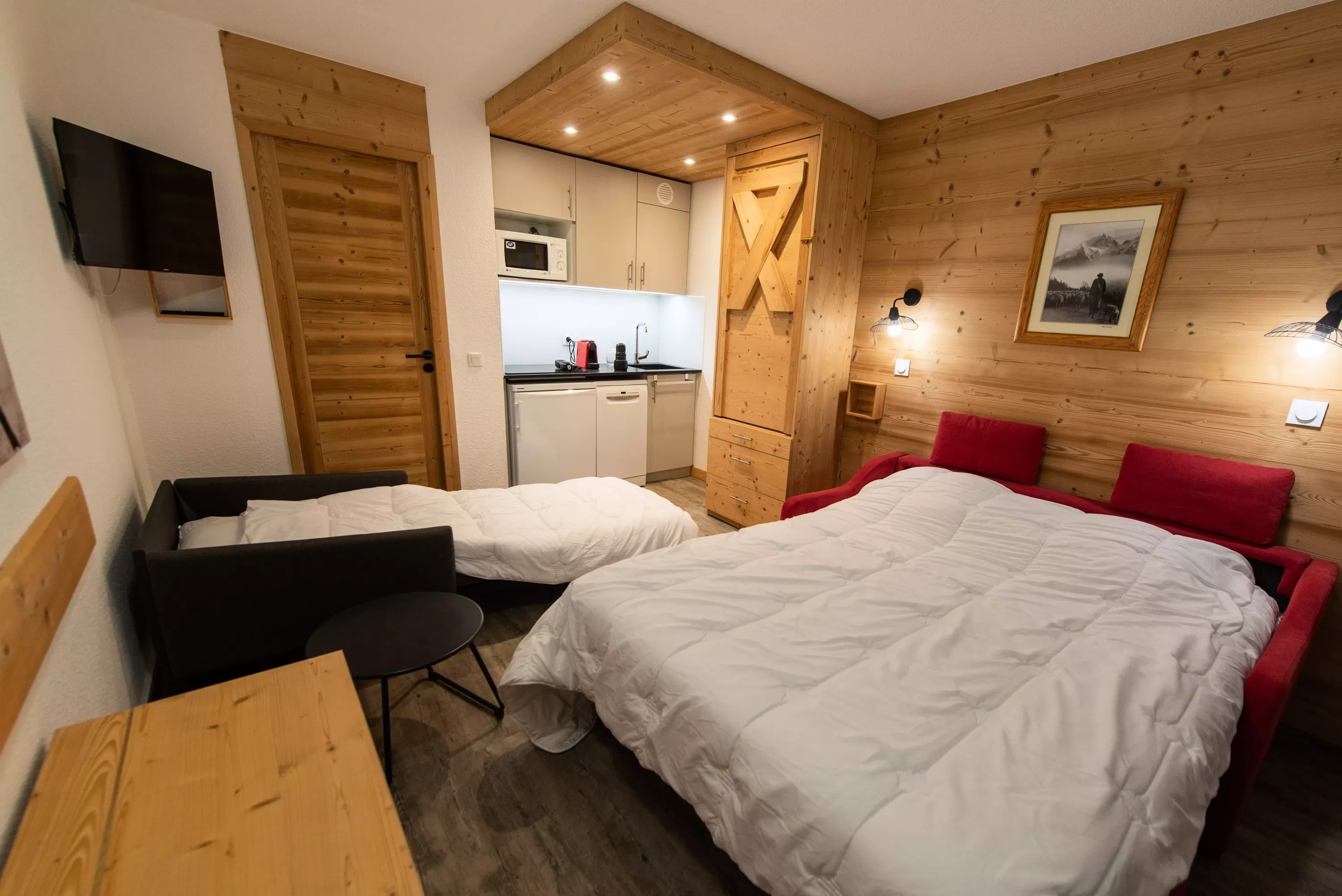 The advantages of this accommodation: television, mountain view, direct access to the slope, ski locker...
