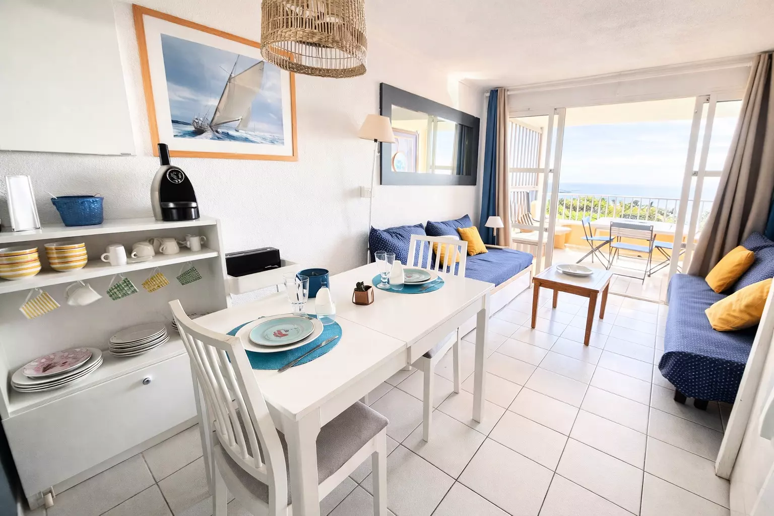 The advantages of your rental: Air-conditioned studio for 5 people with balcony and sea view.