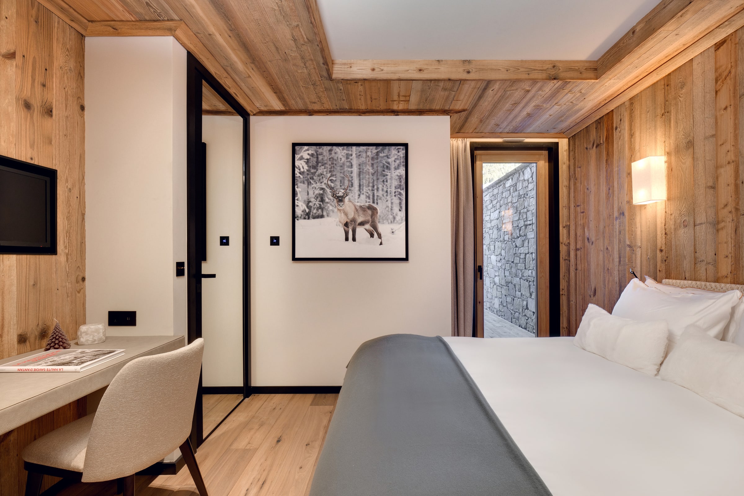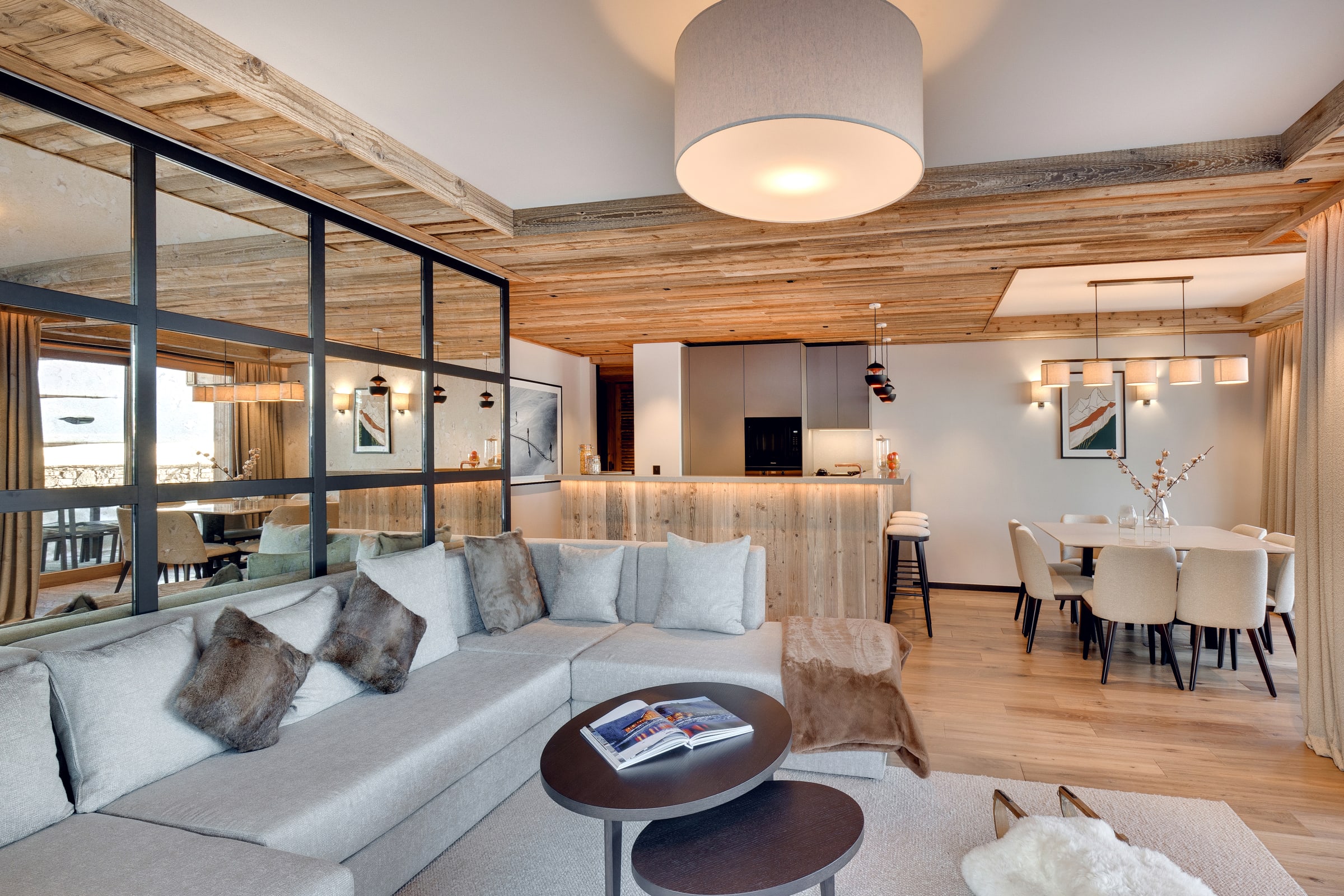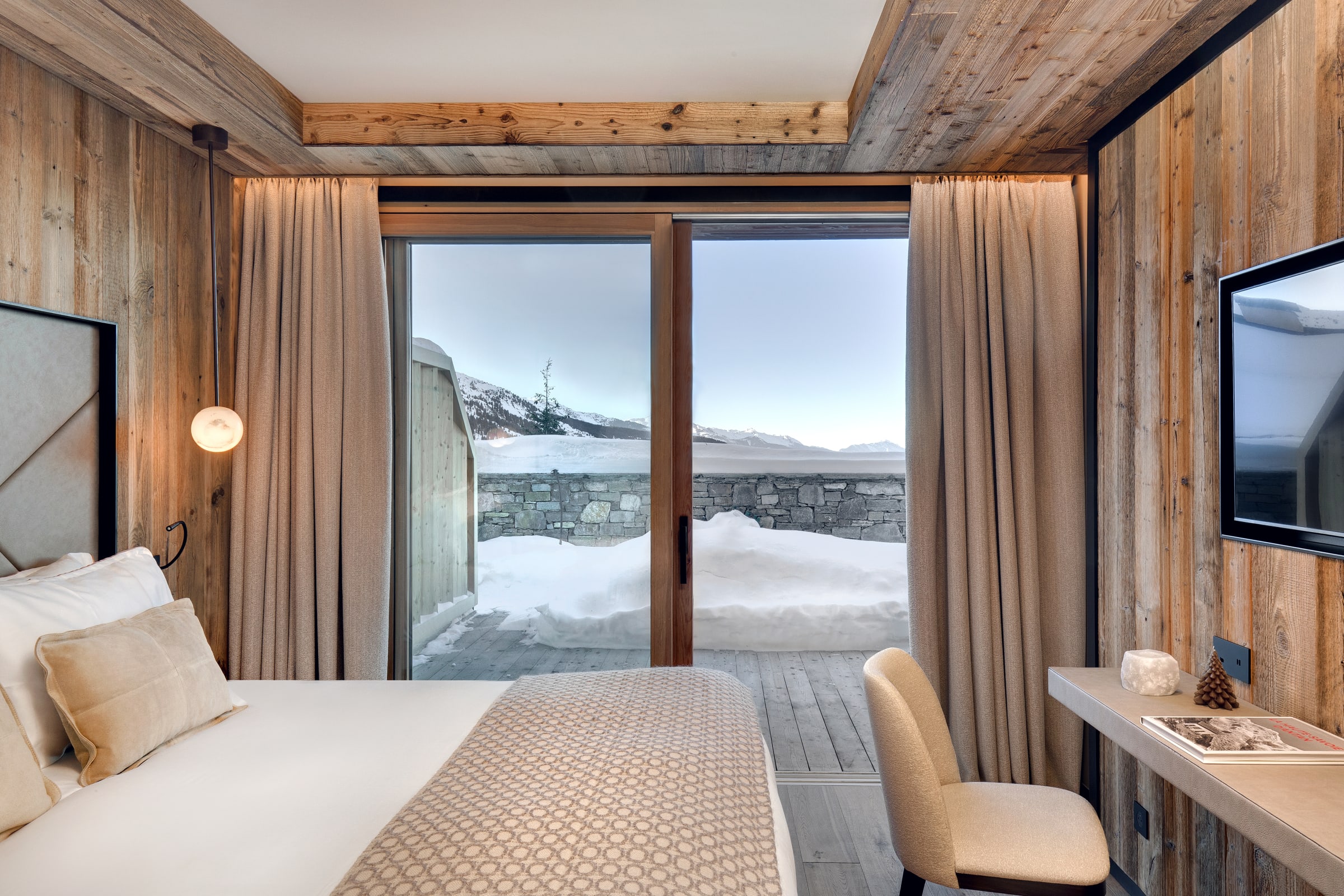 The residence features a unique wellness area: 25m indoor pool, multi-temperature pools, salt grotto, sauna & hammam, beauty clinic, ice fountain, 10 cabins, private relaxation cocoons, an Alpine herbal tea room and a cryo suite.