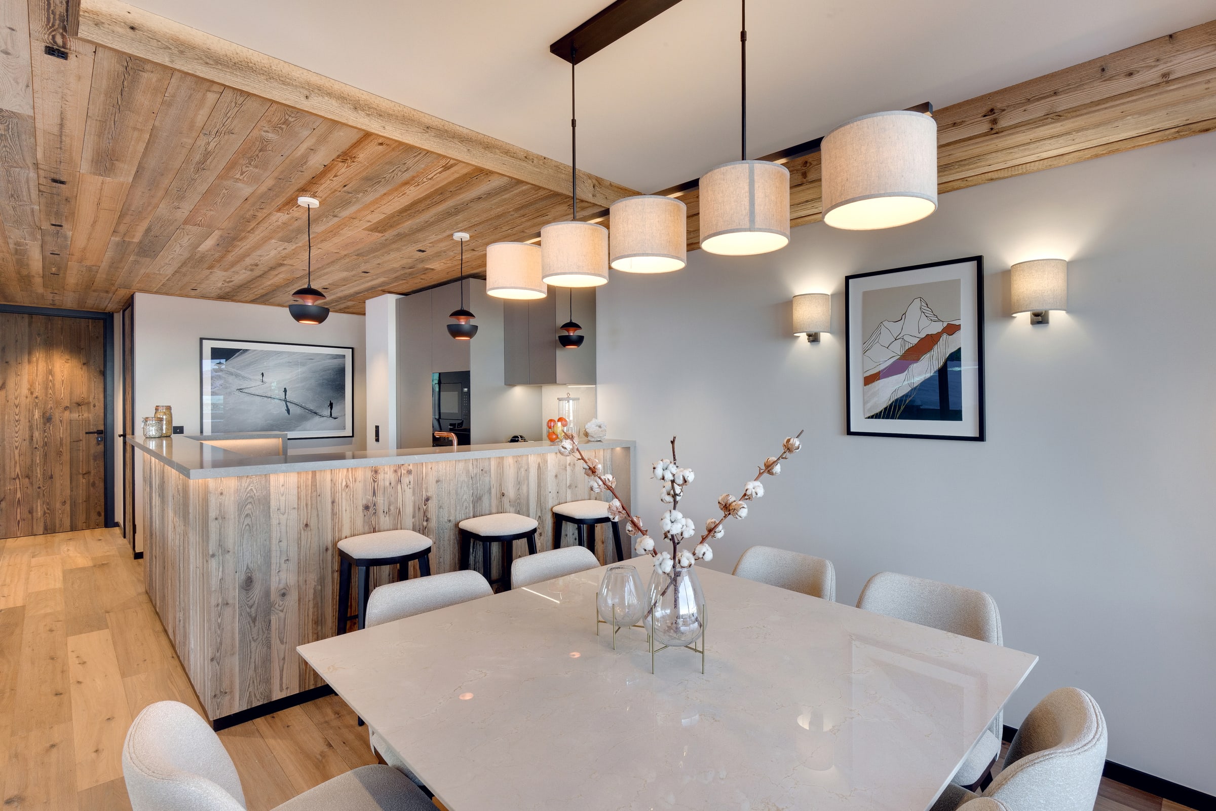 This appartment offers an amazing view of the mountains, the forest and the slopeside. In a cosy elegant setting, the space has been designed for everyone's comfort with three en-suite bedrooms and a magnificent living area with open kitchen leading onto a terrace.