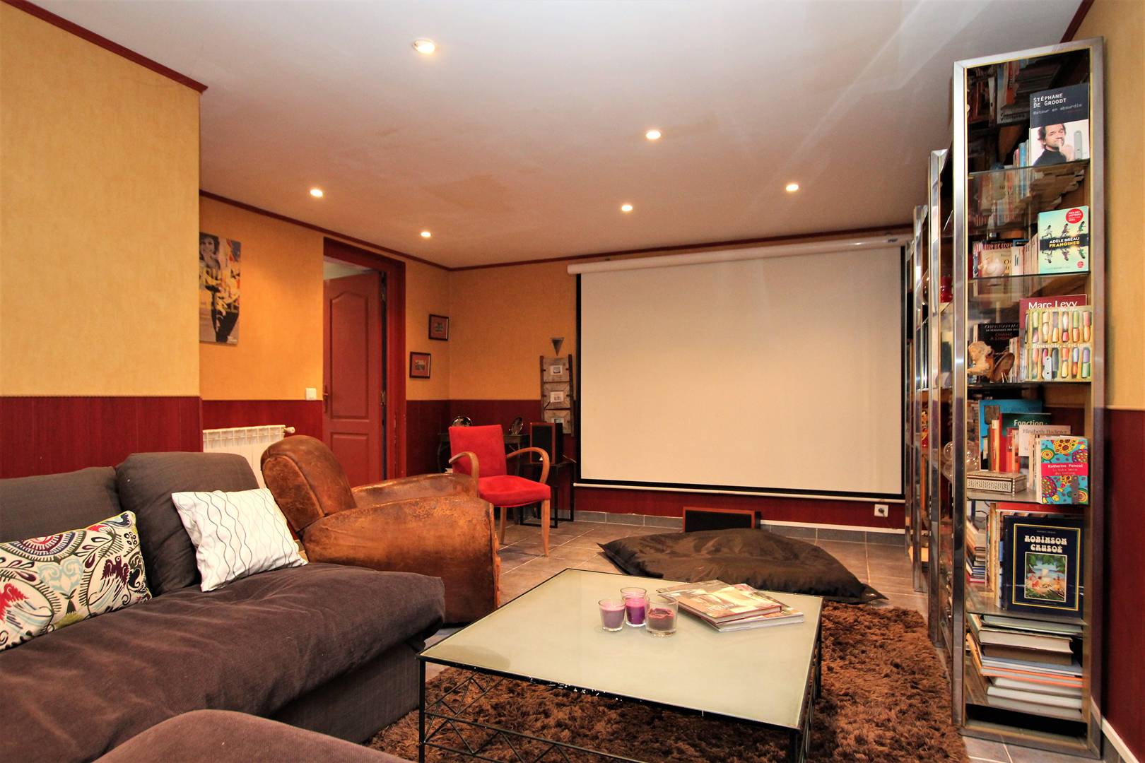 Lower floor: Games room with double sofa bed (160). Shower room with toilet. Cinema room with double