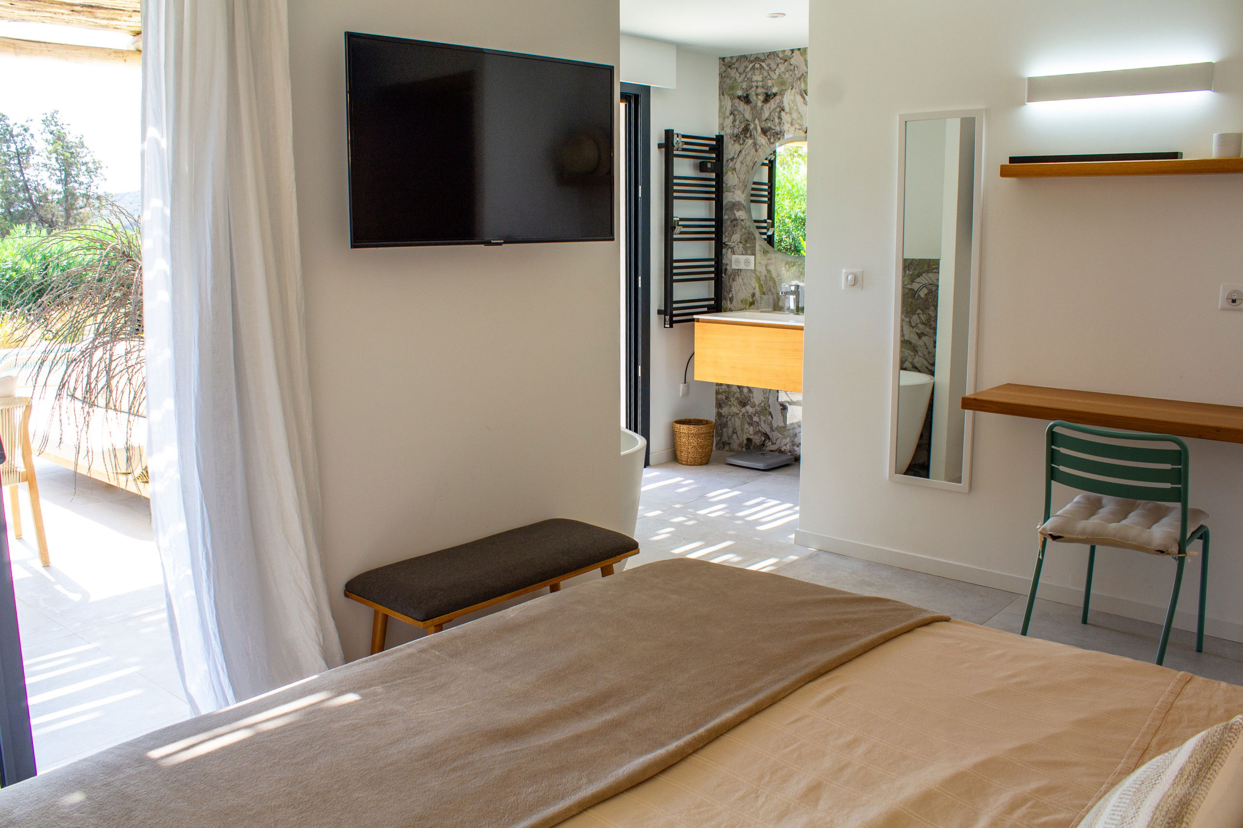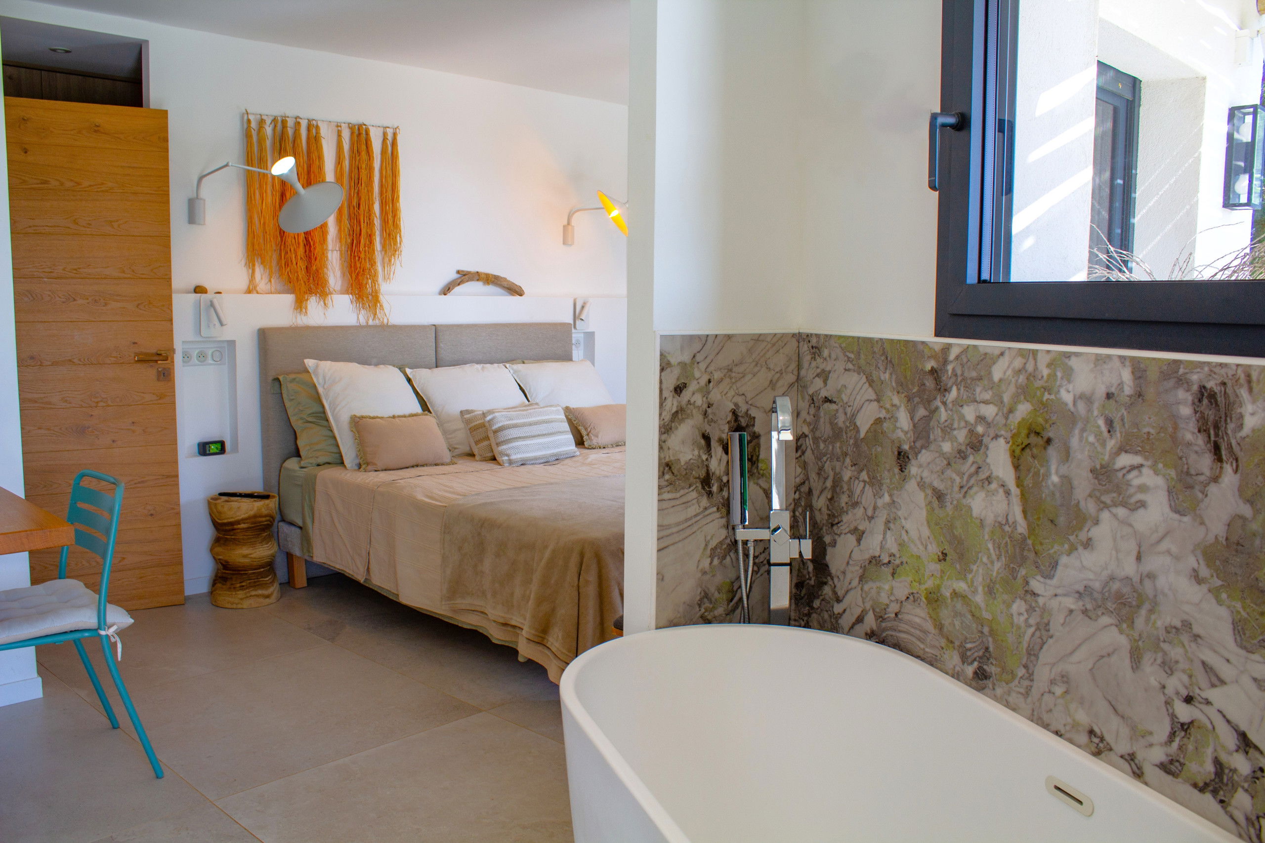 • Double room with 160x200 bed, private bathroom and access to a private terrace.