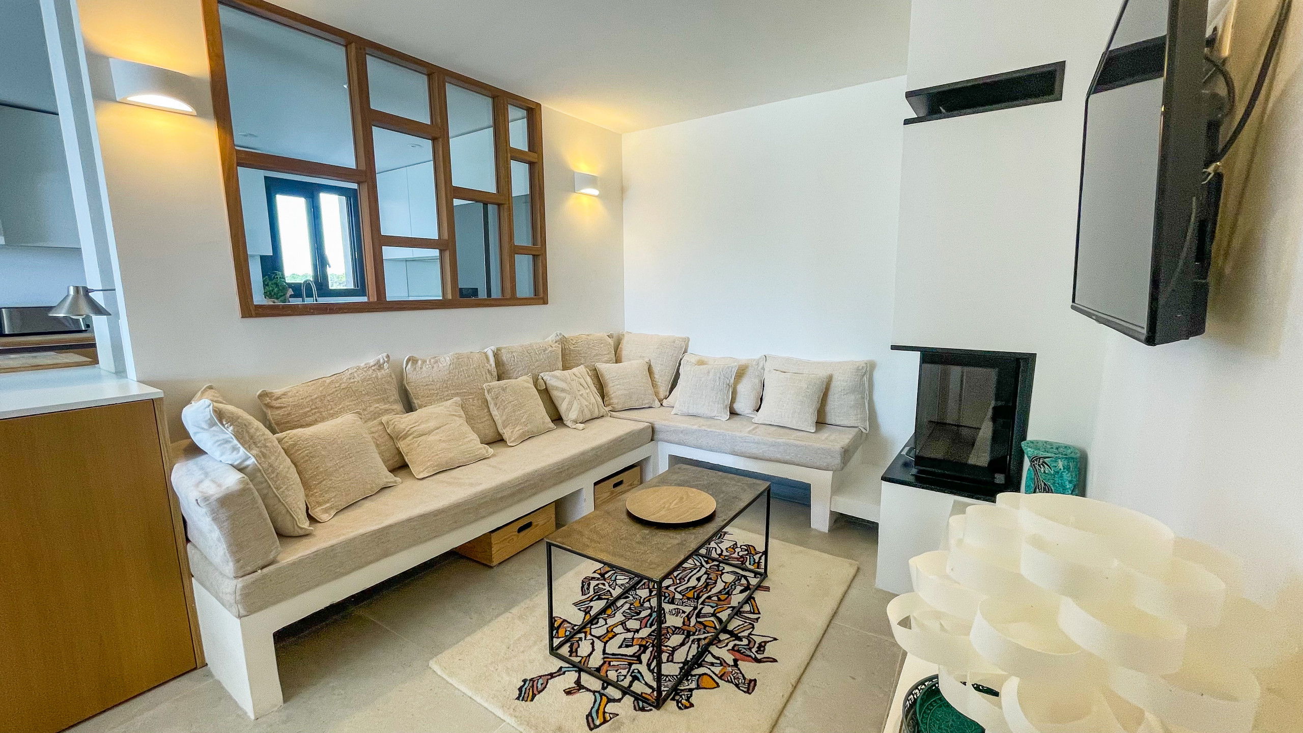 • Bright living/dining room with panoramic sea view, fully equipped open kitchen and small lounge area.