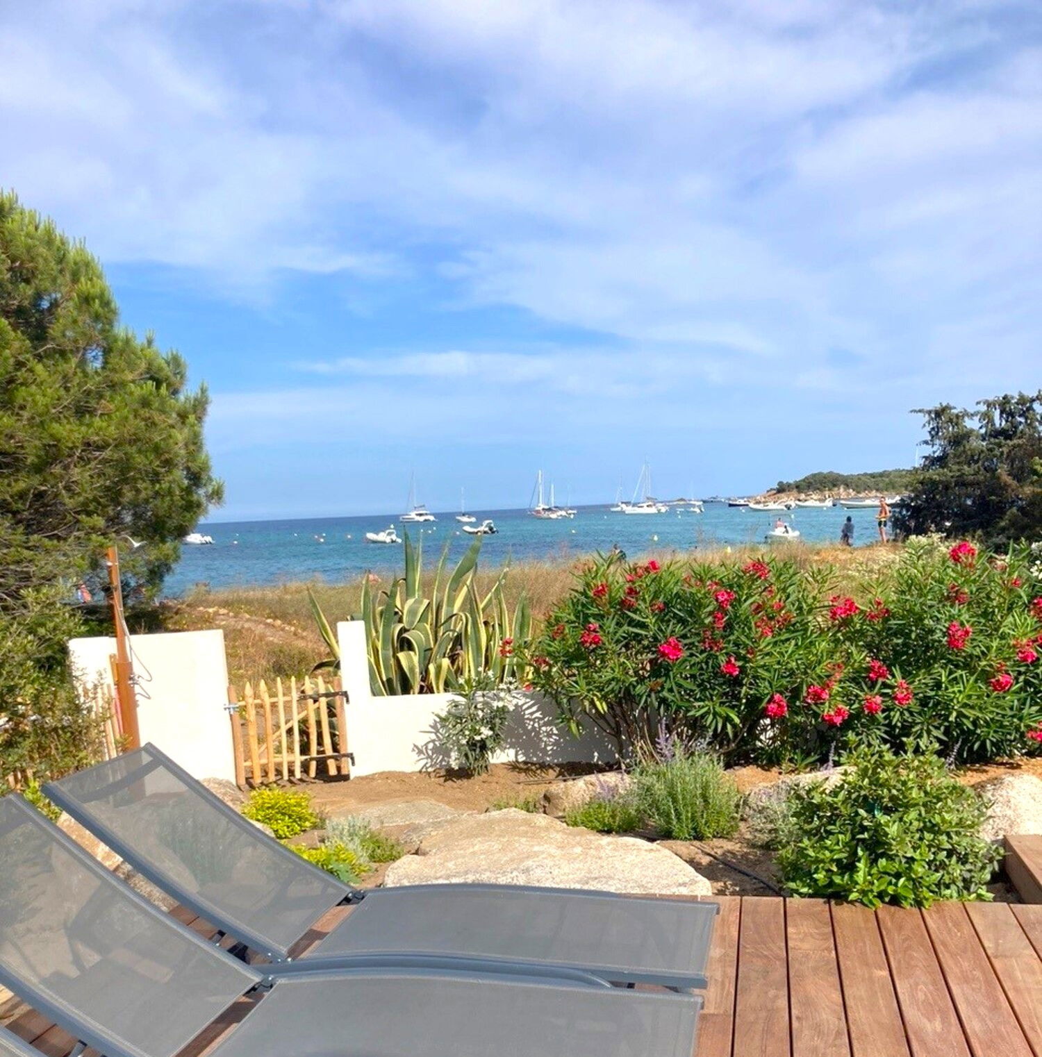 Access to the beach is done directly through the villa's garden, via a small gate.