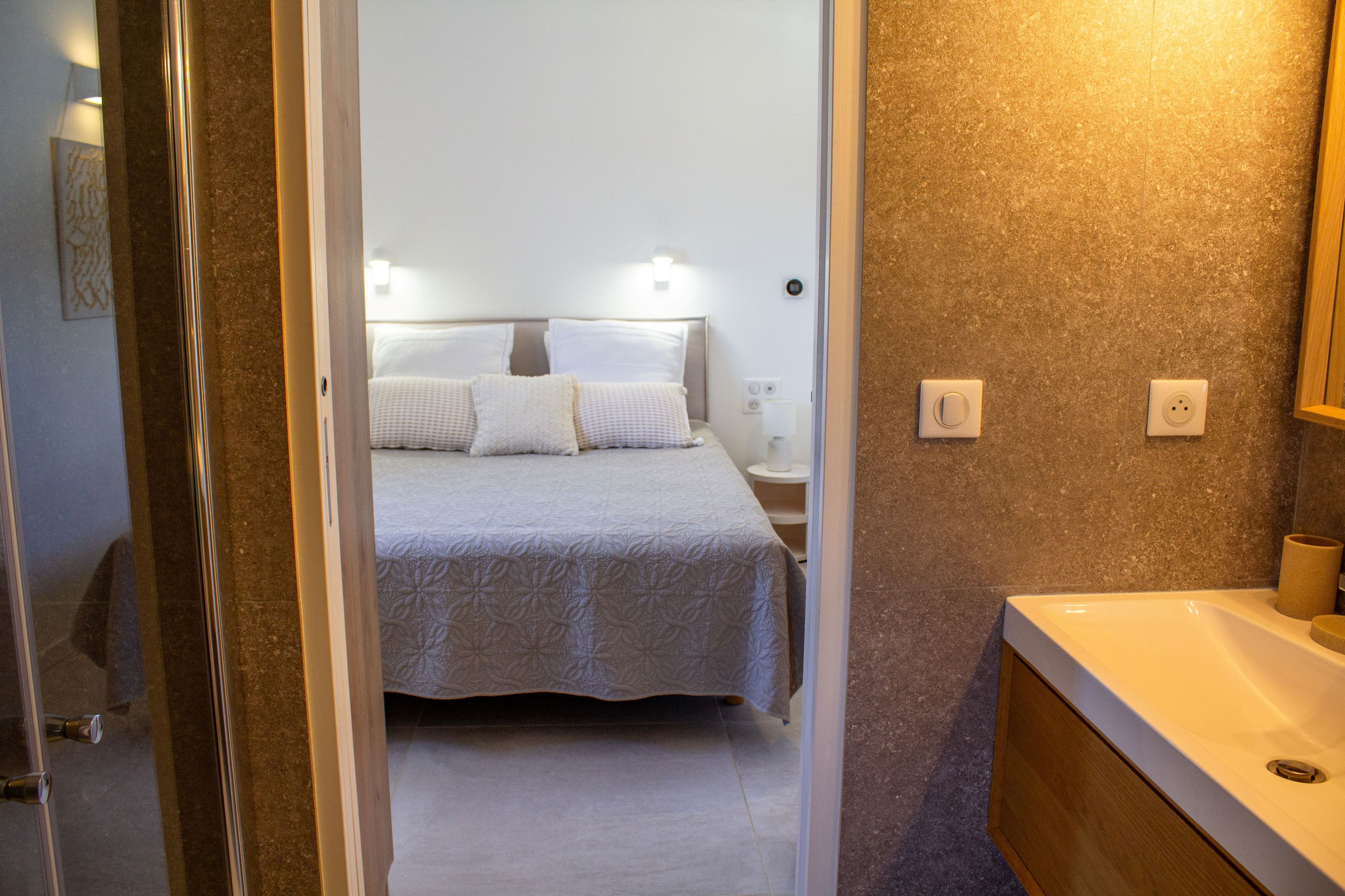 • Parental suite with a 180x200 bed (convertible into 2 90x200 beds), private bathroom and sea view from the terrace.