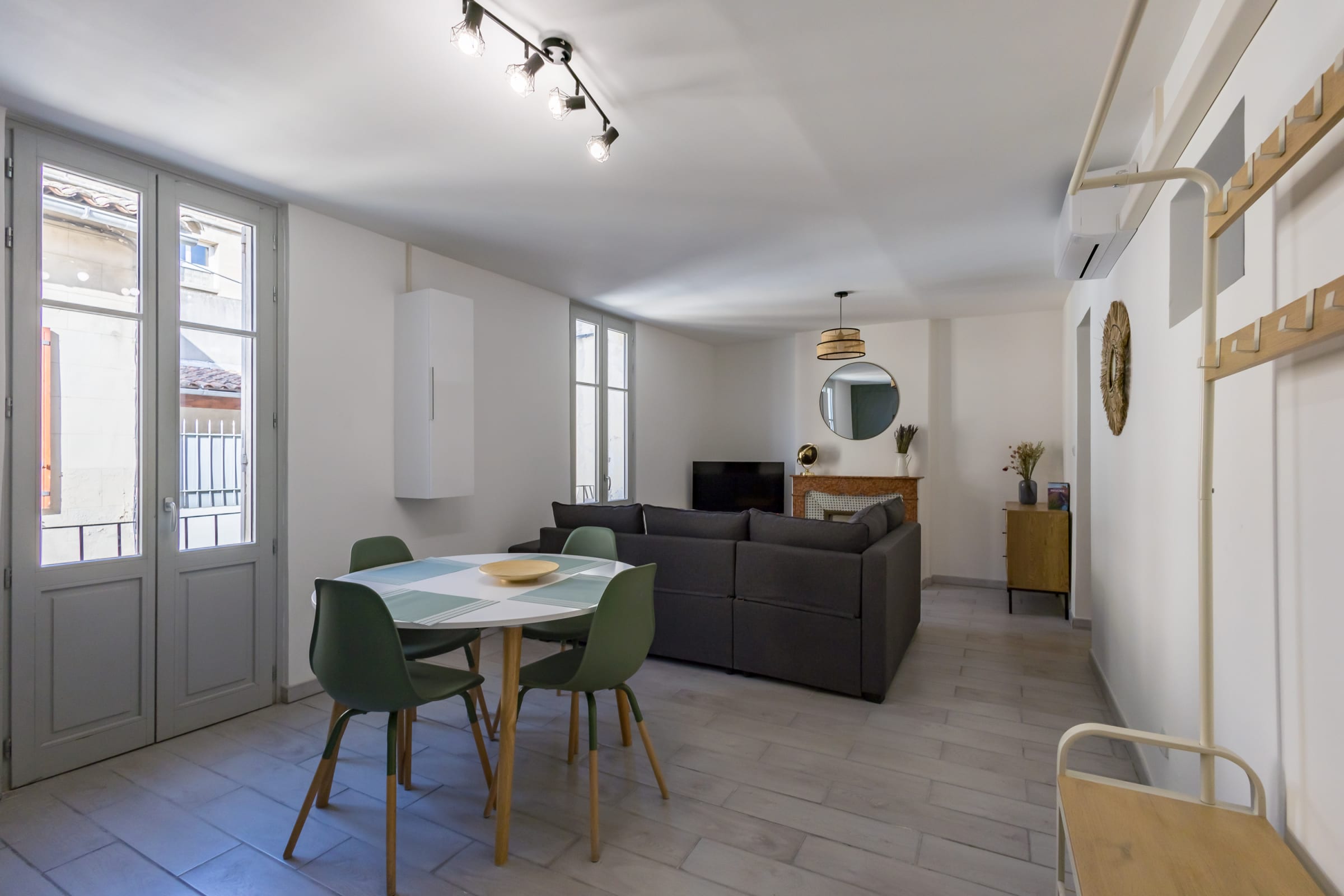 Avignon, in the heart of Provence, is a city rich in history and culture. The flat is just a short walk from Place des Carmes, a vibrant area with many restaurants and wine bars. Just a 10-minute walk away is the majestic Palais des Papes and 12 minutes is the Jardin des Doms, the perfect place for a relaxing stroll. You can also enjoy local delicacies in renowned restaurants such as ‘Fou de Fafa’ nearby. Rue Sureau overlooks a quiet street, ideal for a peaceful getaway while still being in the heart of Avignon's bustling life.