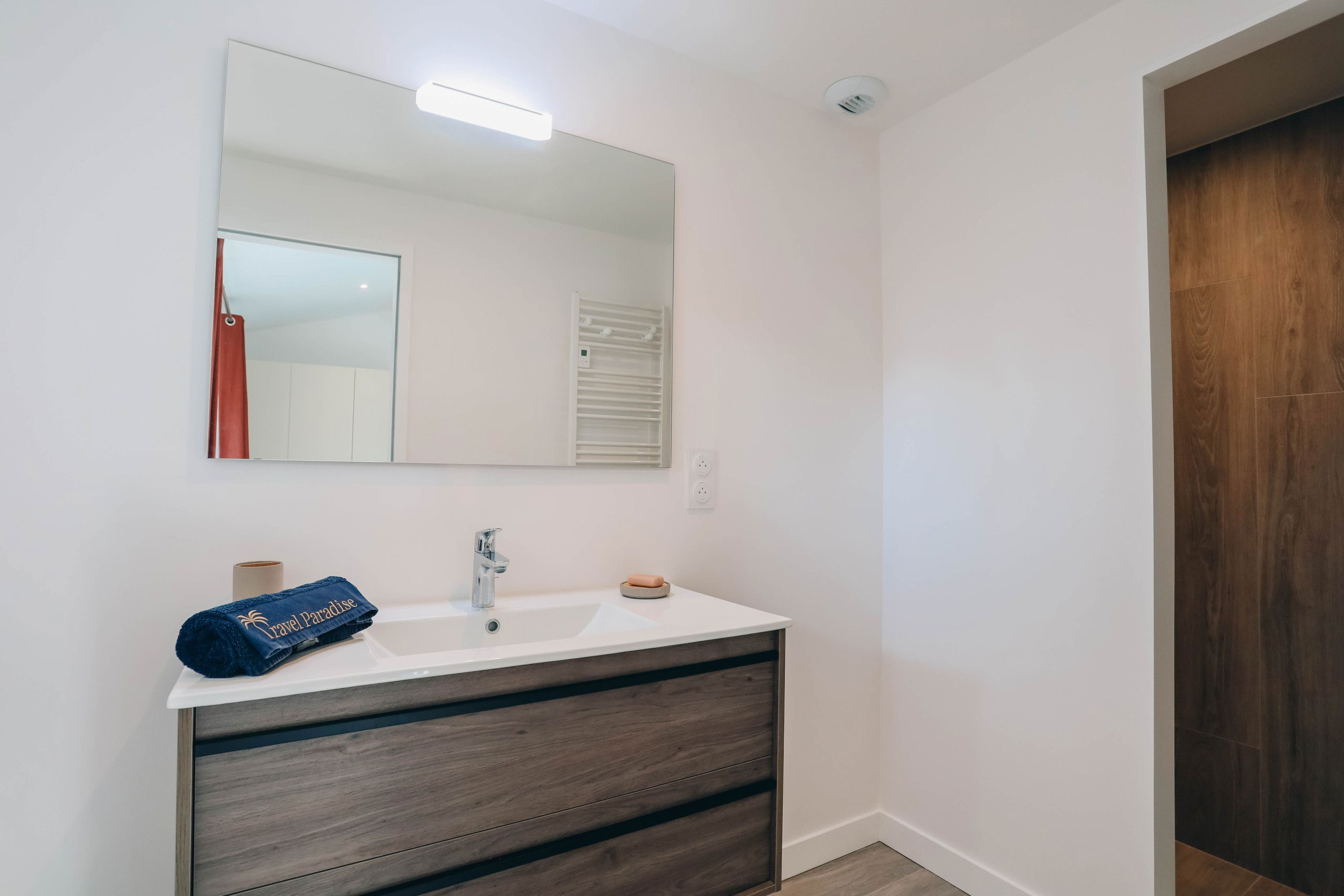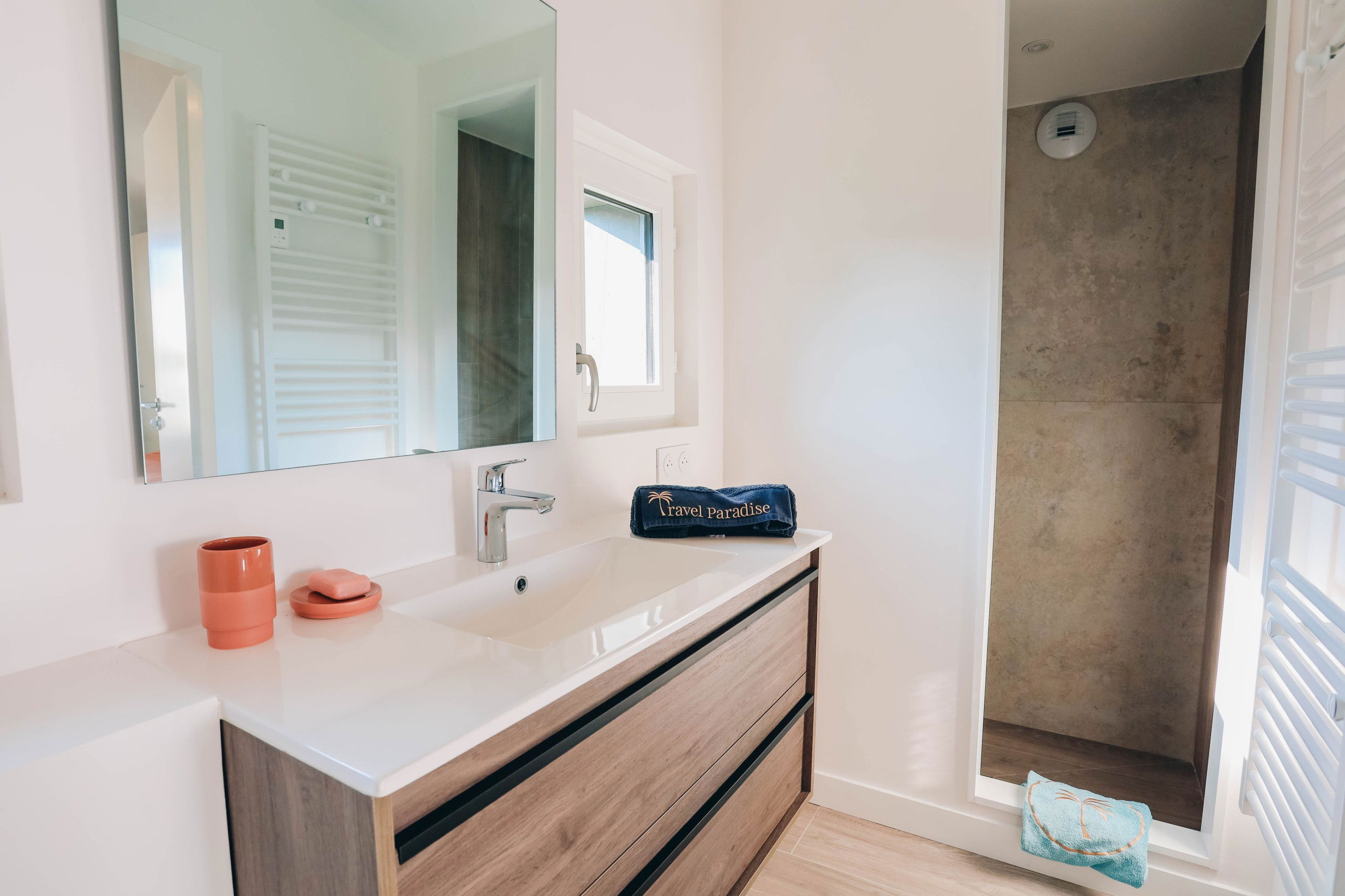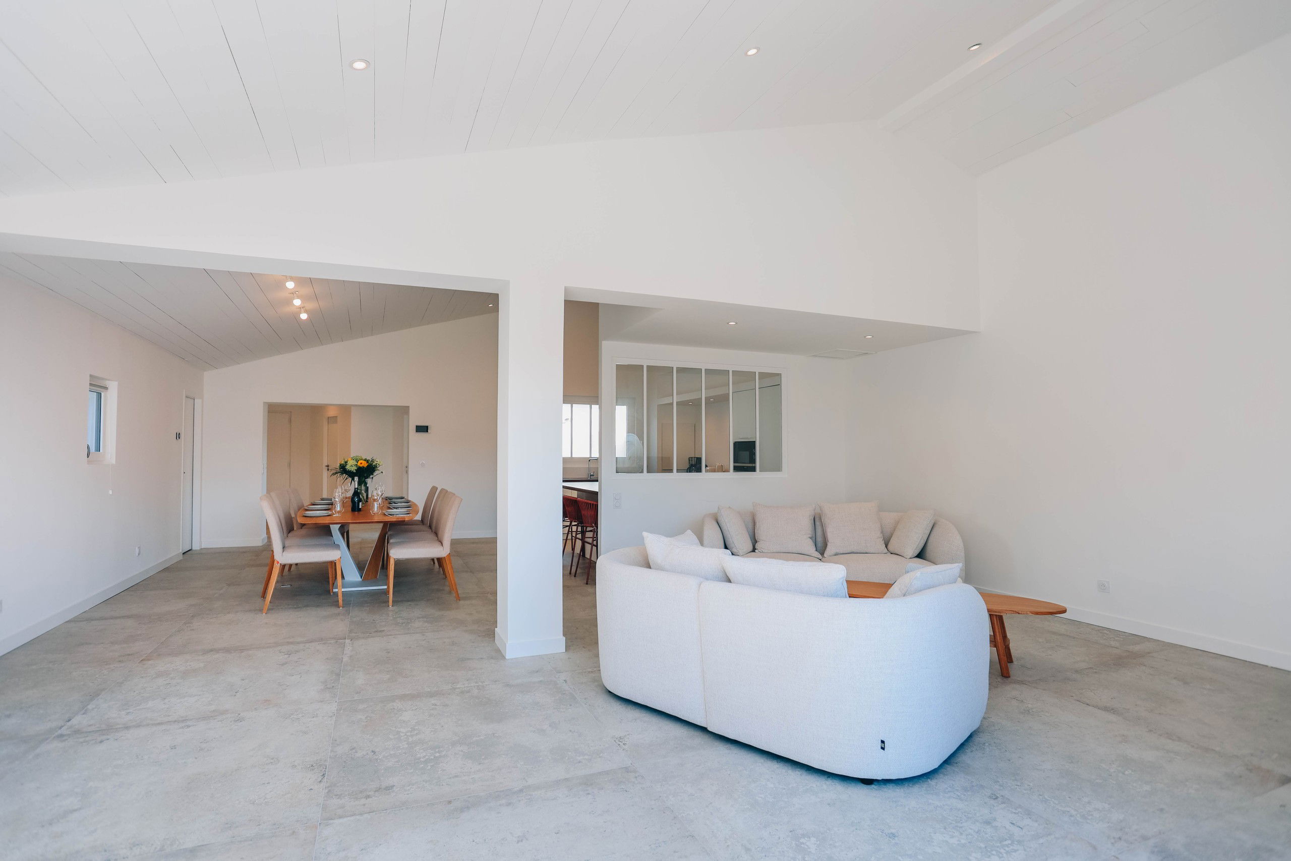 On one side, La Villa Blue, with its minimalist design and heated pool, creates a warm family atmosphere, ideal for those who wish to recharge in a peaceful setting. Enjoy its bright spaces and friendly ambiance, while being just a stone's throw away from local shops, restaurants, and beaches.