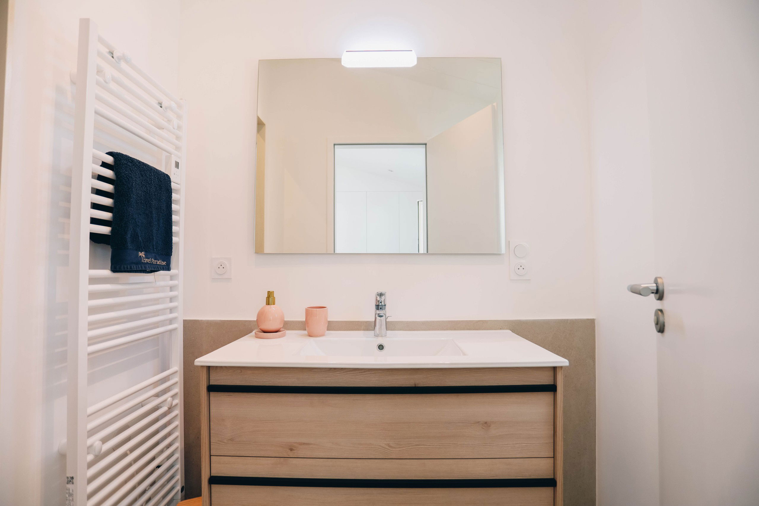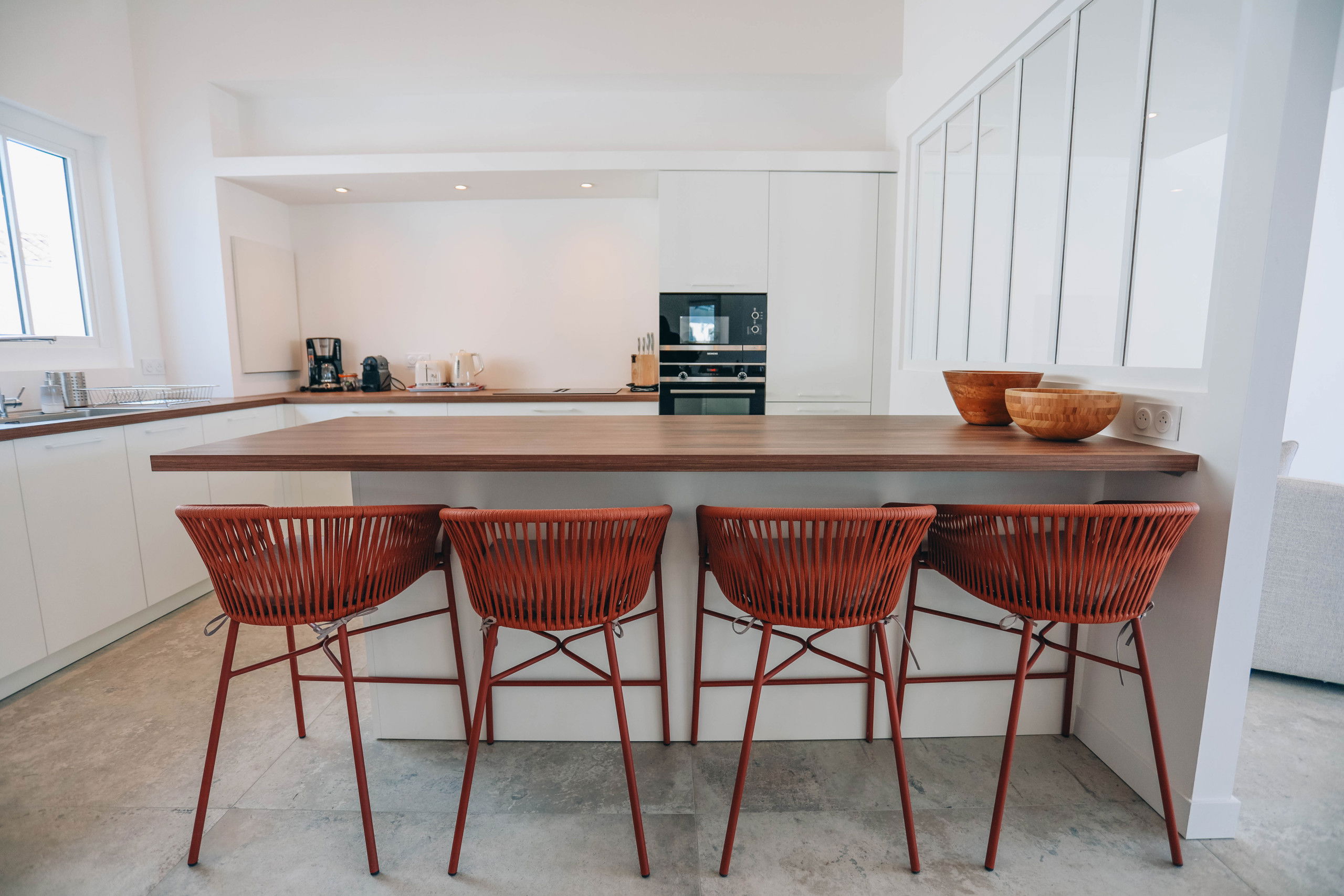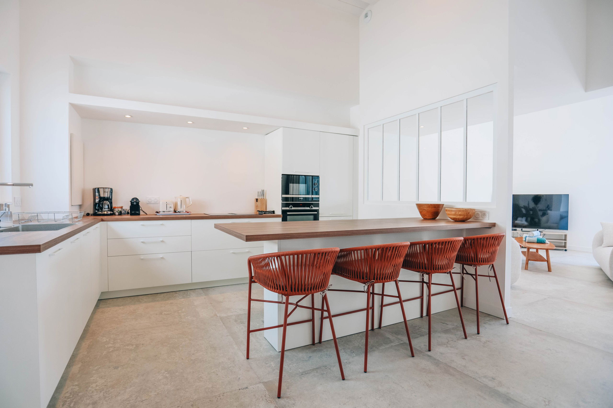 On one side, La Villa Blue, with its minimalist design and heated pool, creates a warm family atmosphere, ideal for those who wish to recharge in a peaceful setting. Enjoy its bright spaces and friendly ambiance, while being just a stone's throw away from local shops, restaurants, and beaches.