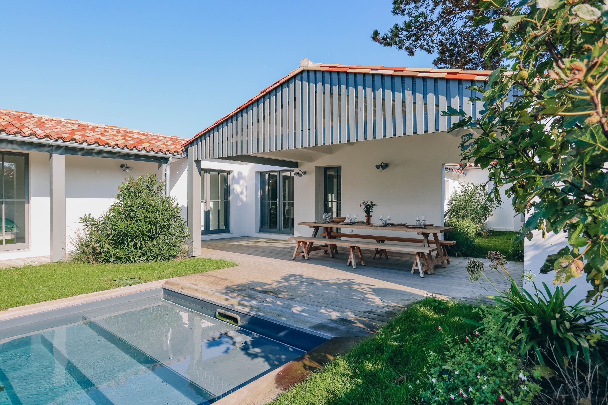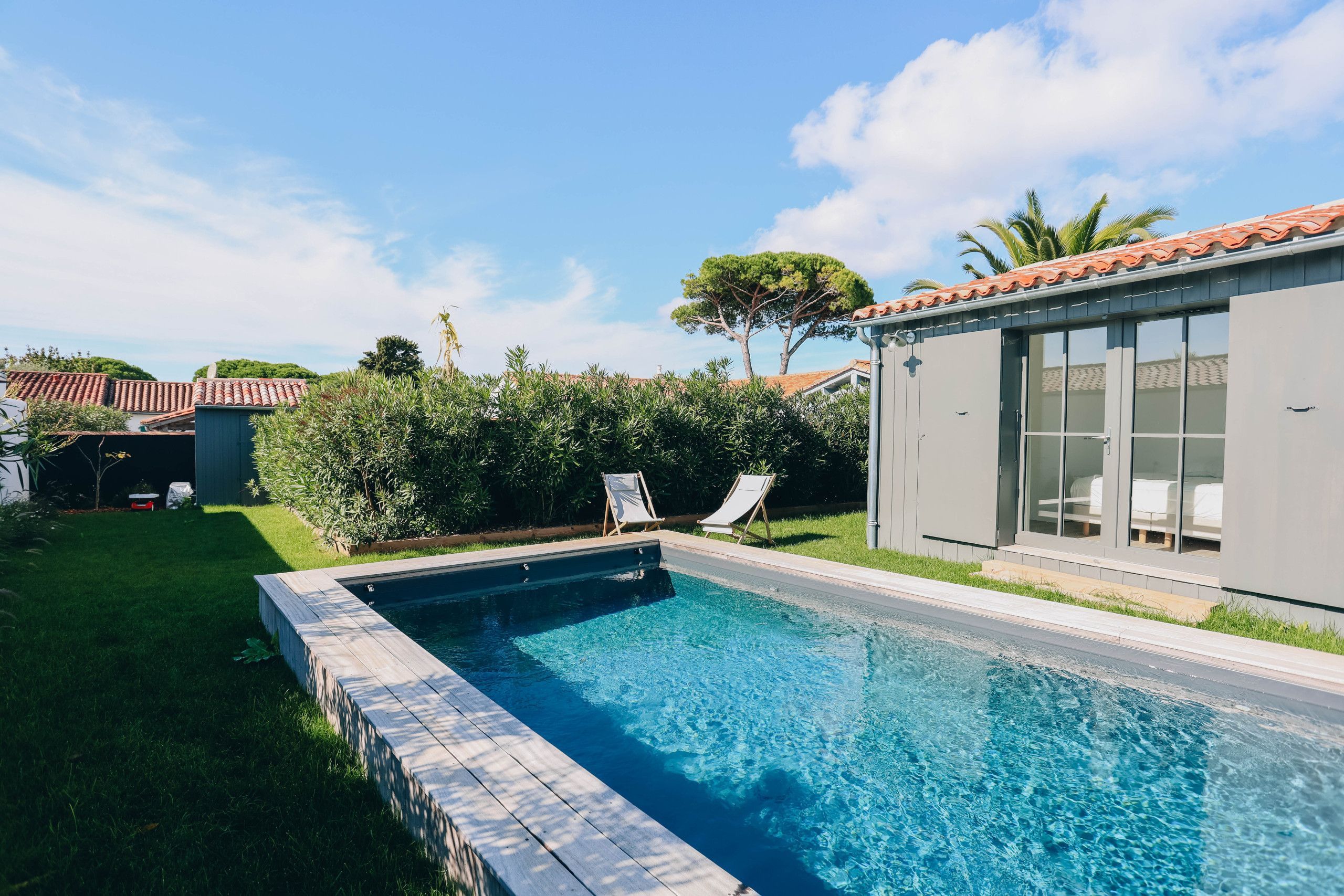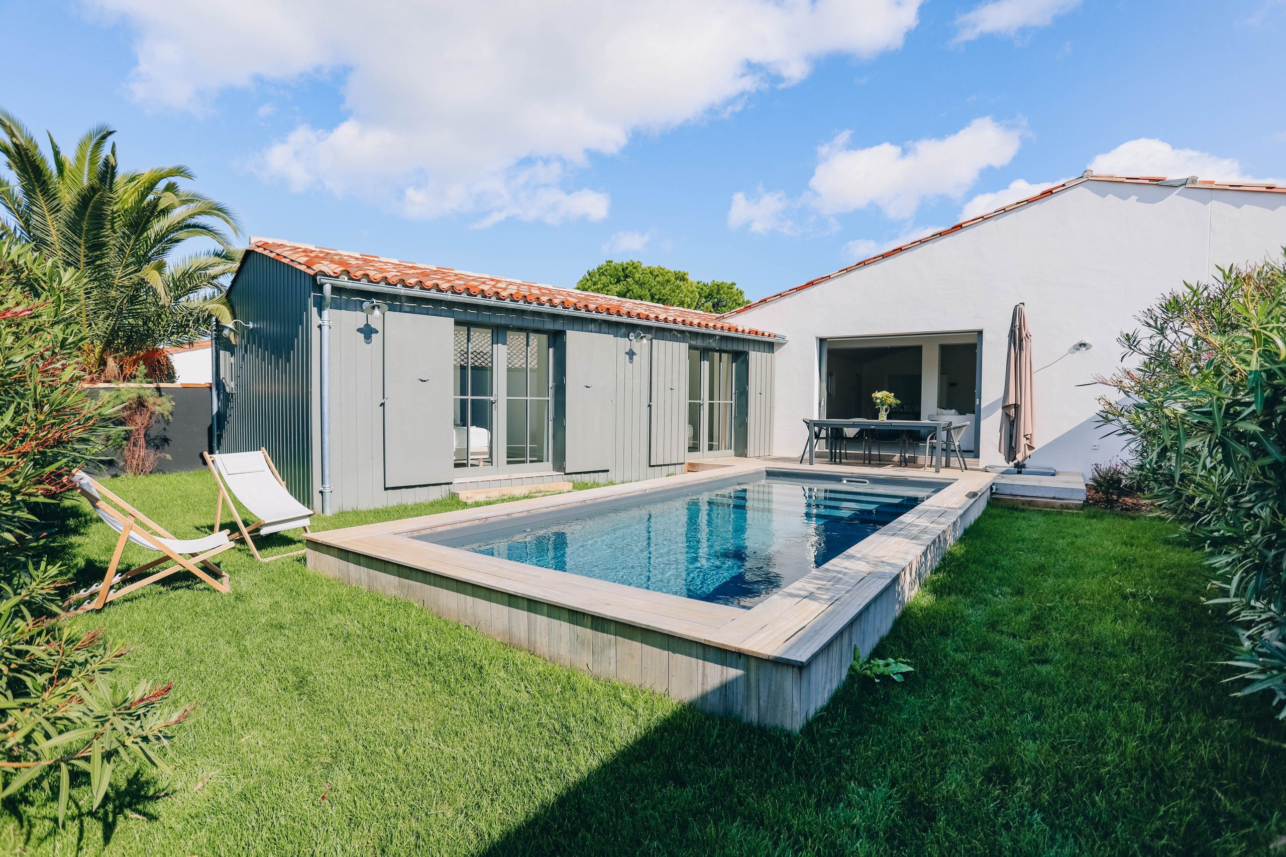 Blueberry Domain thus offers you the best of both worlds: the elegance of a modern villa and the authenticity of a holiday home. Whether you choose to spend your time lounging by the pool, exploring the fine sandy beaches or savouring meals outdoors on sunny terraces, your stay on the island of Ré will be a memorable experience. Get ready to create unforgettable memories in this corner of paradise!
