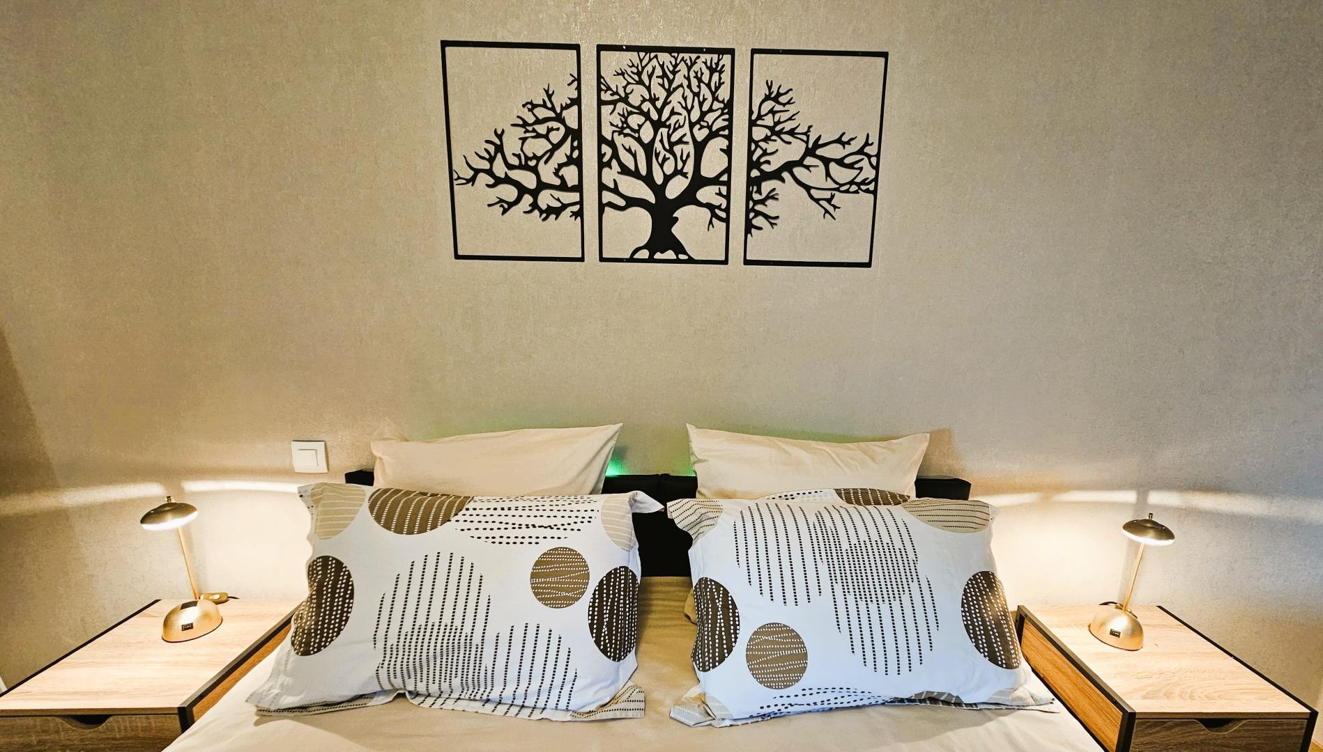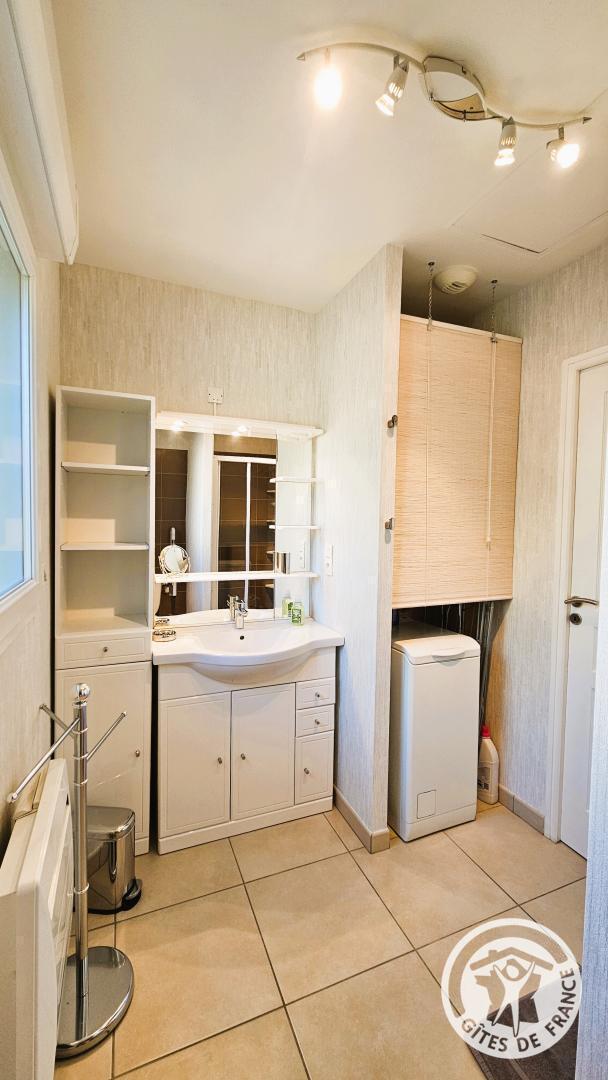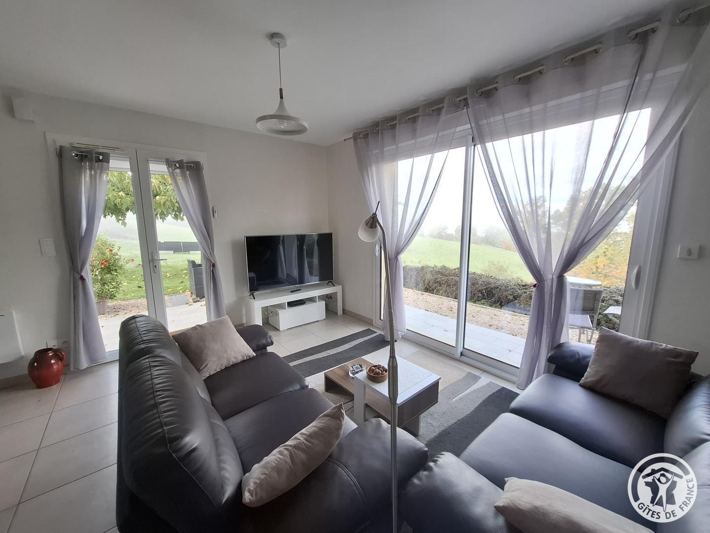 Upon entering on the ground floor, you will be greeted by a room bathed in natural light, thanks to its large bay window that opens onto a terrace. This will allow you to admire a clear view of the surrounding valleys. The living room is furnished with two comfortable sofas, accompanied by a coffee table, a television, as well as a WIFI connection. The kitchen, meanwhile, is open to the living room and has all the necessary equipment to prepare delicious meals.