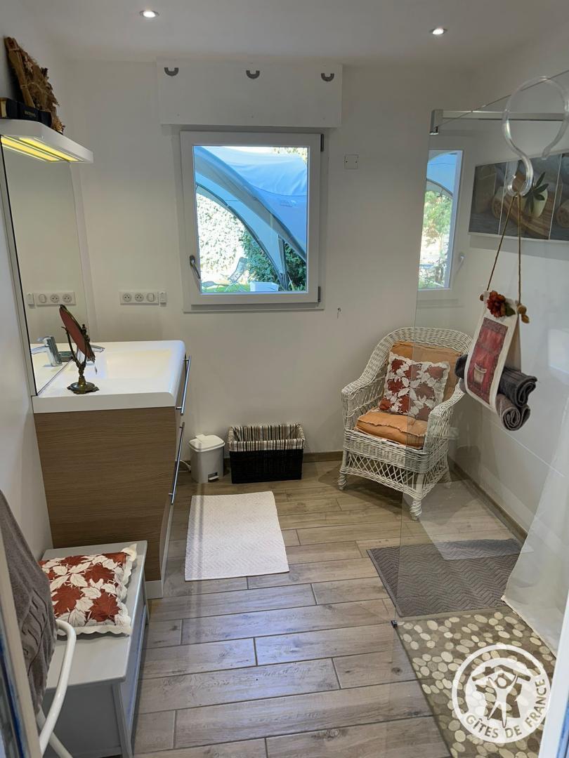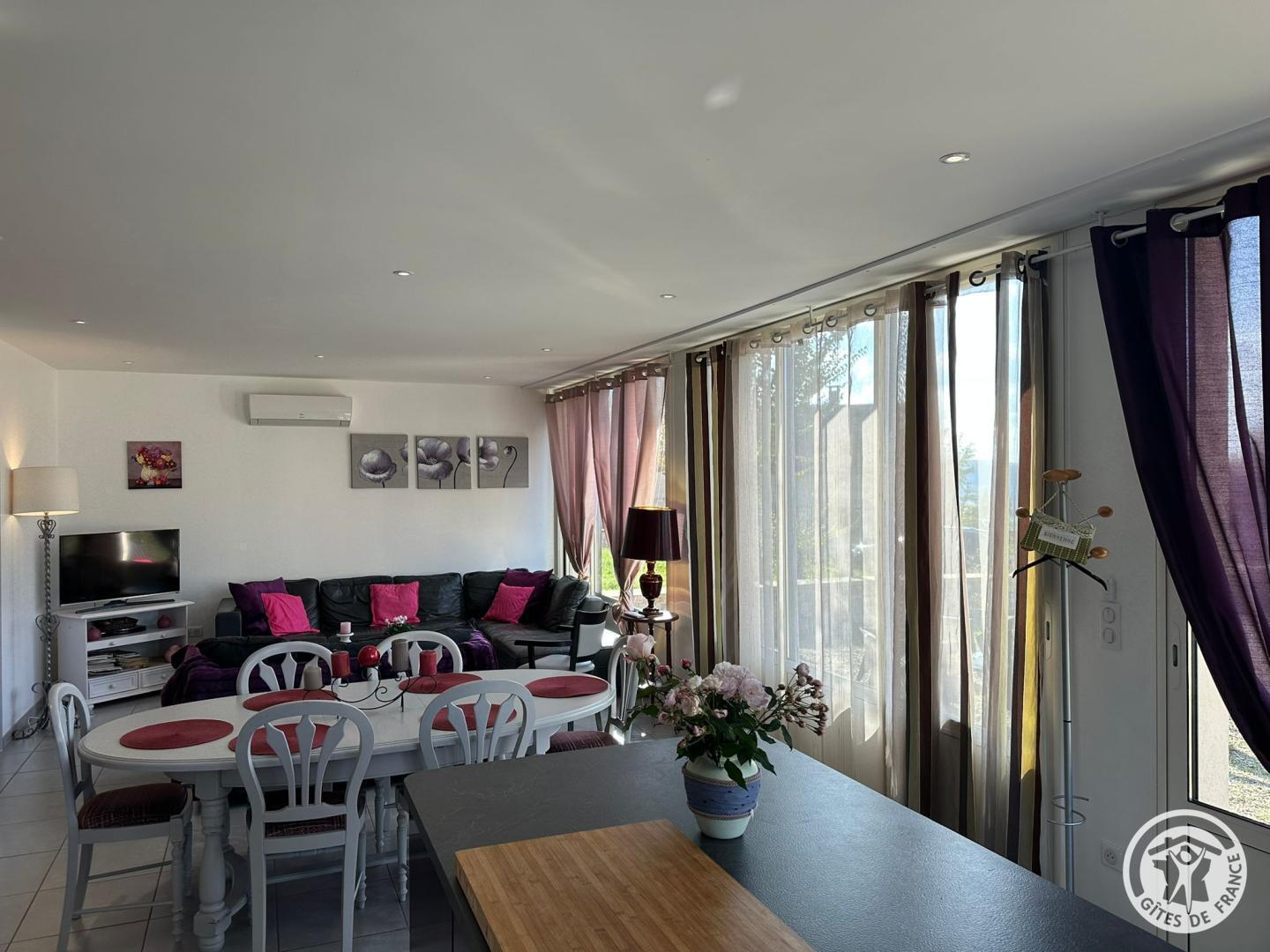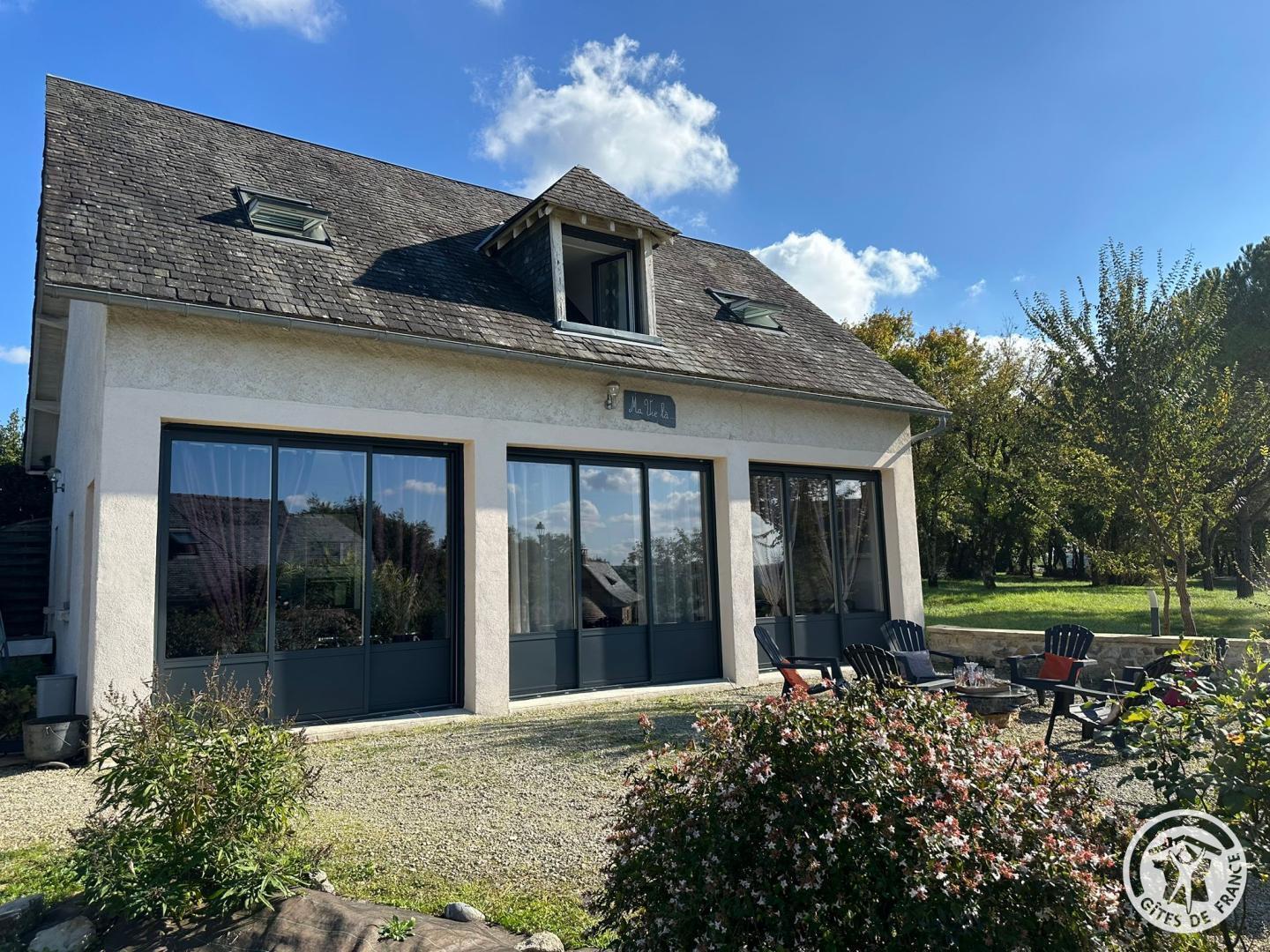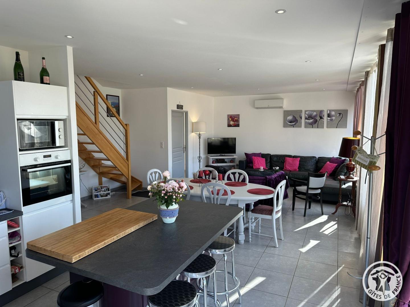 Gîte with a spacious and very bright living room thanks to large bay windows, fully equipped modern kitchen, 3 bedrooms (1 bedroom for 2 people on the ground floor with a 160 cm bed, 1 bedroom for 2 people upstairs with a 140 cm bed, 1 bedroom - dormitory for 4 people, 4 beds of 90 cm), 2 shower rooms (1 on the ground floor and 1 upstairs), 2 toilets (1 on the ground floor and 1 upstairs), terrace with garden furniture, barbecue and garden. Capacity from 2 to 8 people. Possibility of renting the accommodation for only 2 people (ground floor of the gîte). The bedroom on the ground floor allows access for people with reduced mobility.