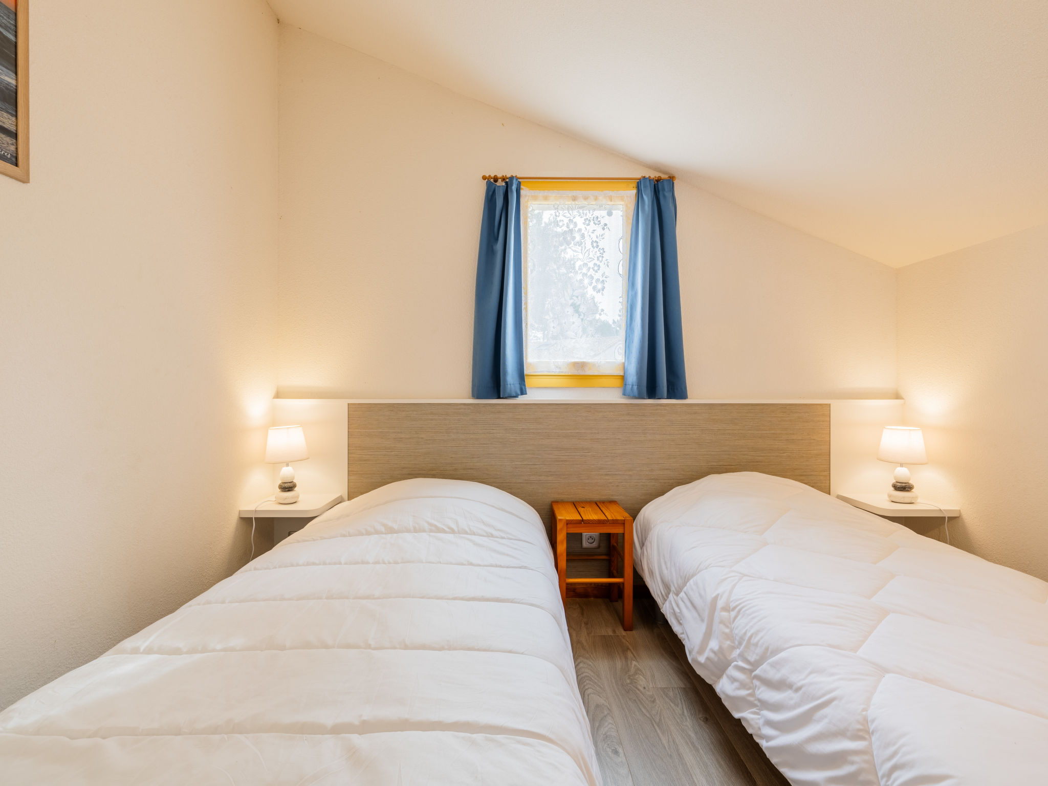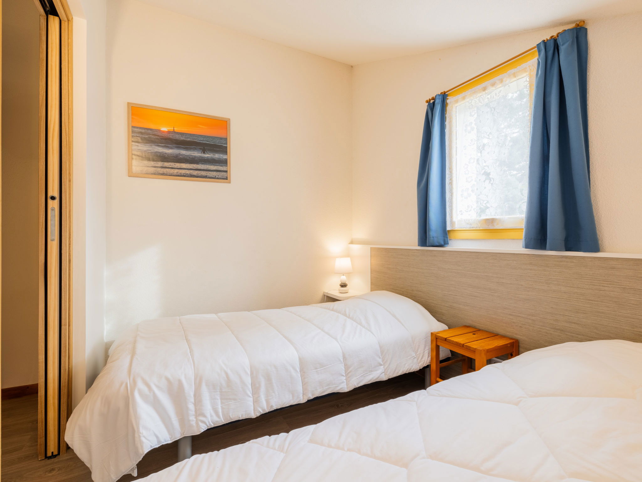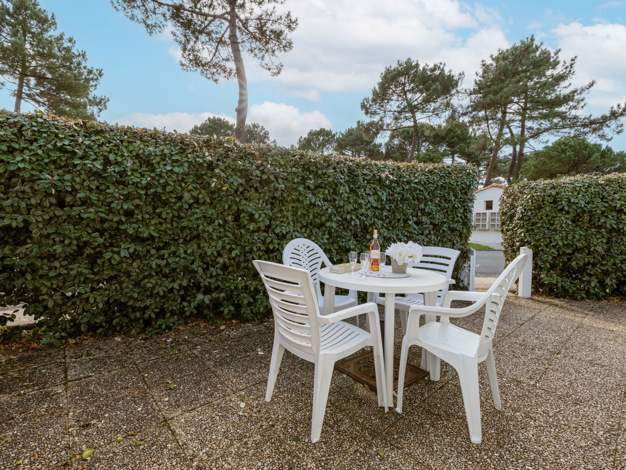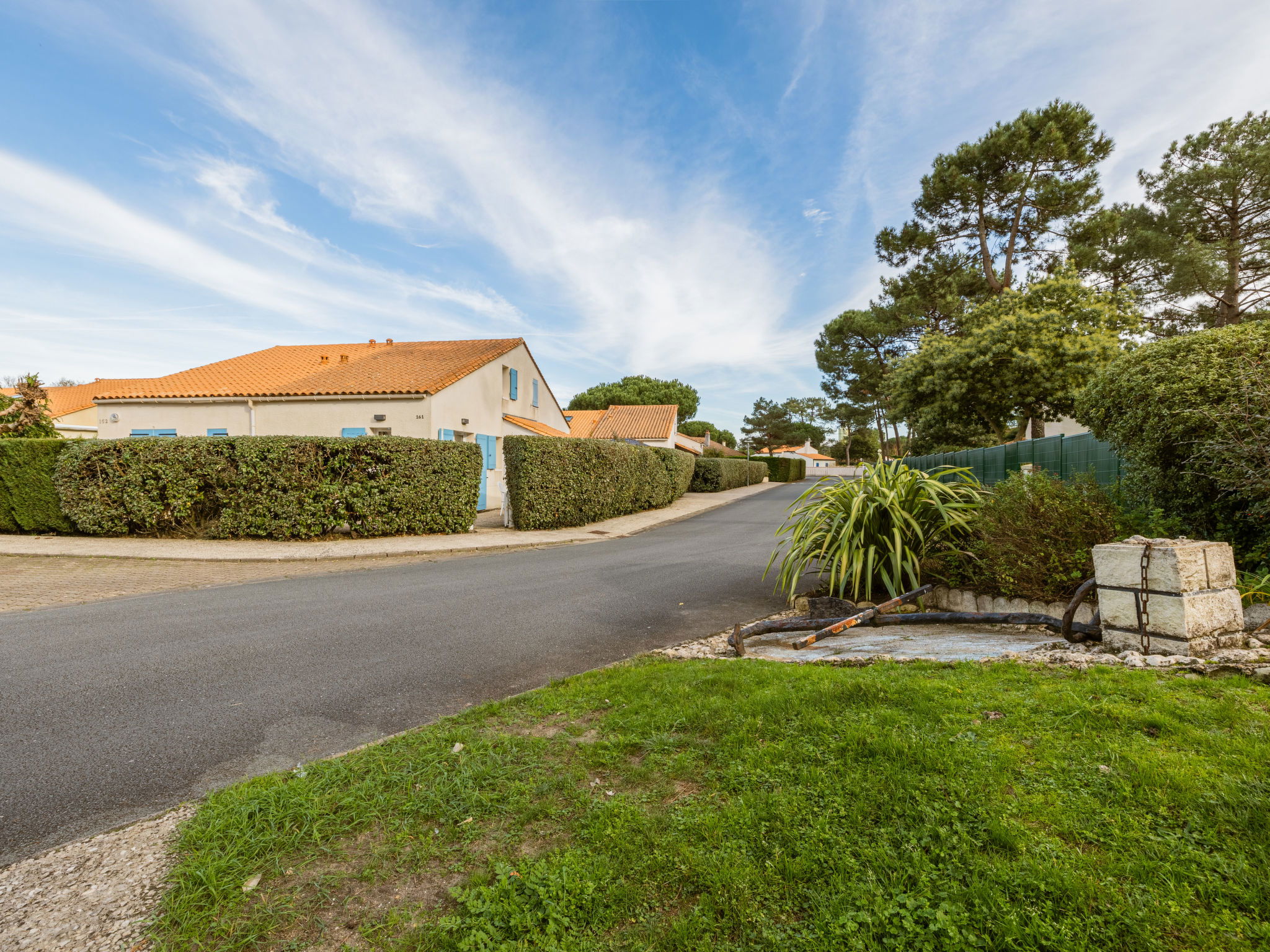 Large residence "Les Charmilles". 170 houses in the residence. On the outskirts, 650 m from the centre of La Palmyre, 1.3 km from the sea, 1.3 km from the beach. For shared use: swimming pool (8 x 25 m, seasonal availability: 01.Jul. - 30.Aug.). Parking. Shop, grocery, restaurant, bakery, café 800 m, bus stop "La Palmyre Office de Tourisme" 700 m, railway station "Royan" 19 km, sandy beach "La Palmyre" 1.3 km, indoor swimming pool 19 km, thermal baths "Thalassothérapie Thalazur Royan" 19 km. Sports harbour 1.8 km, golf course (9 hole) 3 km, surf school 1 km, sailing school 2 km, minigolf 1.6 km, cycle lane 100 m. Nearby attractions: Zoo de La Palmyre 1.5 km, Hippodrome - La Palmyre 900 m, Port La Tremblade - Boyard / Ile d'Aix 11 km, Centre aquatique Iléo - Ile d'Oleron 36 km, Luna Park (Juillet - Août) 5 km, Zagal Cabaret équestre 1 km. Please note: the keys‘ handover takes place by the agency in La Palmyre, 1 km. Additional accommodations can be booked.