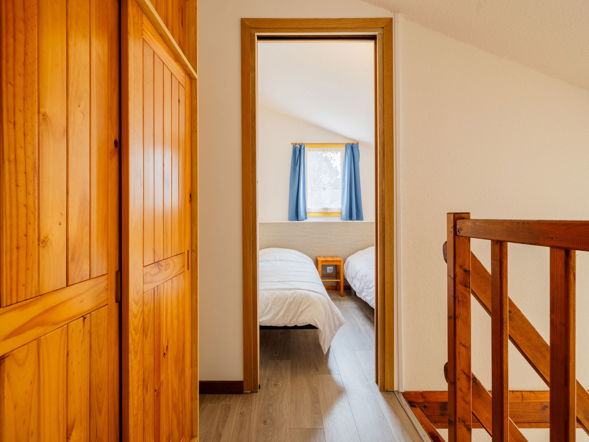 3-room terraced house 35 m2 on 2 levels. Renovated, cosy furnishings: living room with TV (flat screen). Exit to the terrace. 1 room with 1 french bed (1 x 140 cm, length 190 cm). Kitchenette (mini-oven, 4 induction hot plates, microwave, freezer, electric coffee machine). Shower/WC. Electric heating. Upper floor: 1 room with 2 beds (90 cm, length 190 cm). Terrace 20 m2. Terrace furniture. Facilities: washing machine, iron. Internet (WiFi, extra). Parking space n 161. Please note: smoke alarm. Offer by a private individual according to Art. 155, IV of CGI.