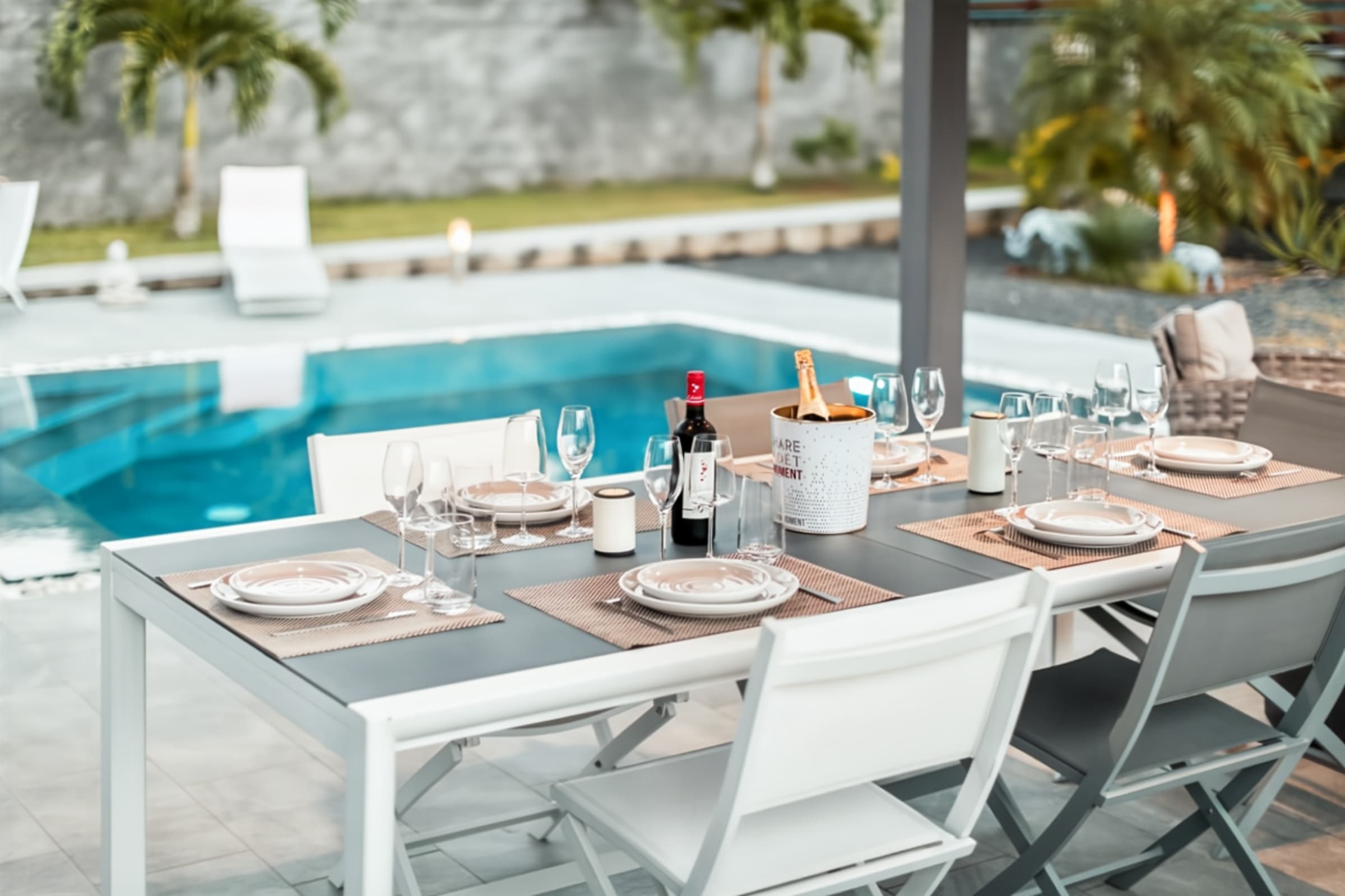 Outside, the private pool invites you to relax and soak up the Caribbean sun in complete privacy. Picture yourself enjoying an aperitif by the water after a day of exploration.