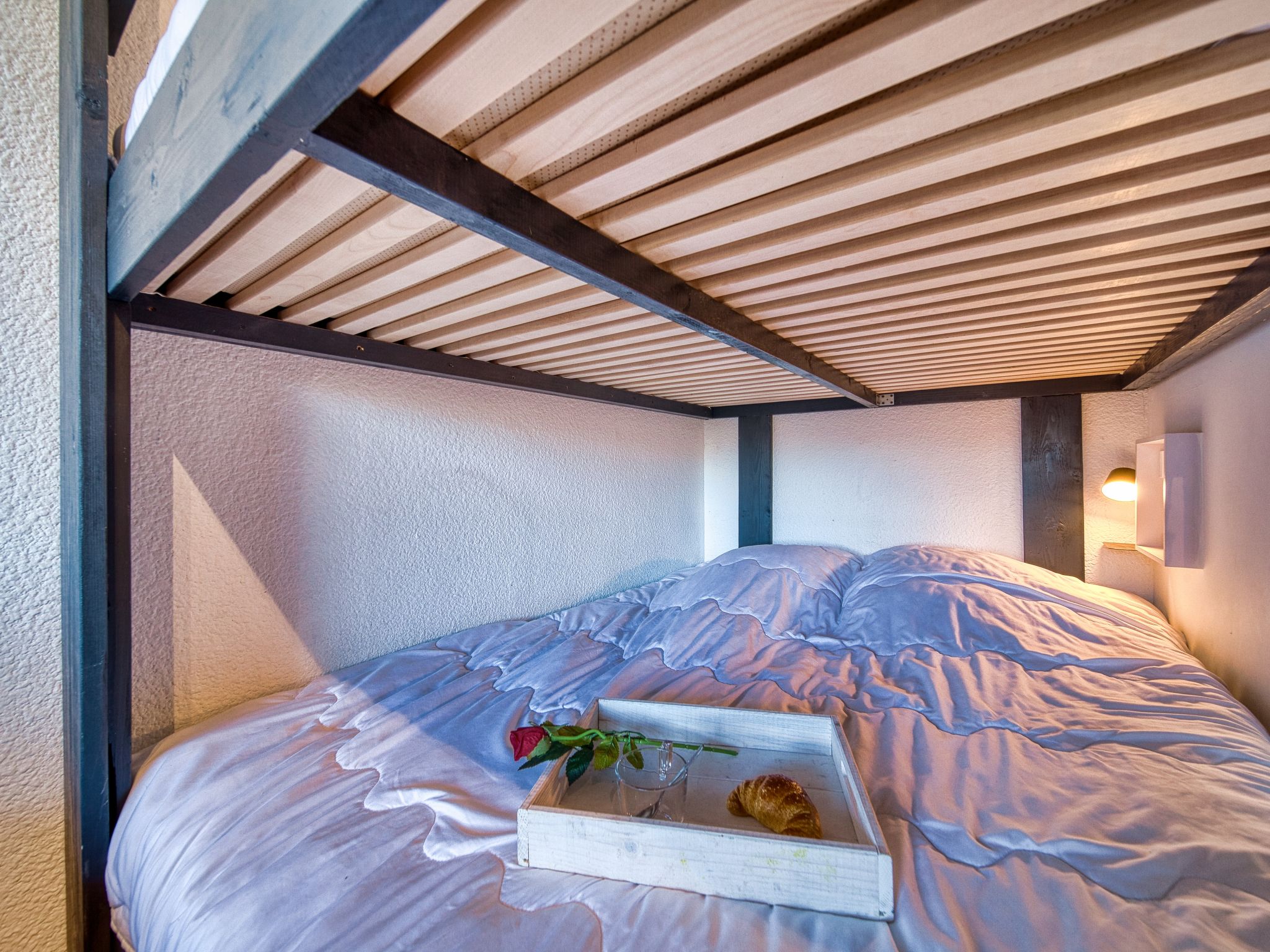 1-room studio 22 m2 on 4th floor, north facing position. Renovated: living/dining room with 1 x 2 bunk beds (140 cm, length 190 cm), TV (flat screen), electric shutters. Kitchenette in the entrance (dishwasher, 2 induction hot plates, freezer, electric coffee machine, Capsules for coffee machine (TASSIMO) extra, raclette grill). Bath/WC. Electric heating. Parquet floors. Small balcony 4 m2. Balcony furniture. View of the mountains and the valley. Facilities: Internet (WiFi, extra). Please note: non-smokers only. Smoke alarm. Offer by a private individual according to Art. 155, IV of CGI.