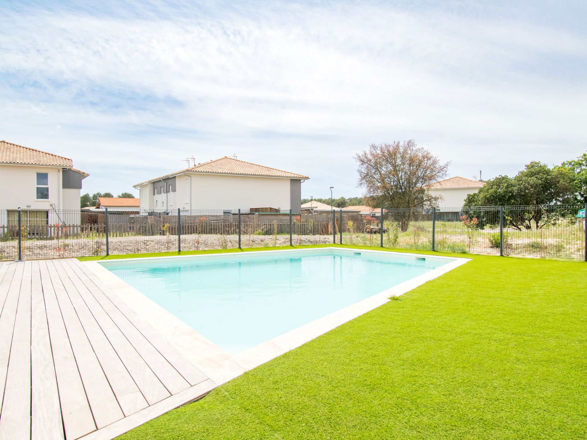 Residence "Soleil couchant". In the resort 900 m from the centre of de Mimizan Plage, 100 m from the edge of the forest, 900 m from the sea, 10 km from the lake, 900 m from the beach. For shared use: swimming pool fenced (4 x 5 m, depth 150 - 160 cm, seasonal availability: 01.Jun. - 30.Sep. pool opening hours: 10:00-21:00). Shop 850 m, grocery, bakery 800 m, pedestrian zone 800 m, bicycle rental 750 m, bus stop "Office du tourisme Mimizan" 700 m, sandy beach "la garluche" 900 m, bathing lake "Aureilhan" 10 km. Golf course (9 hole) 7 km, surf school 900 m, tennis 2.5 km. Nearby attractions: Arcachon 70 km, Biscarrosse 40 km, parcs aventure 7 km, Disc Golf 2 km. Well-known lakes can easily be reached: Aureilhan Mimizan 8 km. All houses/apartments are individually designed/furnished.