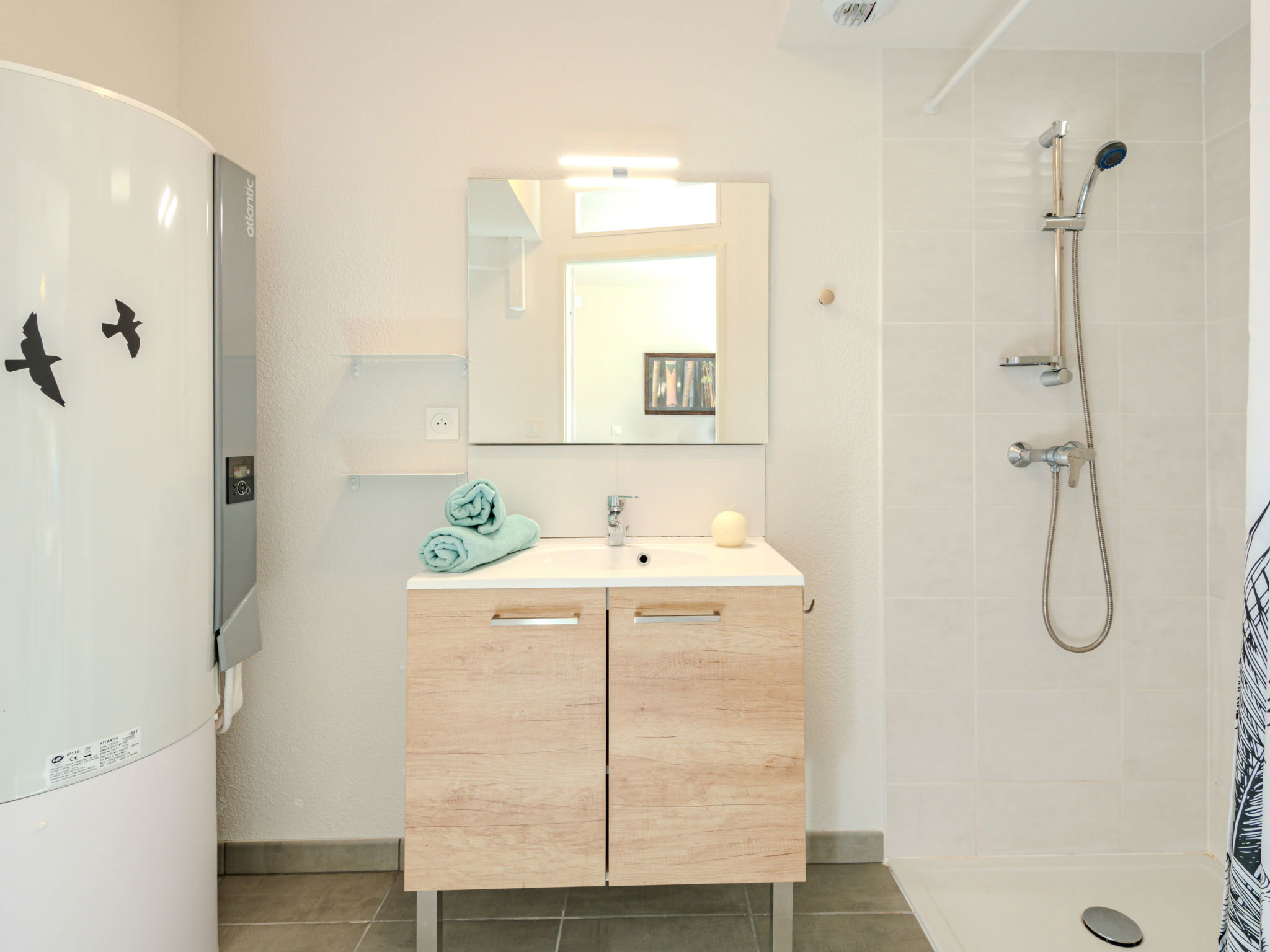 "Soleil couchant I04", 3-room maisonette 41 m2, on the ground floor. Comfortable and modern furnishings: living room with TV (flat screen), air conditioning. Kitchen-/living room (oven, dishwasher, 1 ceramic glass hob hotplate, 2 gas rings, microwave, electric coffee machine, Capsules for coffee machine (filtre et dolce gust) extra). Shower/WC. Electric heating. Upper floor: 1 room with 2 beds (80 cm, length 200 cm). 1 room with 1 french bed (1 x 140 cm, length 190 cm). Sep. WC. Terrace 15 m2, south-west facing position. Terrace furniture. Facilities: washing machine, iron, hair dryer. Internet (WiFi, free). Parking space n 38. Please note: non-smokers only. 1 small pet/ dog allowed. Smoke alarm. Offer by a private individual according to Art. 155, IV of CGI.