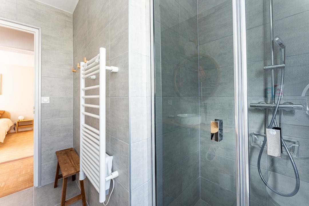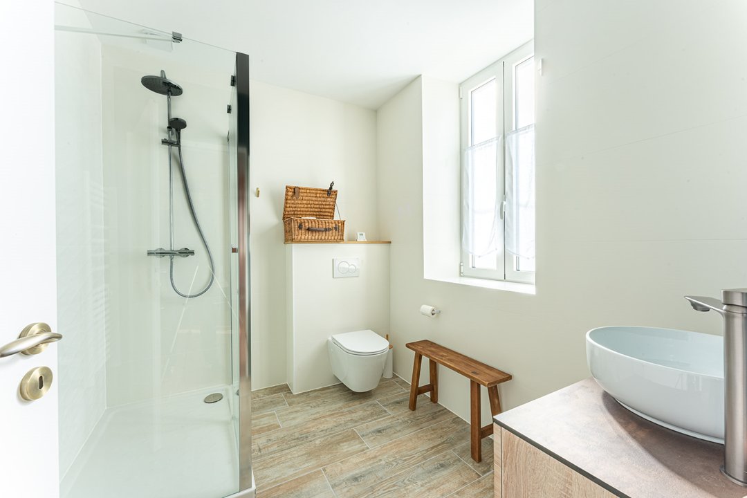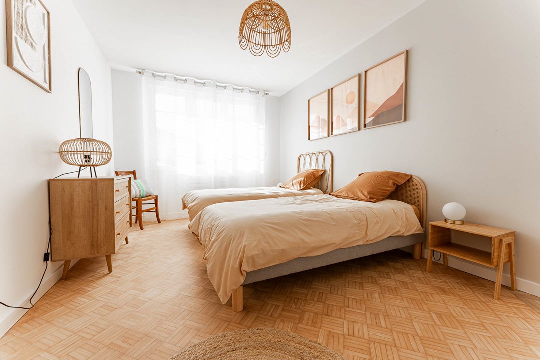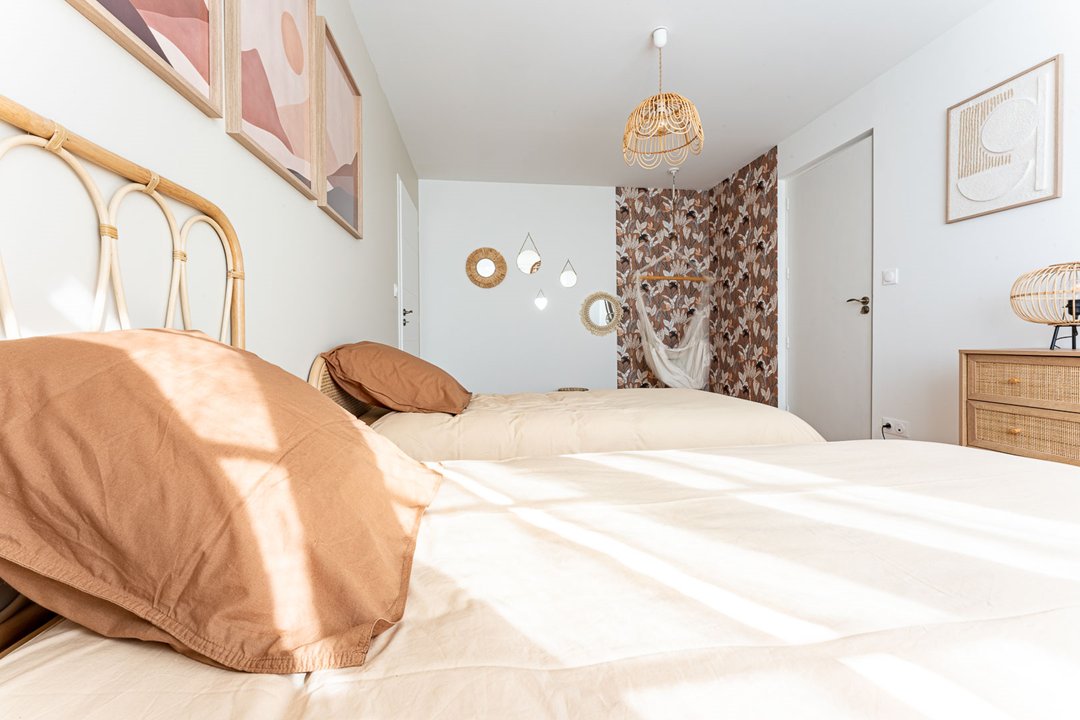 Upstairs, there are three bedrooms, including a master suite with a bathroom with a double bed (160 cm), a bedroom with 2 single beds (90 cm) and a bedroom with 1 double bed (160 cm). cm). A separate bathroom with toilet is also at your disposal.