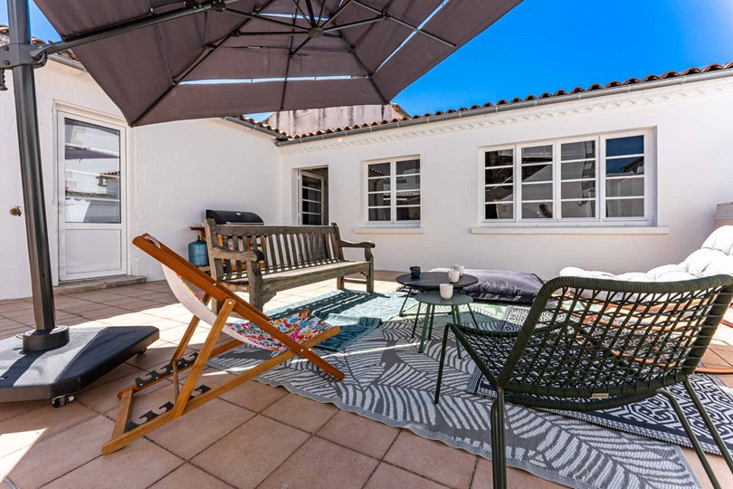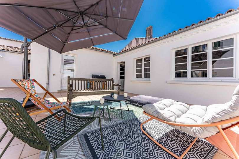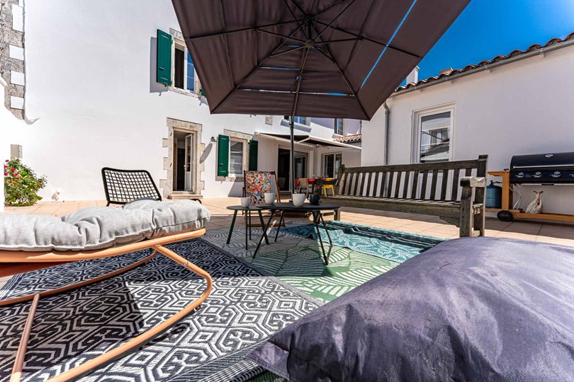 To enjoy the sun, you benefit from a 80m2 courtyard equipped with garden furniture for your outdoor meals, as well as an awning.