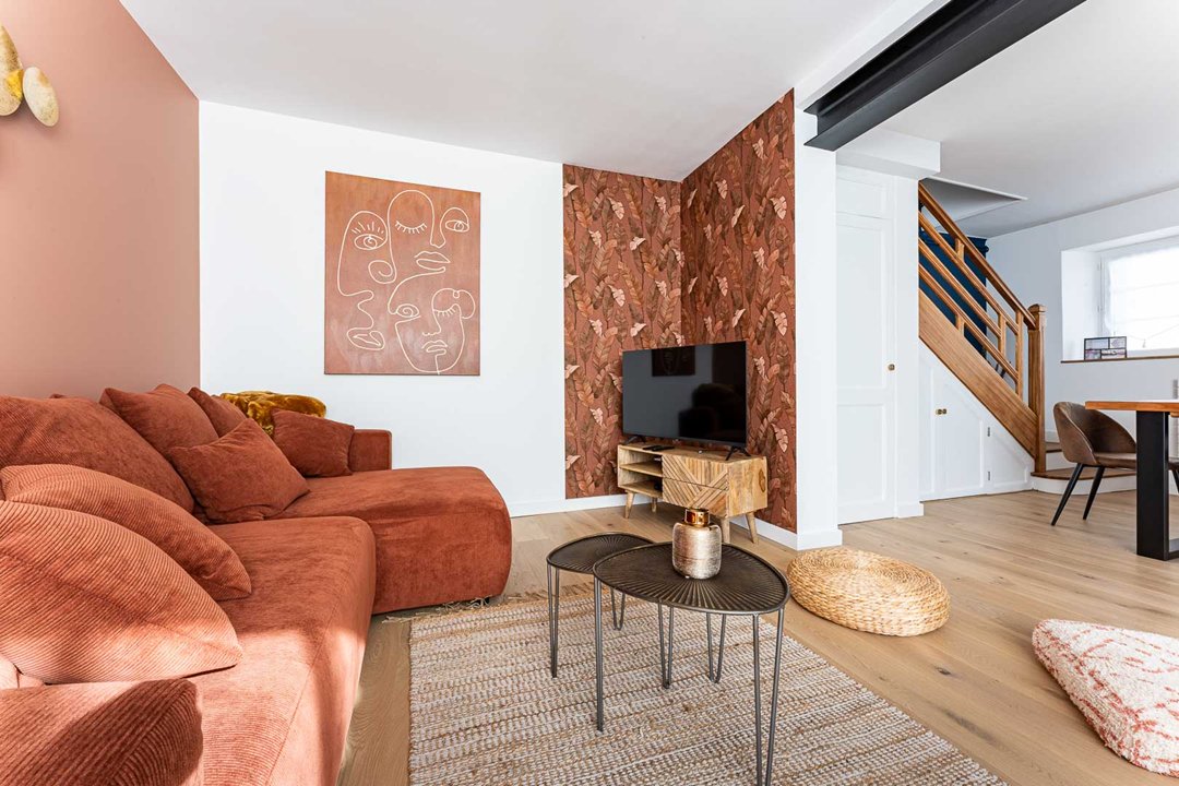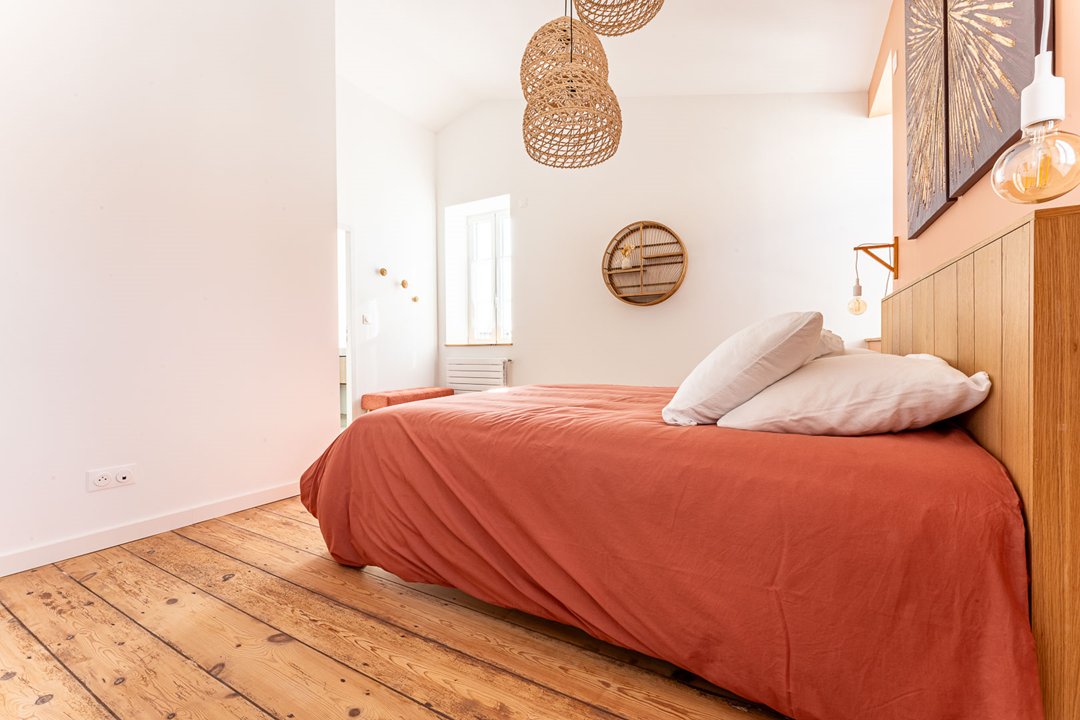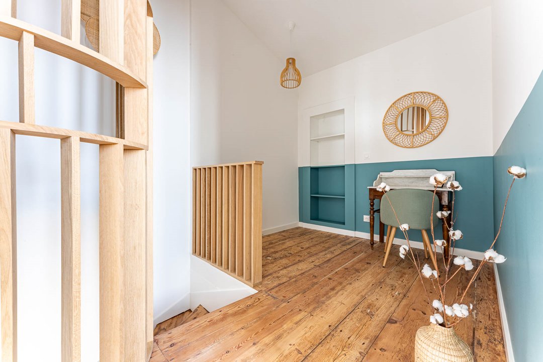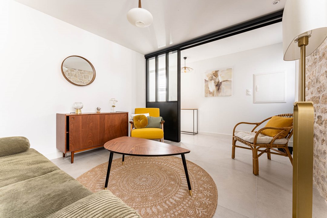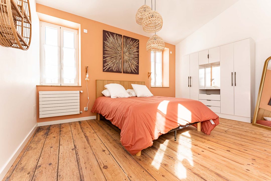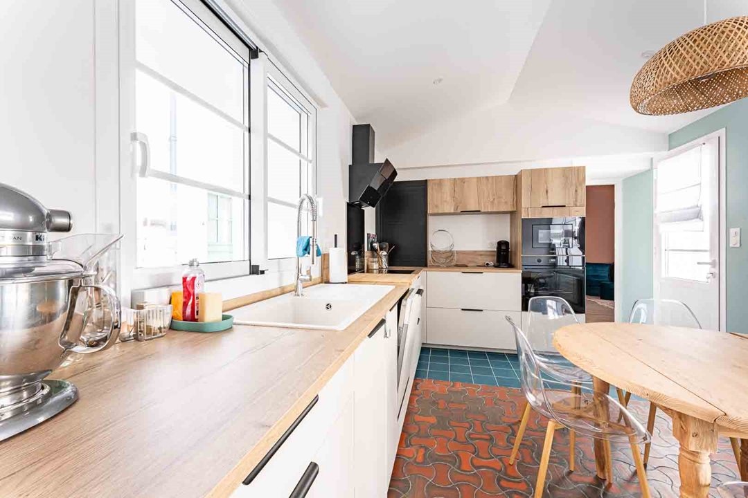 On the ground floor, you will enjoy the living/dining room as well as a pretty, fully equipped kitchen, giving access to the exterior courtyard.