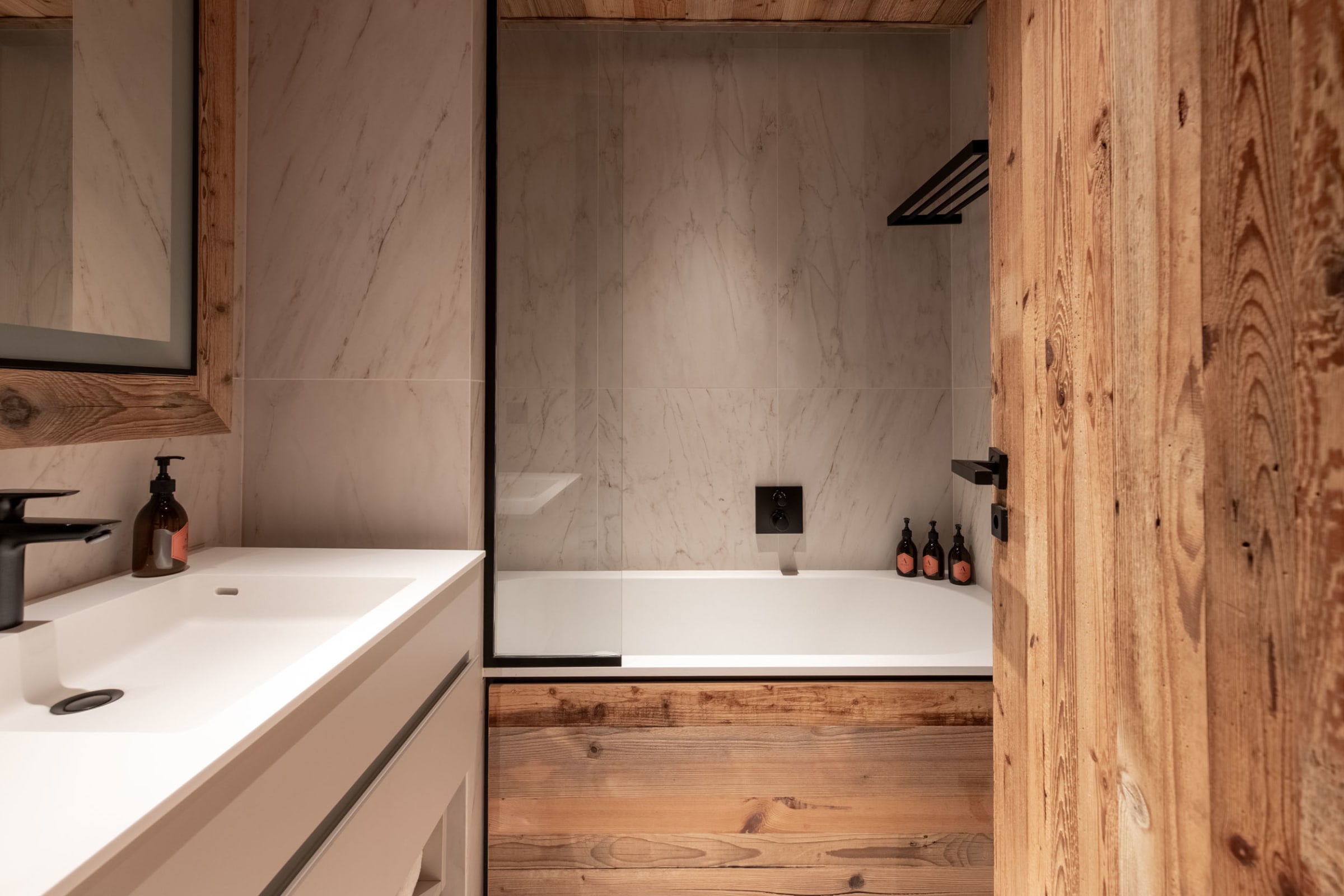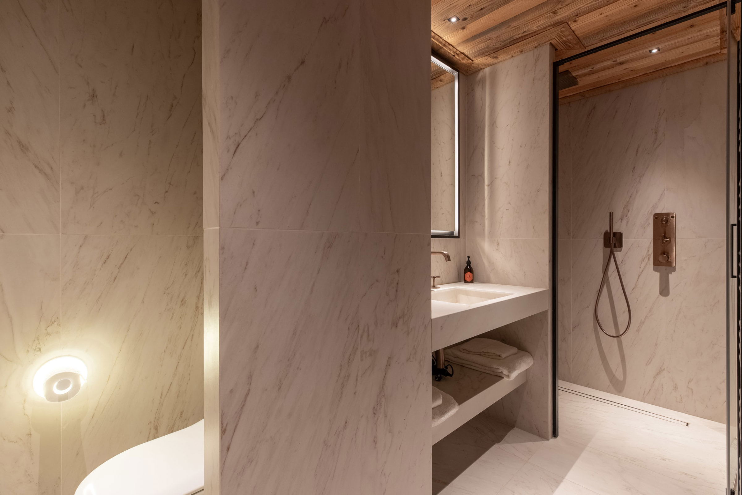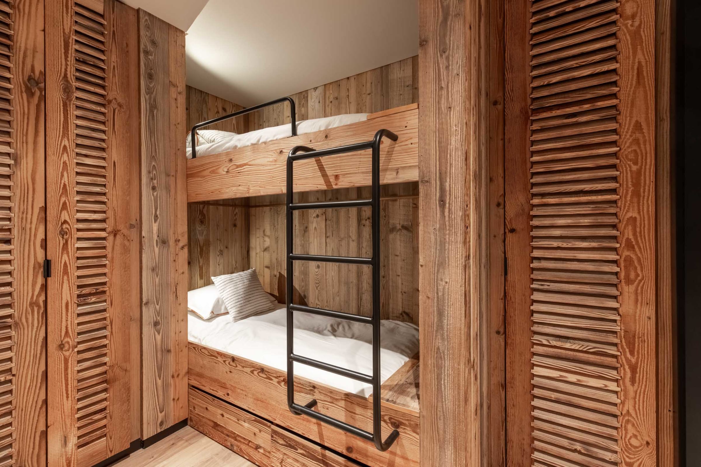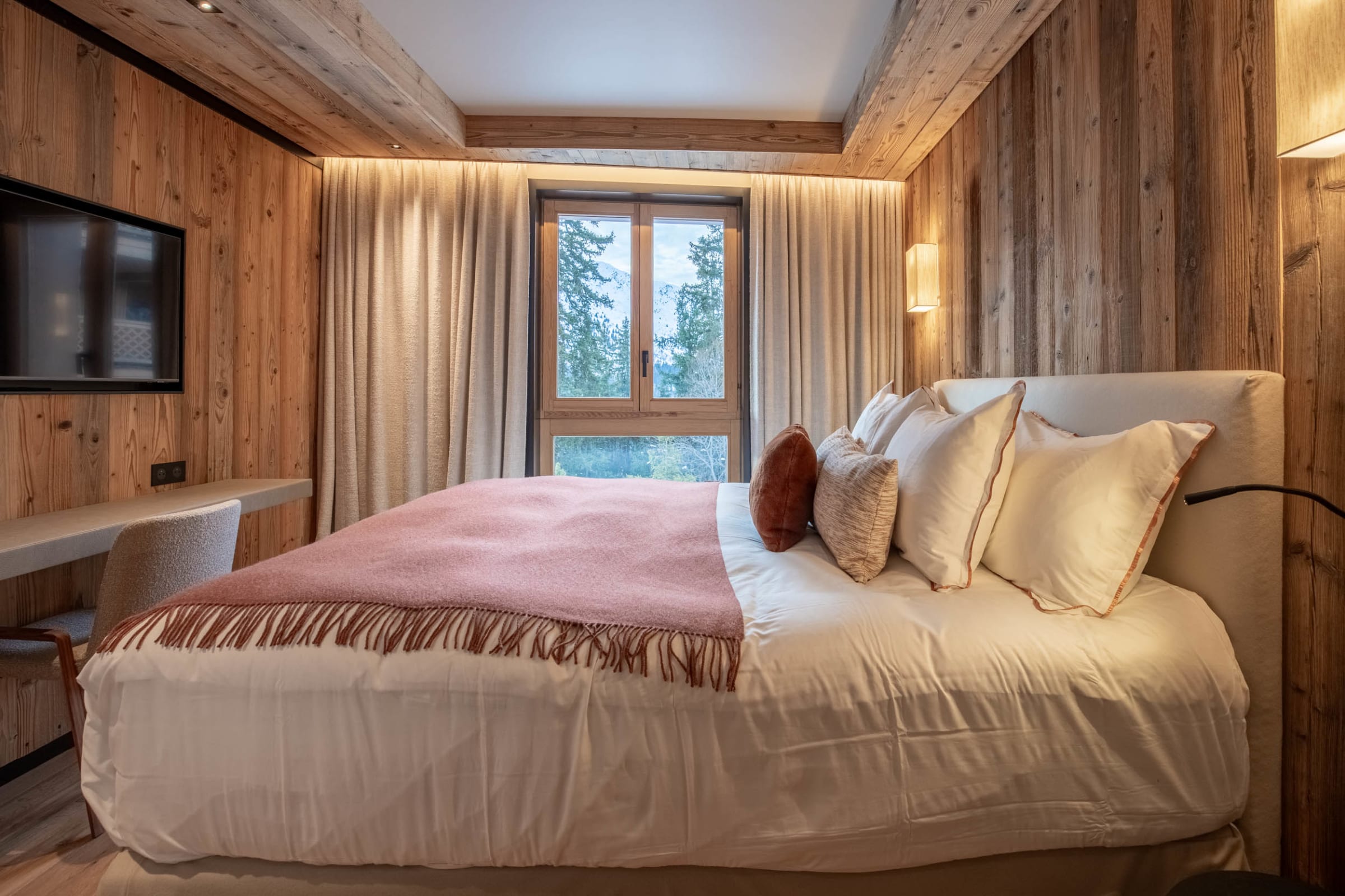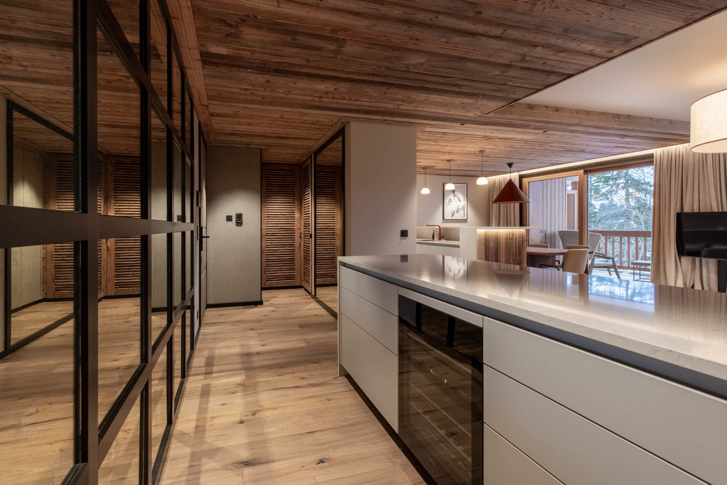 The residence features a unique wellness area: 25m indoor pool, multi-temperature pools, salt grotto, sauna & hammam, beauty clinic, ice fountain, 10 cabins, private relaxation cocoons, an Alpine herbal tea room and a cryo suite.