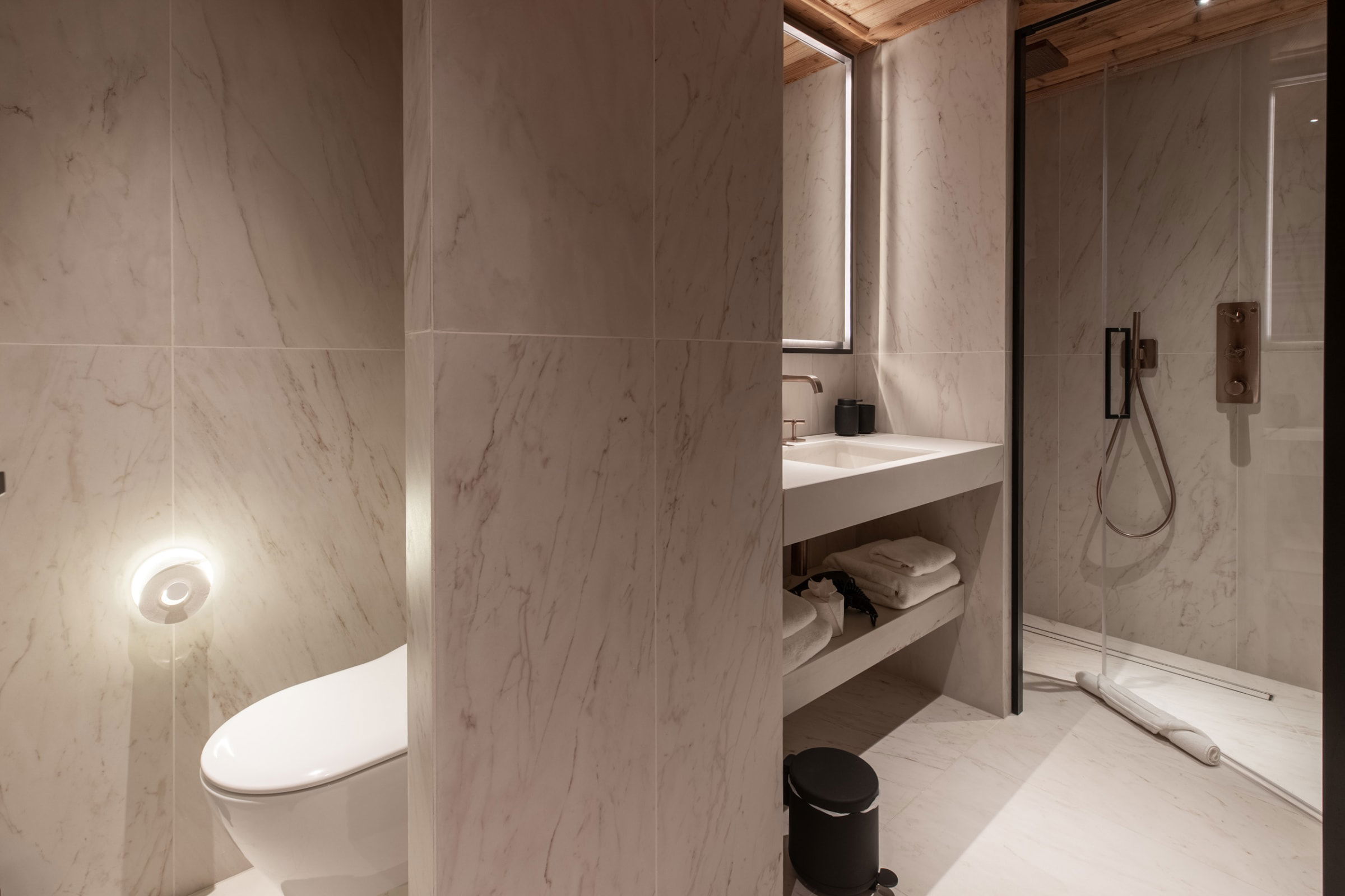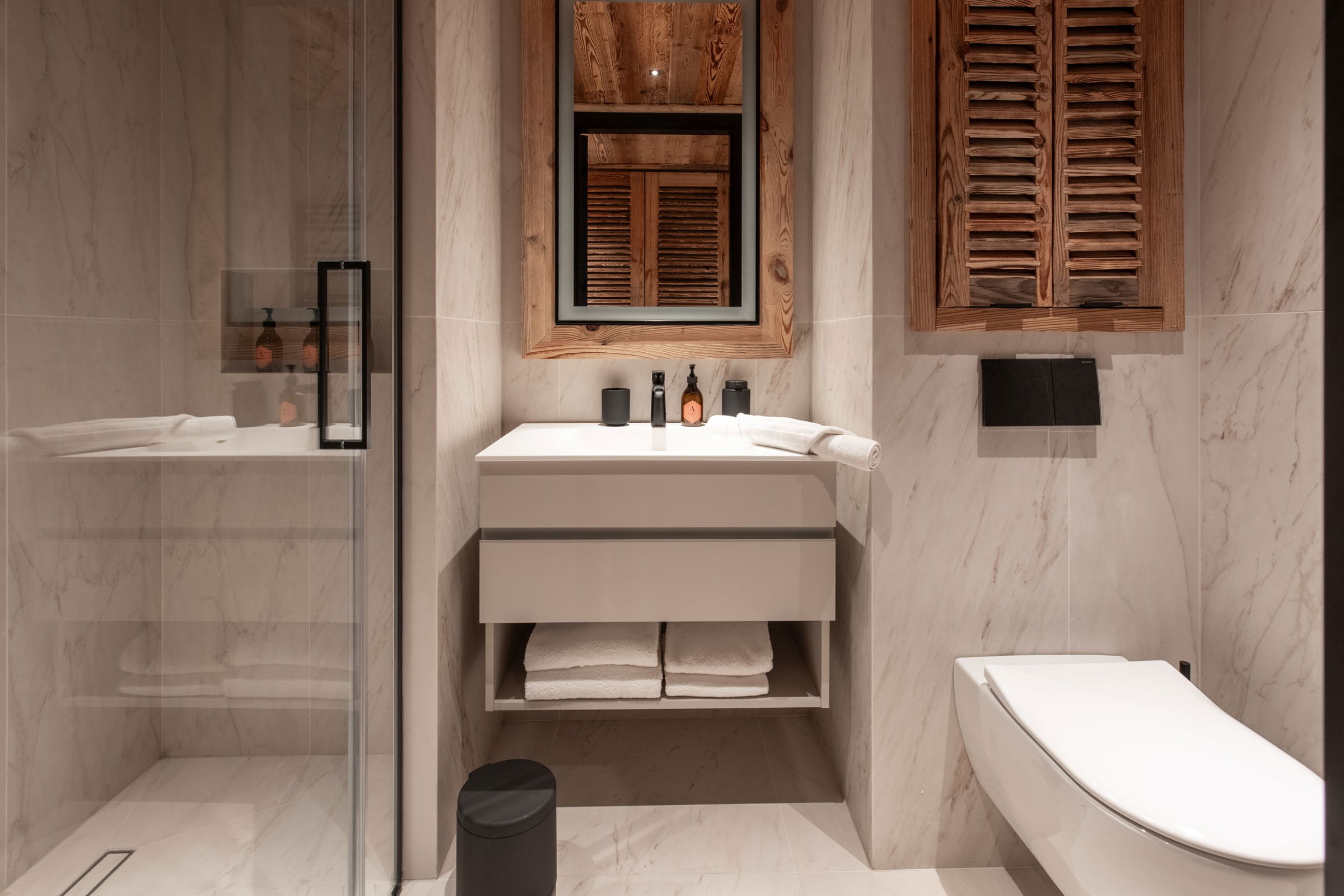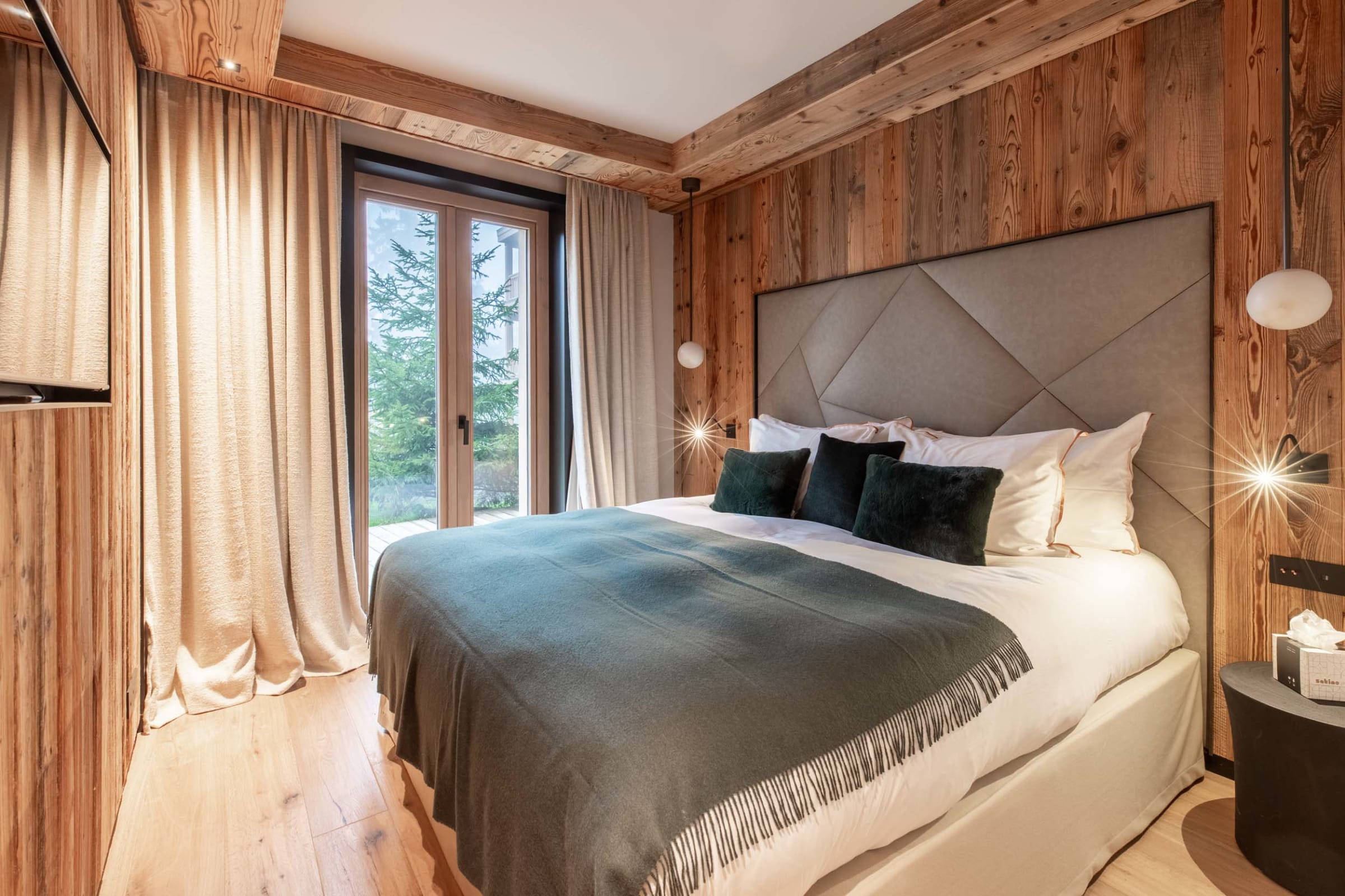 The residence features a unique wellness area: 25m indoor pool, multi-temperature pools, salt grotto, sauna & hammam, beauty clinic, ice fountain, 10 cabins, private relaxation cocoons, an Alpine herbal tea room and a cryo suite.
