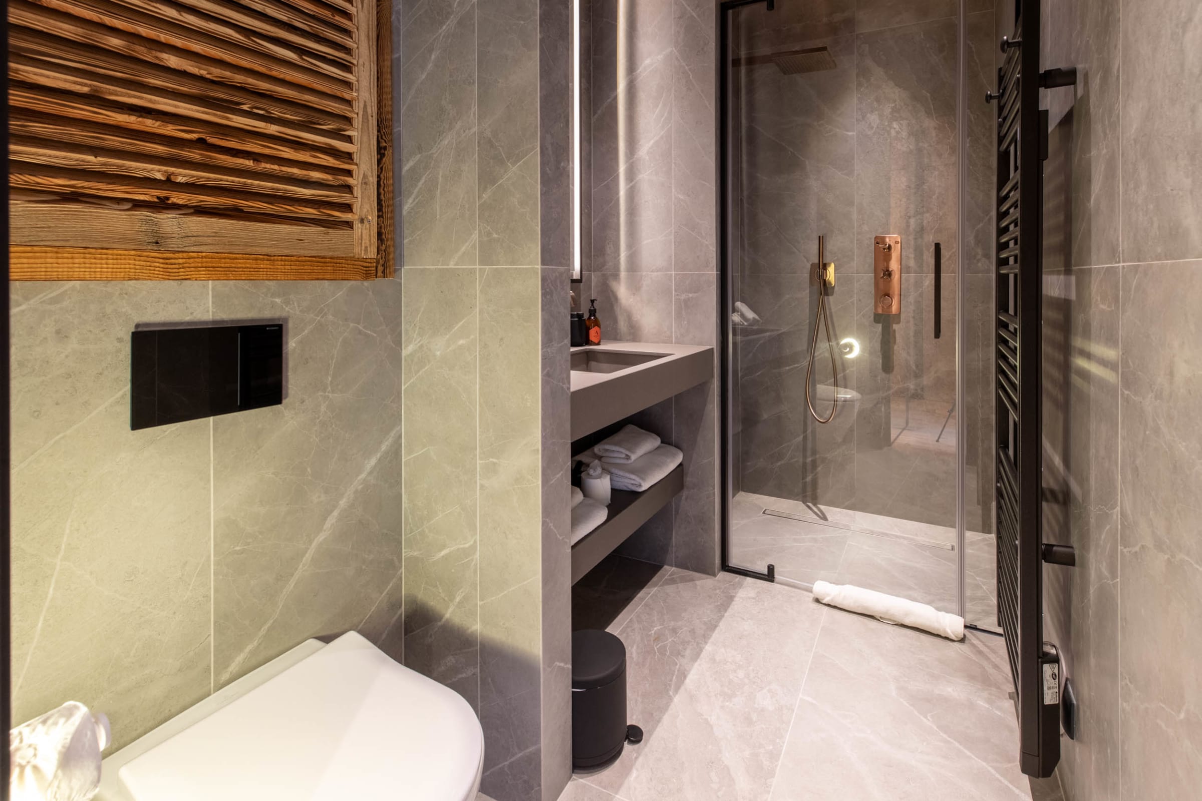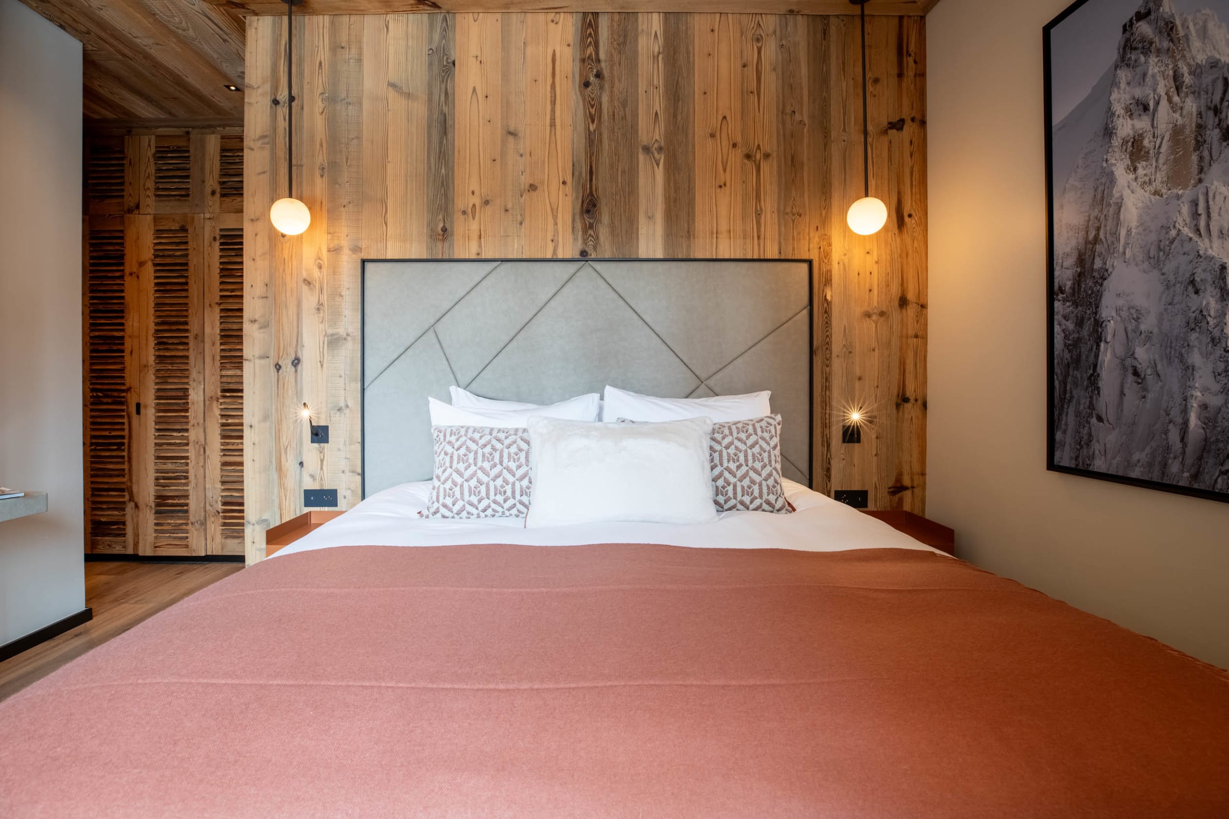 The residence features a unique wellness area: 25m indoor pool, multi-temperature pools, salt grotto, sauna & hammam, beauty clinic, ice fountain, 10 cabins, private relaxation cocoons, an Alpine herbal tea room and a cryo suite.