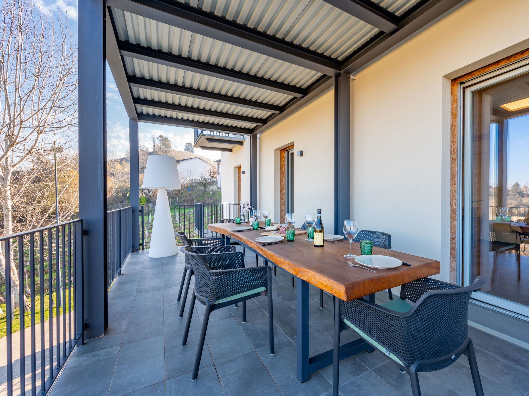 "Laiolo Wine Resort", 4-room apartment 120 m2, on the ground floor. Luxurious and tasteful furnishings: living/sleeping room with panoramic window with 1 double sofabed. Exit to the balcony. 2 rooms, each room with 1 double bed and shower/WC. 1 room with 1 double bed (180 cm, length 200 cm). Open kitchen (oven, dishwasher, 4 induction hot plates, toaster, kettle, microwave, freezer, electric coffee machine). Exit to the balcony. Shower/WC. Heating, air-conditioning. Heating available only from 01.10. to 15.04. Natural stone floors. Large balcony 25 m2, small balcony 15 m2. Balcony furniture, deck chairs (6). Very beautiful panoramic view of the mountains and the countryside. Facilities: washing machine. Internet (WiFi, free). Please note: private entrance. IT005120B5OLJW452S