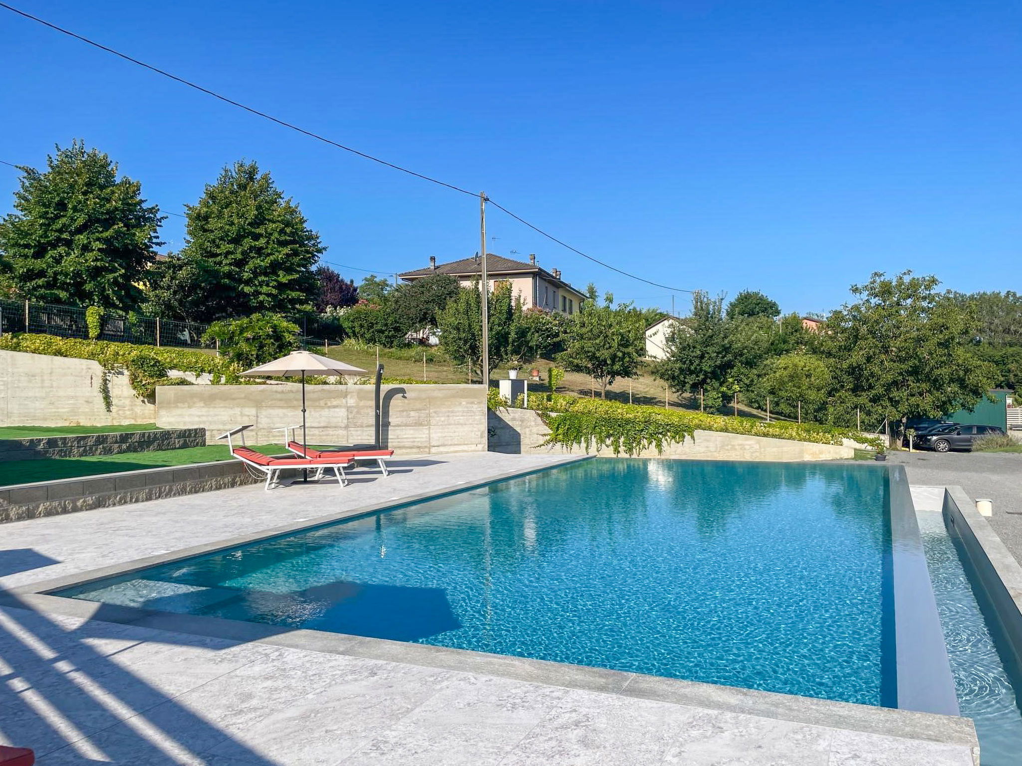 Very beautiful on a vinyard "Tenuta Bricco San Giorgio", built in 2024, surrounded by meadows, fields and vineyards. Outside the resort, 3 km from the centre of Vinchio, in a sunny position on top of a hill. For shared use: large, well-kept terraced garden with lawn and trees. Private: swimming pool (10 x 6 m, depth 140 cm, seasonal availability: 01.Jul. - 15.Oct.). Pool maintenance by the owner/gardener. Breakfast possible on request (extra). Parking at the house on the premises. Grocery 3 km, supermarket 6 km, bus stop "Vinchio" 3 km, railway station "Nitzza Monferrato" 6 km. Nearby attractions: Asti 25 km, Alba 35 km, Turin 80 km. Please note: car recommended. Not suitable for children under 12 years. The owner does not accept any youth groups. Local sale of farm products. Owner lives in separate semi-detached house.