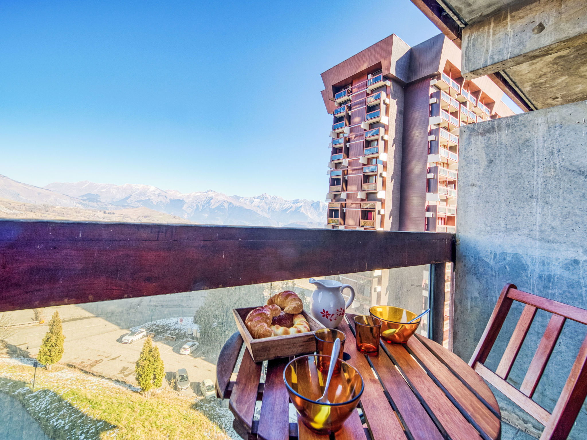 Apartment house "Soyouz Vanguard", 19 storeys. 150 m from the centre, 150 m from the skiing area. For shared use: swimming pool heated (seasonal availability: 13.Dec. - 10.Apr. and 27.Jun. - 28.Aug. pool opening hours: 10:00-19:30). In the complex: internet access, lift, storage room for skis. Public parking. Shop 200 m, grocery 50 m, restaurant, bar 200 m, bus stop "Centre-Bagagerie" 450 m, railway station "St Jean de Maurienne" 15 km, outdoor swimming pool 150 m. Skisport facilities, slopes, ski school 200 m, ski-kindergarten 50 m, sled run 200 m. Please note: Additional accommodations can be booked. The swimming pool facilities are 150 m from the residence at the municipal pool. Entrance for under 3’s is not allowed. Children between 3 and 5 years old are allowed subject to weather conditions (in winter). Entrance tickets to the swimming pool are included in your rental price and will be given to you when you check in.