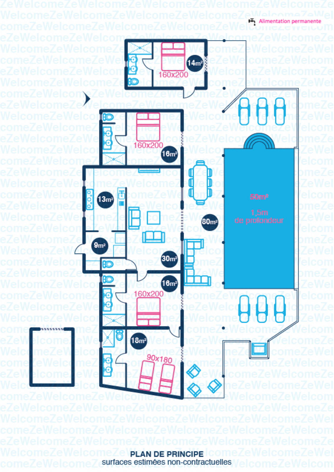 Total bedding : 3 beds 160, 2 beds 90, 1 baby bed (on request).