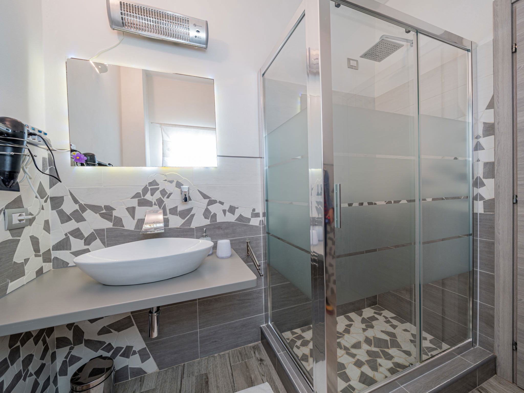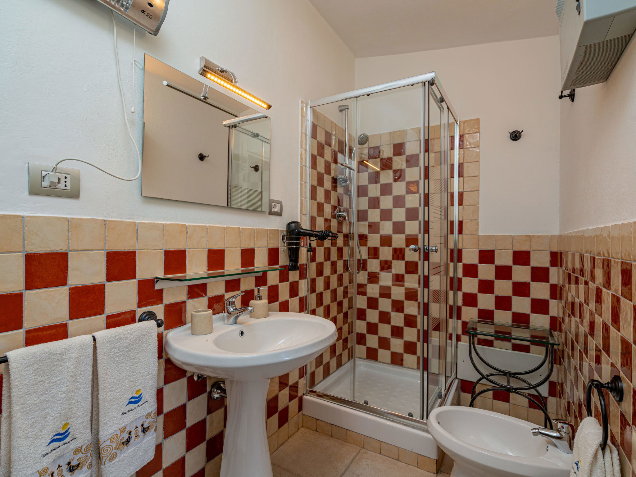 7-room villa 270 m2. Stylish and cosy furnishings: living/dining room with 1 sofabed and satellite TV (flat screen). Exit to the garden, to the veranda. 2 double bedrooms, each room with shower/bidet/WC. Kitchenette (oven, dishwasher, 4 induction hot plates, toaster, kettle, microwave). Air-conditioning, forced-air heating. Upper floor: (exterior staircase) living/dining room with 2 sofabeds (180 cm, length 80 cm), satellite TV (flat screen). Exit to the terrace. 2 double bedrooms. Kitchenette (oven, dishwasher, 4 induction hot plates, toaster, kettle). 2 showers/bidet/WC. Air-conditioning, forced-air heating. Terrace roofed. Terrace furniture, sitting area. Facilities: iron, mosquito net, hair dryer. Internet (WiFi, free). 1 pet/ dog allowed. IT090069B4000E8533