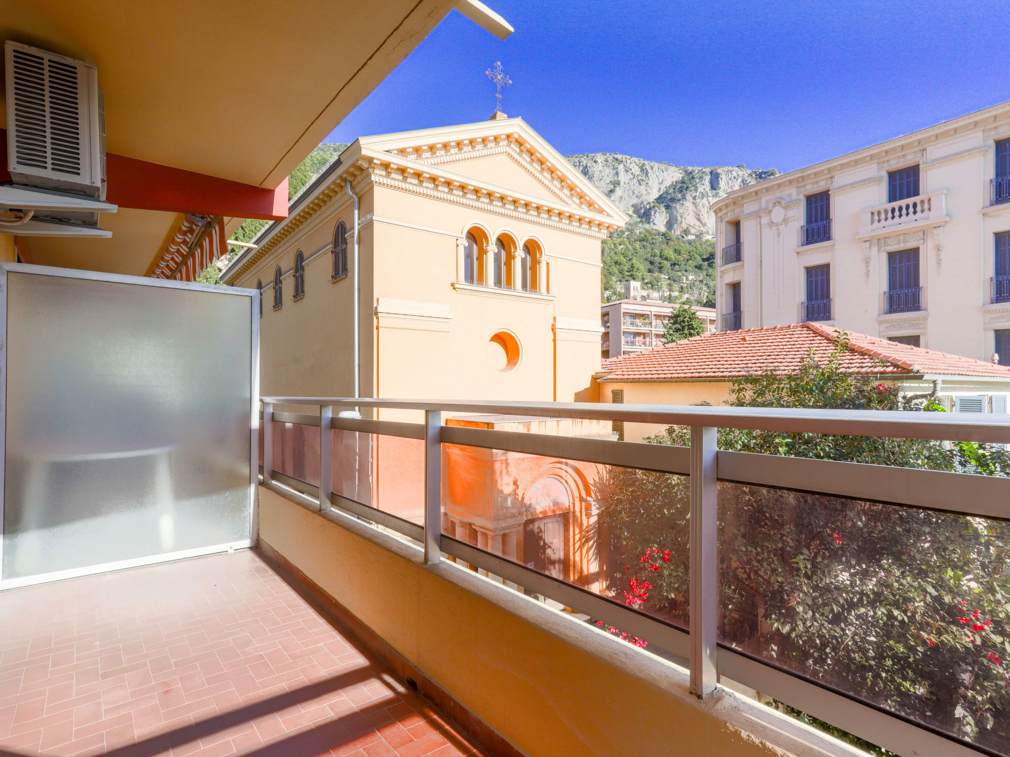 Residence "Le Diplomate", 6 storeys. In the district of Garavan, in a central, sunny position in the residential district, 50 m from the sea, 600 m from the beach, south facing position. In the house: lift, central heating system. Single garage. Shop 1 km, grocery, supermarket 800 m, restaurant 100 m, bakery 500 m, café 800 m, 20 minute walk to the centre, bus stop "Garavan 1 8 18" 100 m, railway station "Menton Garavan" 300 m, shingle beach "Hawai" 350 m. Sports harbour 50 m, golf course (18 hole) 23 km, tennis 3 km. Nearby attractions: Jardin botanique exotique du Val Rahmeh 800 m, Musée Jean Cocteau 2 km, Monaco 14 km, St Agnès 14 km, Ventimiglia (Italie) 10 km, Nice 32 km. Hiking paths: Parc National du Mercantour 30 km. Please note: car recommended.