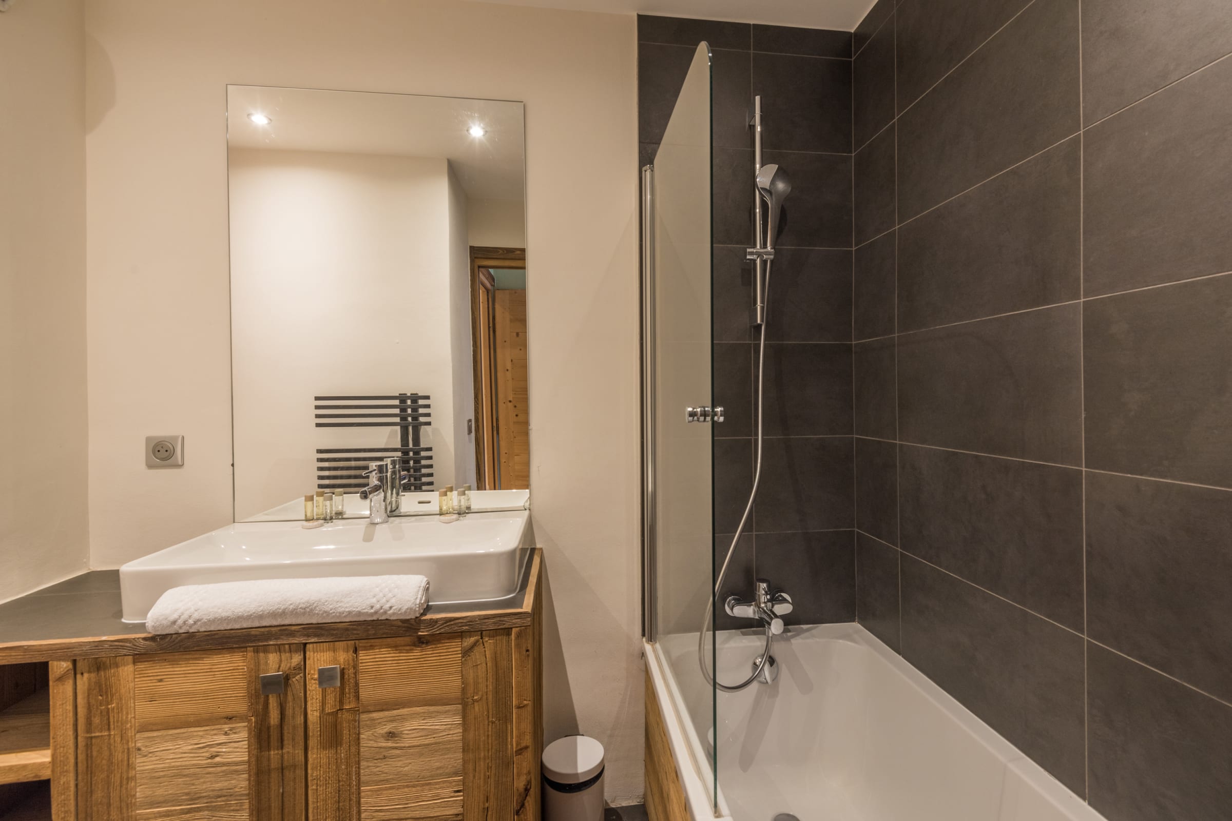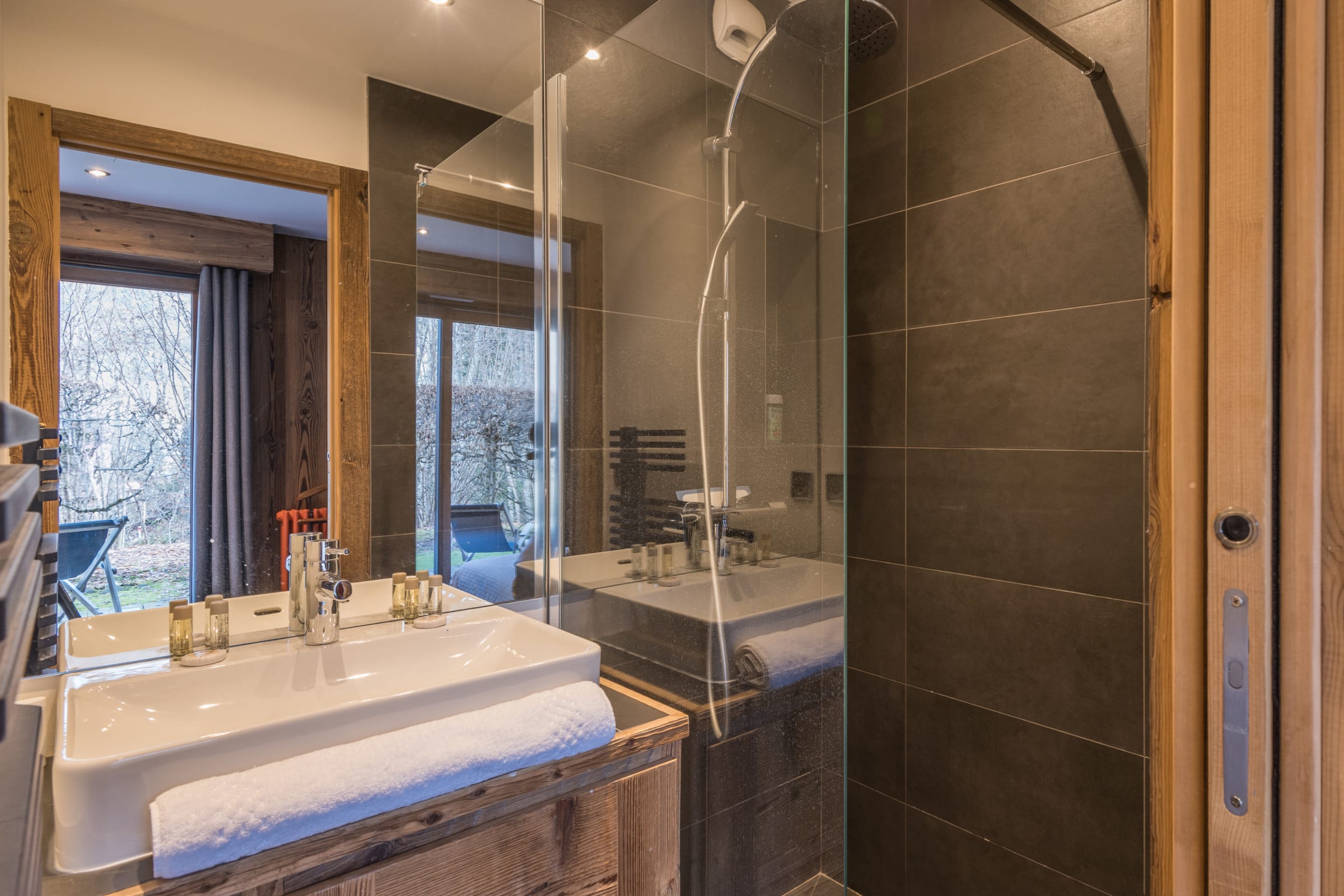 - a ground-floor bedroom with double bed (140 cm) and en-suite bathroom with shower,