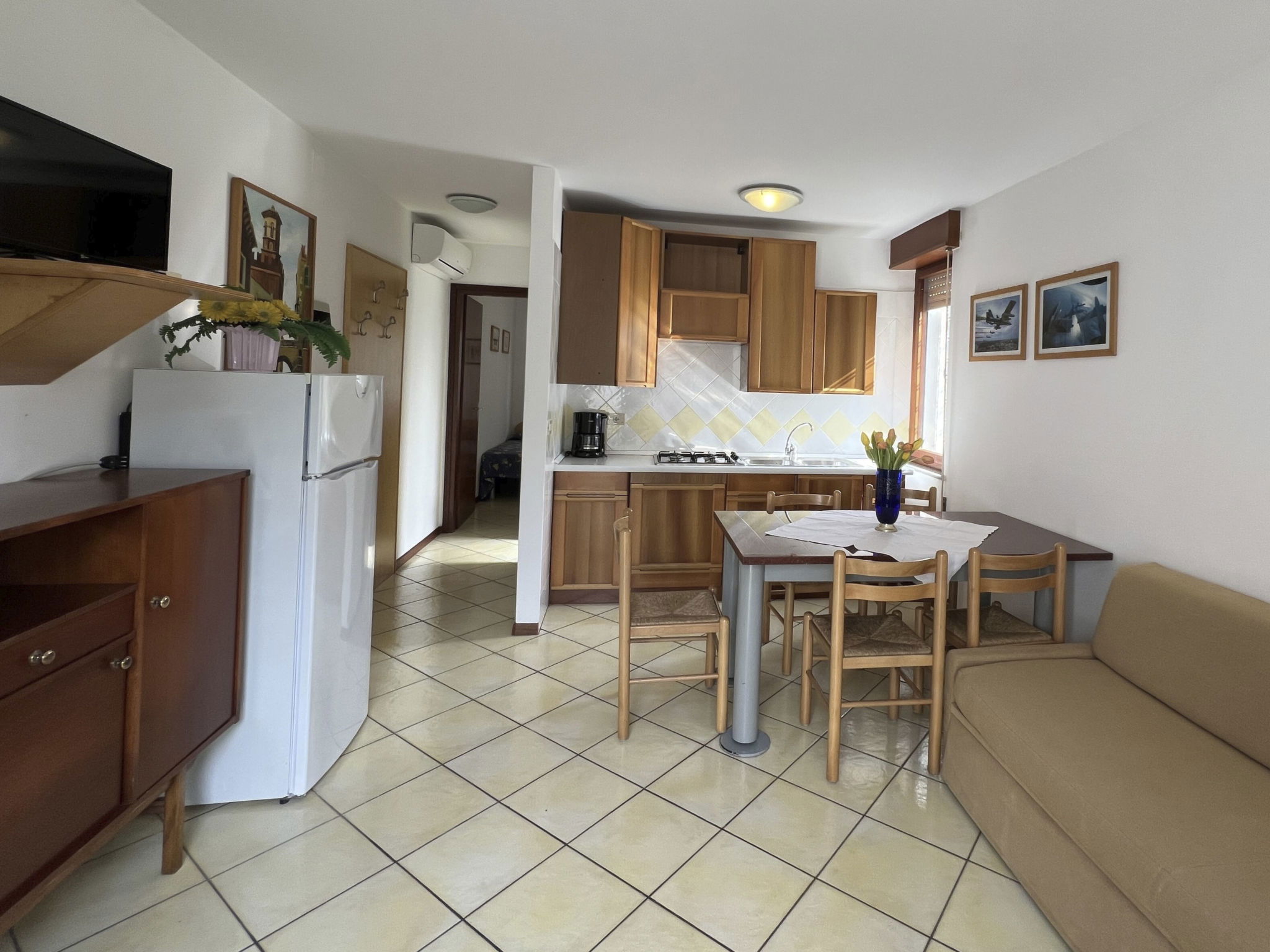 2-room apartment 50 m2, on the ground floor. Practical furnishings: living/sleeping room with 1 double sofabed, dining table, kitchen corner and satellite TV. Exit to the garden. 1 room with 1 bed and 1 double bed. Open kitchen (Gas stove, 3 gas rings, freezer, electric coffee machine). Shower/WC. Air-conditioning. No heating option. Patio. Terrace furniture. Facilities: children's high chair, baby cot for up to 2 year olds (extra), hair dryer. Internet (WiFi, extra). Parking (1 car) at the house. Please note: 1 small pet/ dog allowed. Private entrance. Instead of an additional single bed in the bedroom, a foldaway bed in the living room/bedroom is also possible. No mandatory extra charges to be paid on-site except for local tax. IT030049B4AKXMLDJY