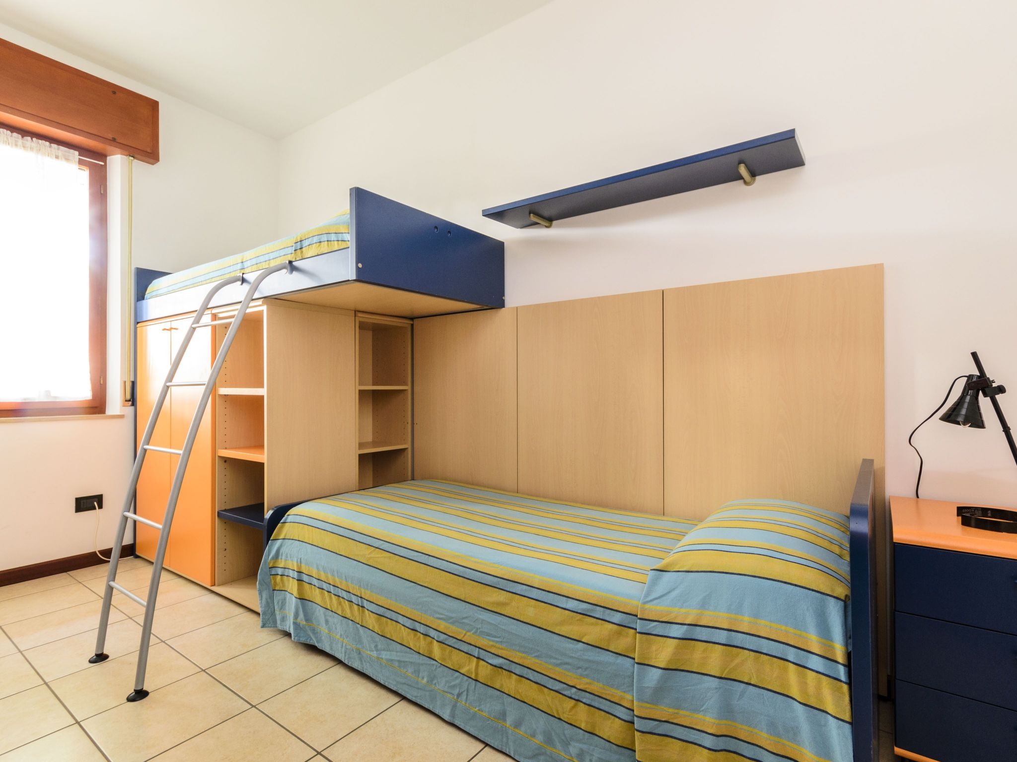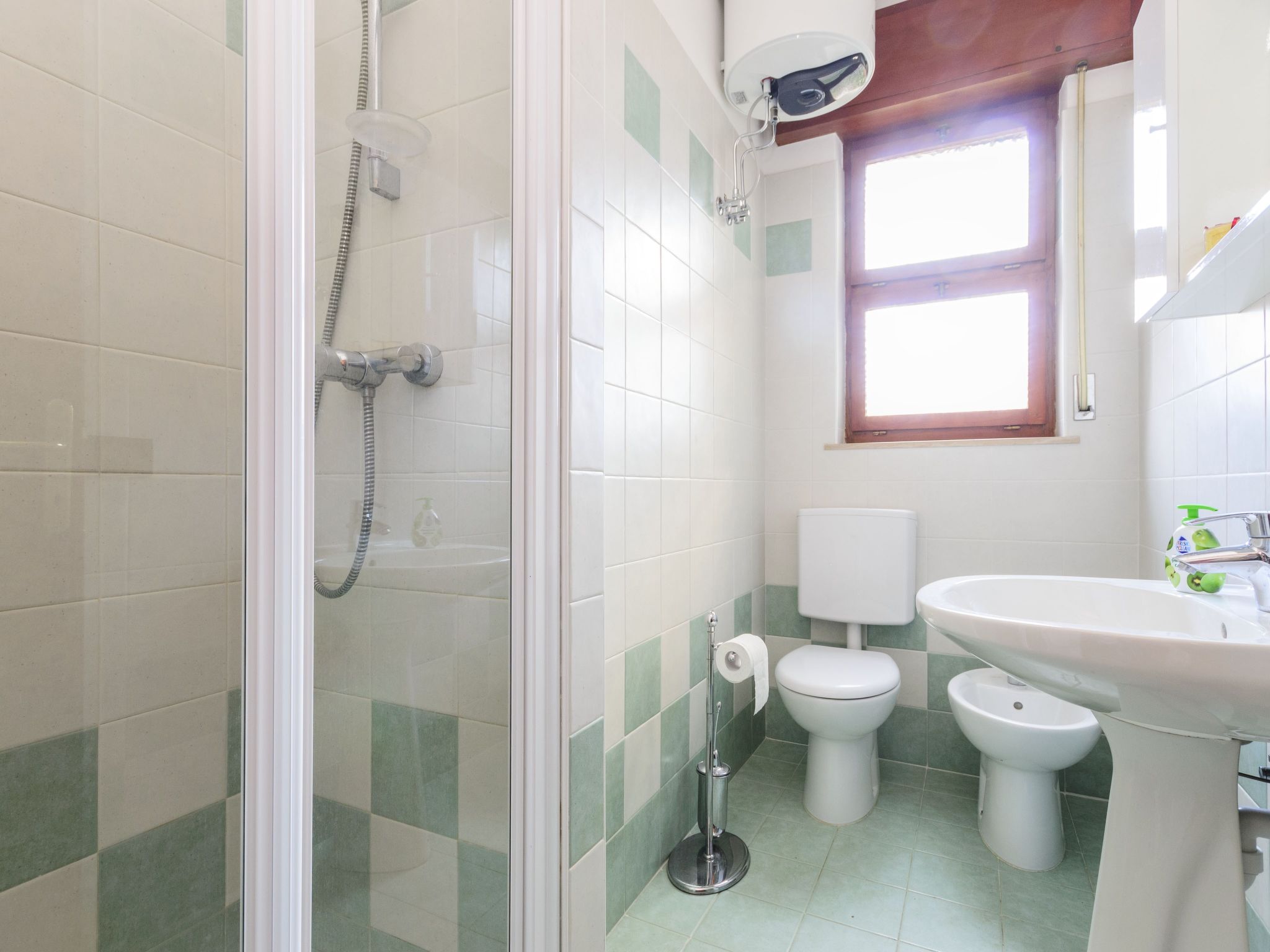 3-room apartment 60 m2. Spacious and bright, practical furnishings: living/sleeping room with 1 double sofabed, dining table and satellite TV. 1 room with 1 bed and 1 double bed. 1 room with 1 x 2 bunk beds. Small, open kitchen (3 gas rings, kettle, microwave, freezer, electric coffee machine). Shower/bidet/WC. Air-conditioning, forced-air heating. Balcony or terrace partly roofed. Terrace furniture. Facilities: children's high chair, baby cot for up to 2 year olds, hair dryer. Internet (WiFi, extra). Parking (1 car) at the house. Maximum 1 small pet/ dog allowed. No mandatory extra charges to be paid on-site except for local tax. IT030049B4VMMGPAJ4