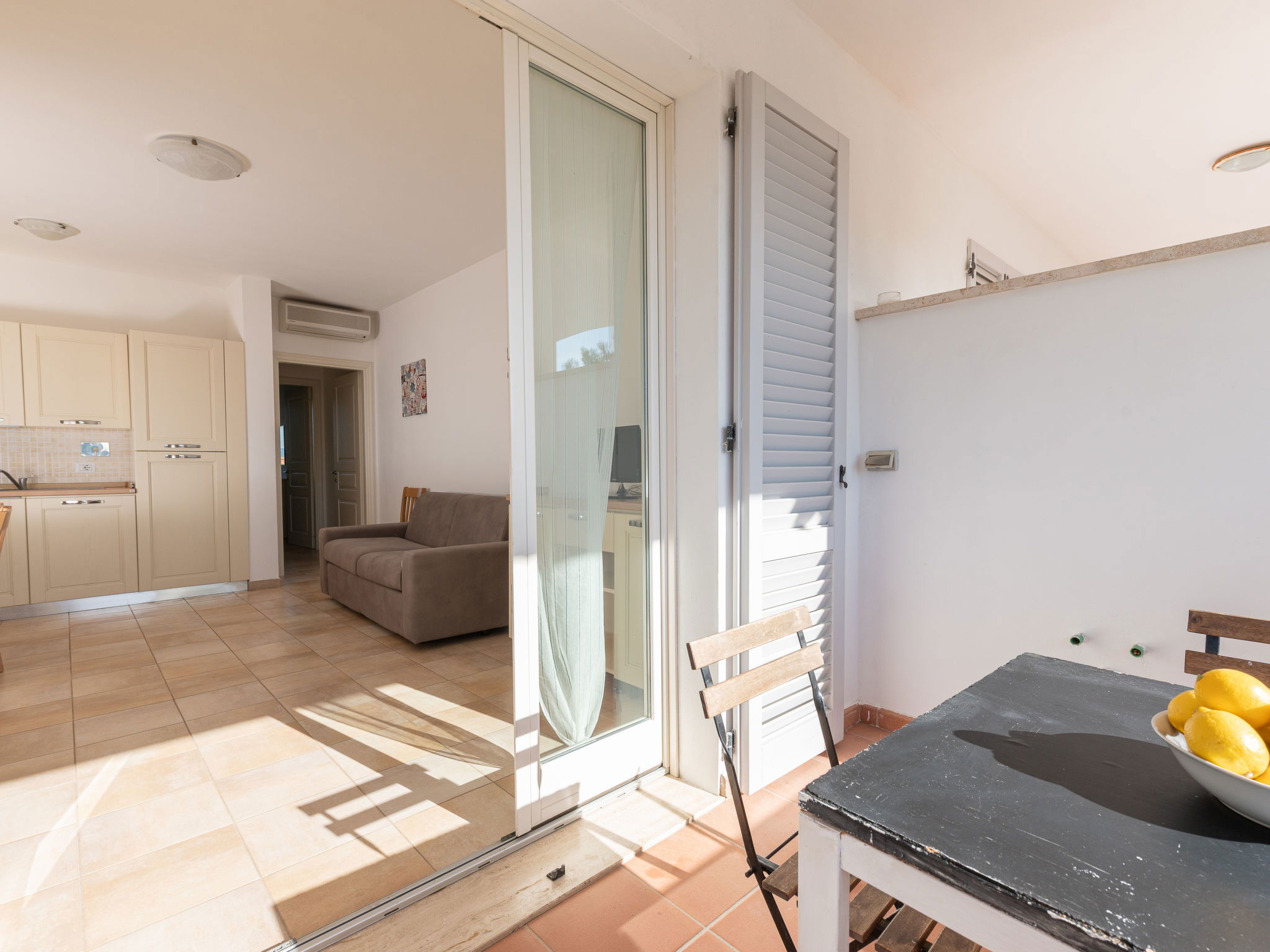2-room apartment 40 m2 on 1st floor. Object suitable for 2 adults + 2 children. Cosy furnishings: upper floor: living/dining room with 1 sofabed, dining table and TV. Exit to the terrace. 1 double bedroom. Open kitchen (oven, 4 gas rings). Exit to the terrace. Shower/bidet/WC. Air-conditioning, forced-air heating. Terrace 6 m2, roofed. Terrace furniture. Facilities: baby cot for up to 2 year olds, hair dryer. Internet (WiFi, free). Parking. Please note: non-smokers only. Maximum 1 pet/ dog allowed. IT053024A1U9LOE9RJ